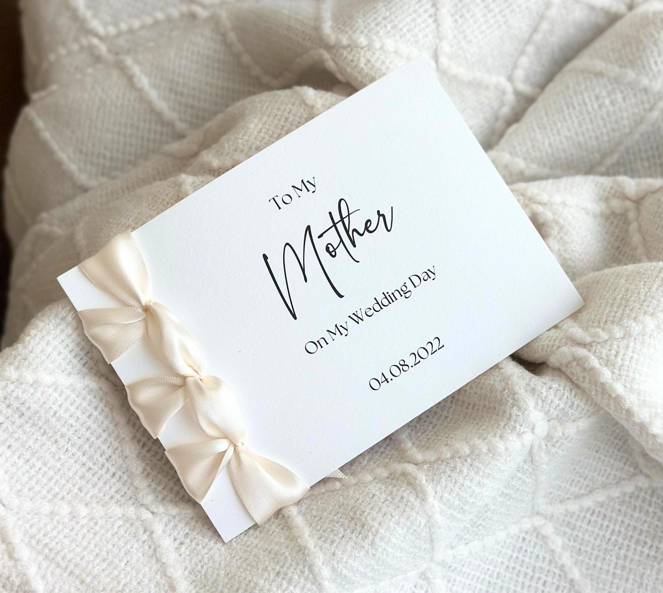 to my mother wedding day card, handmade wedding card, personalized wedding card, luxury wedding stationery, satin ribbon card, handmade stationery gift, wedding keepsake card, to my mom wedding day, custom handmade card, wedding gift for mother, elegant wedding card, heartfelt wedding card, mother of the bride card, mother of the groom card, luxury handmade card