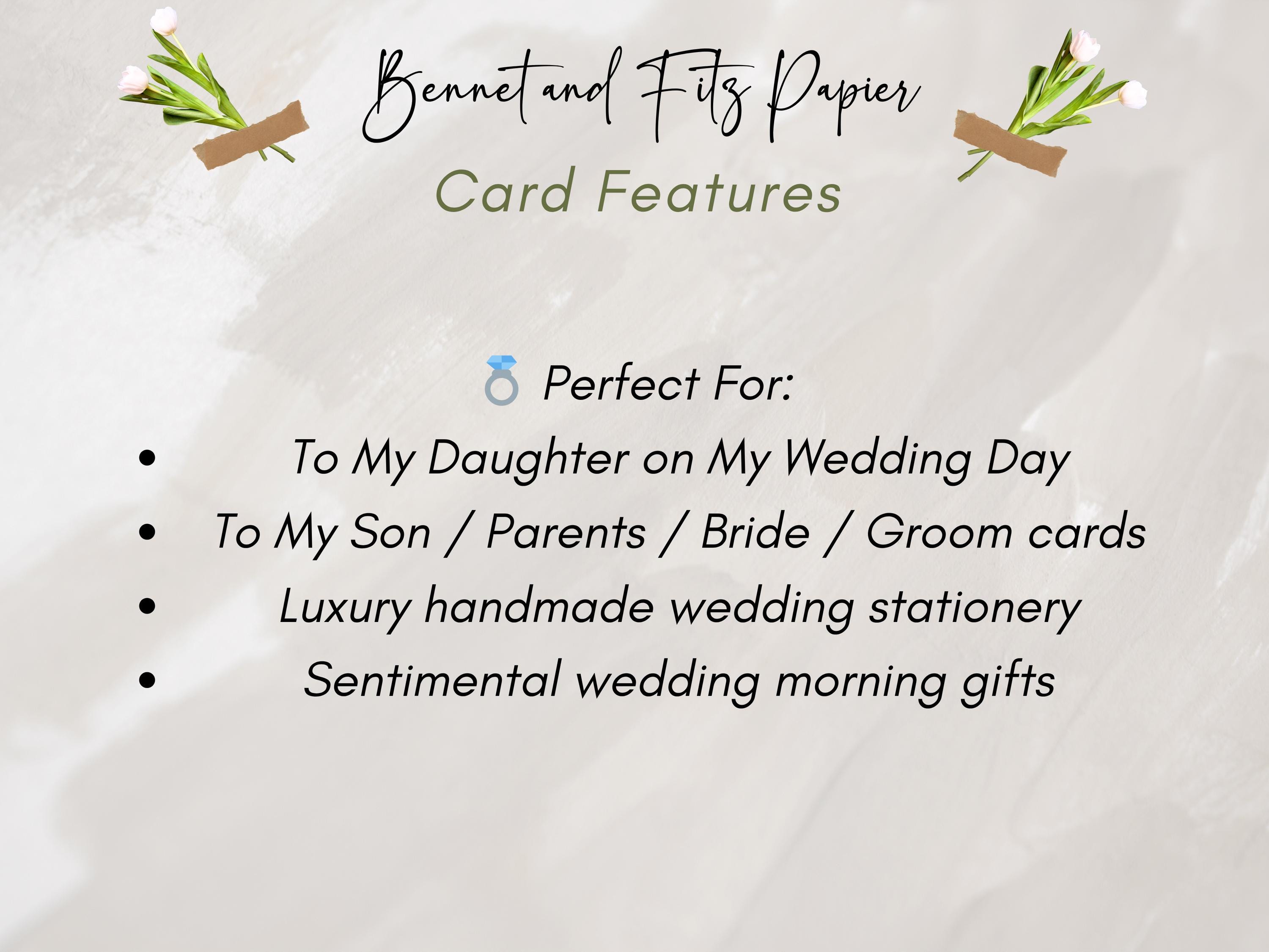 Whether you’re a bride, groom, or parent, this luxury handmade wedding card is the perfect way to share love, pride, and heartfelt emotion on the morning of the wedding.