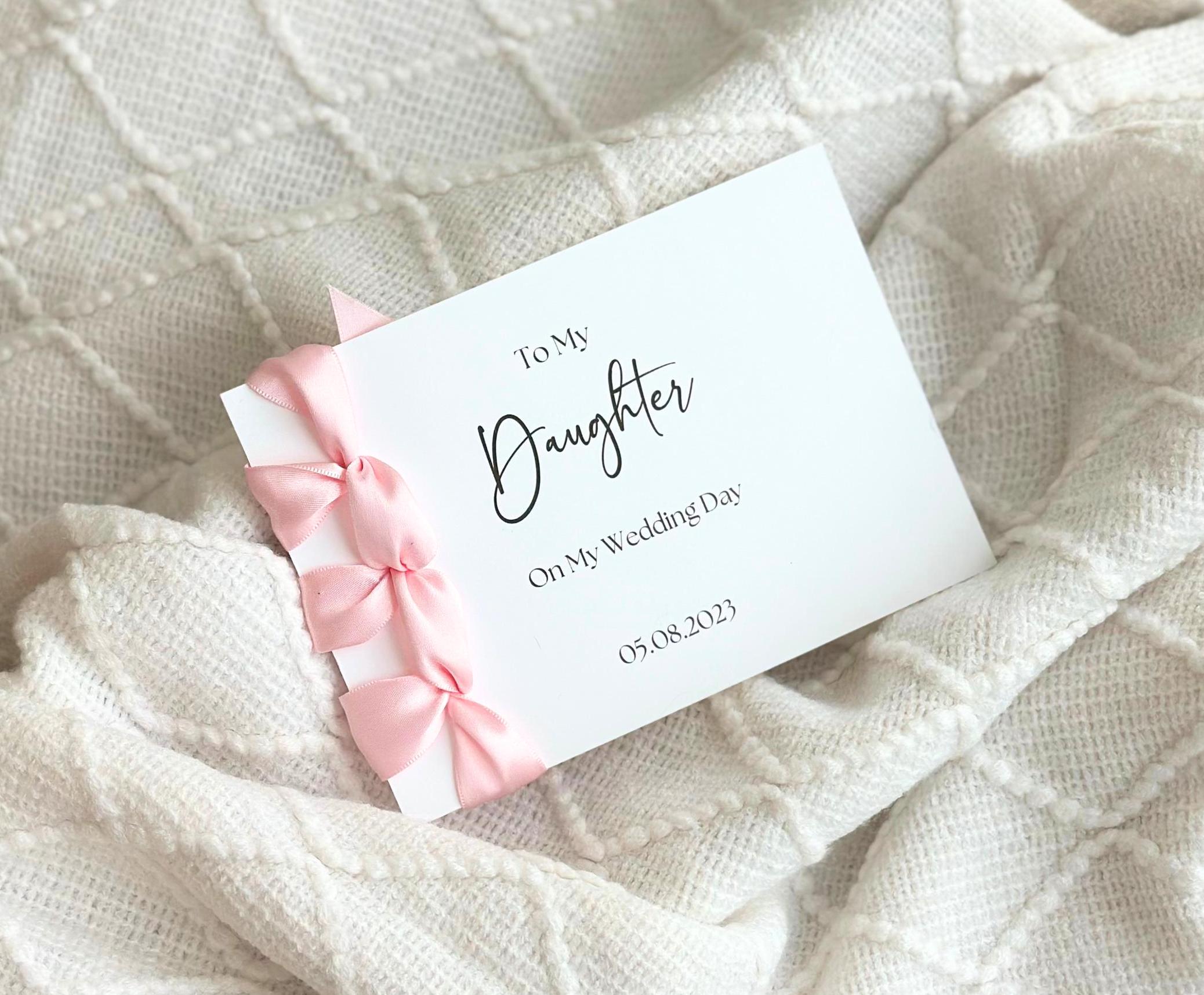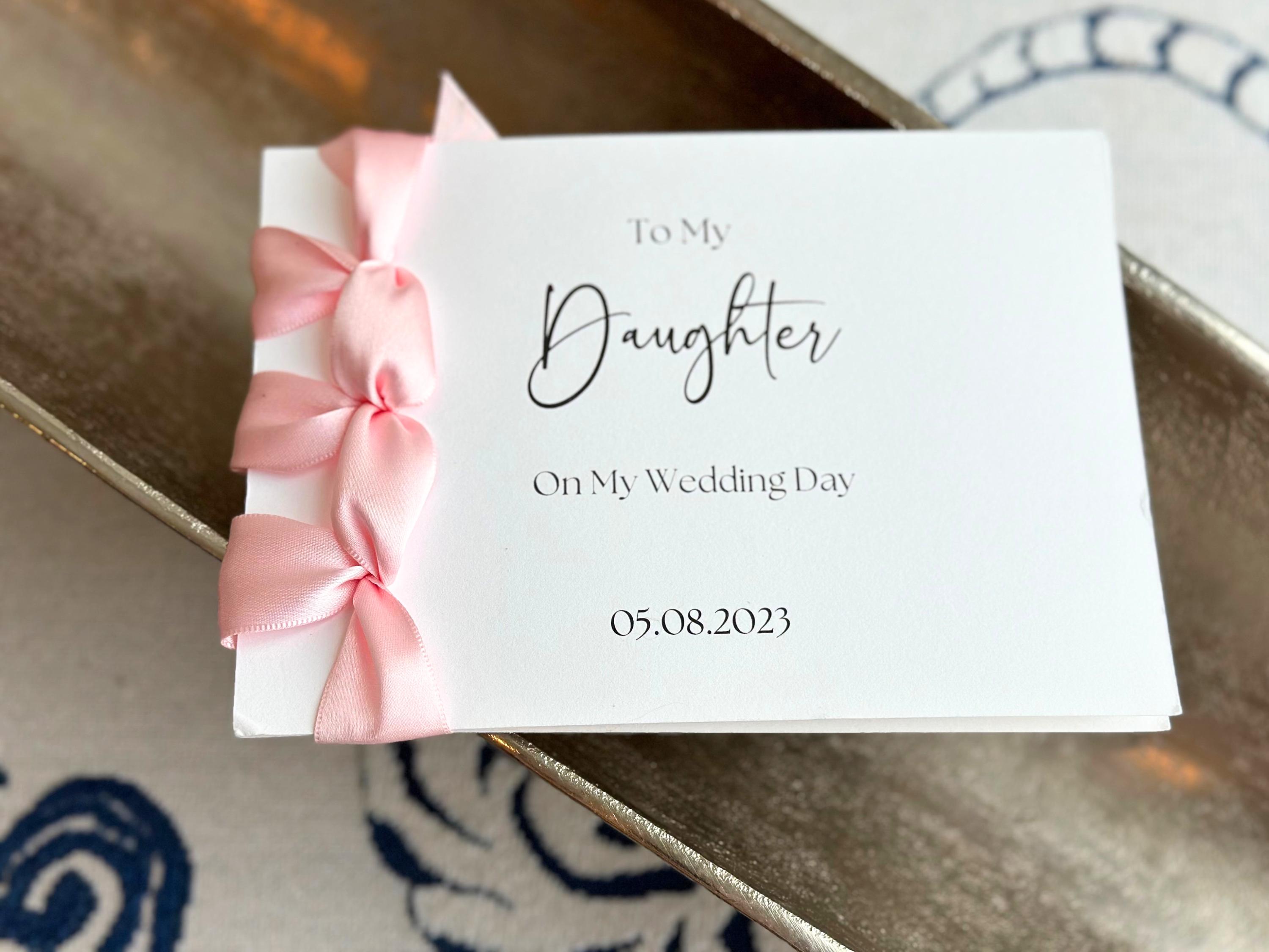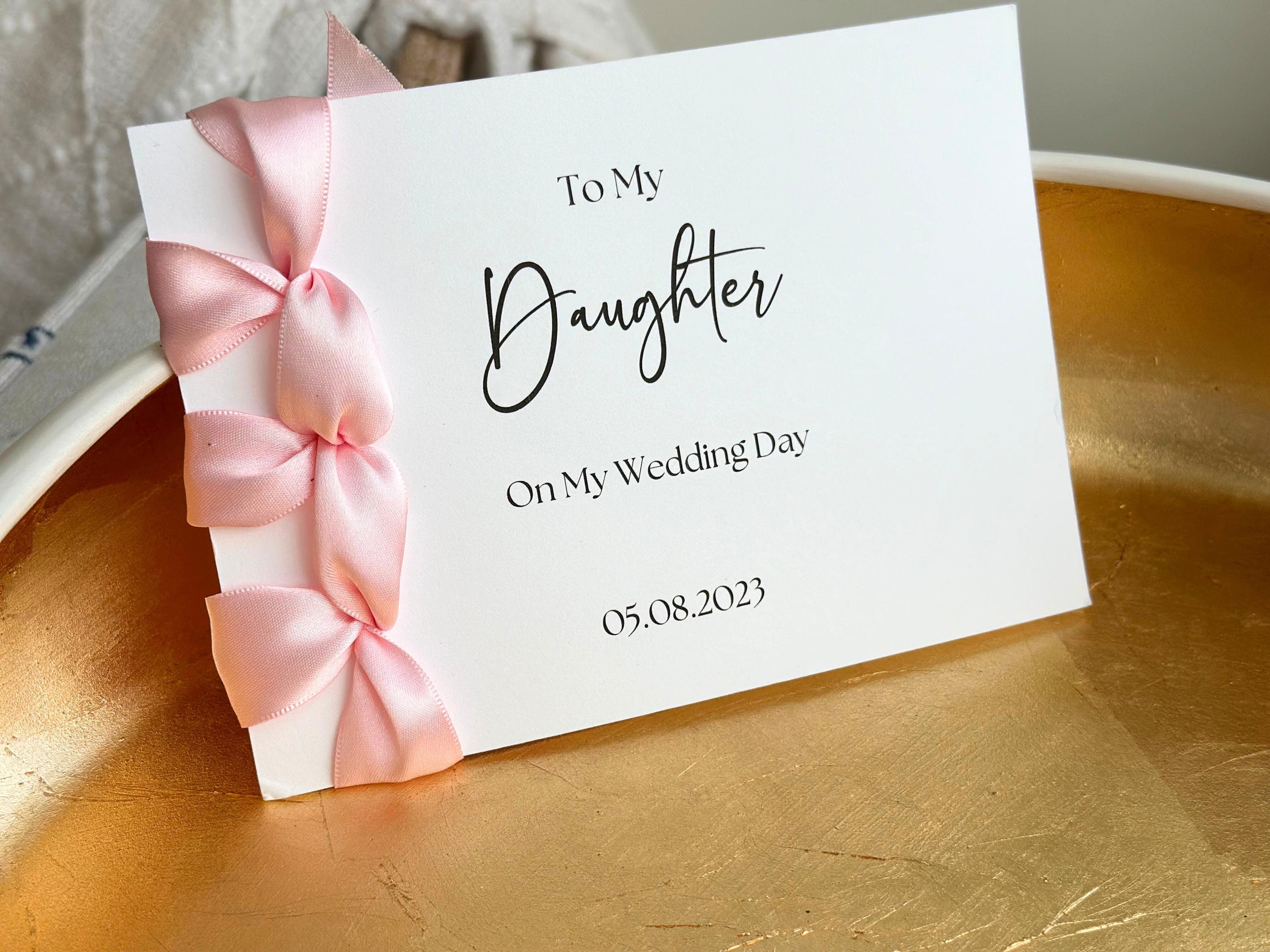 to my daughter wedding day card, personalized wedding card, handmade wedding card, to my bride wedding card, to my groom wedding card, to my parents wedding day, luxury wedding stationery, satin ribbon card, custom handmade card, wedding keepsake card, emotional wedding card, heartfelt wedding card, personalized wedding keepsake, to my son on my wedding day, elegant handmade card