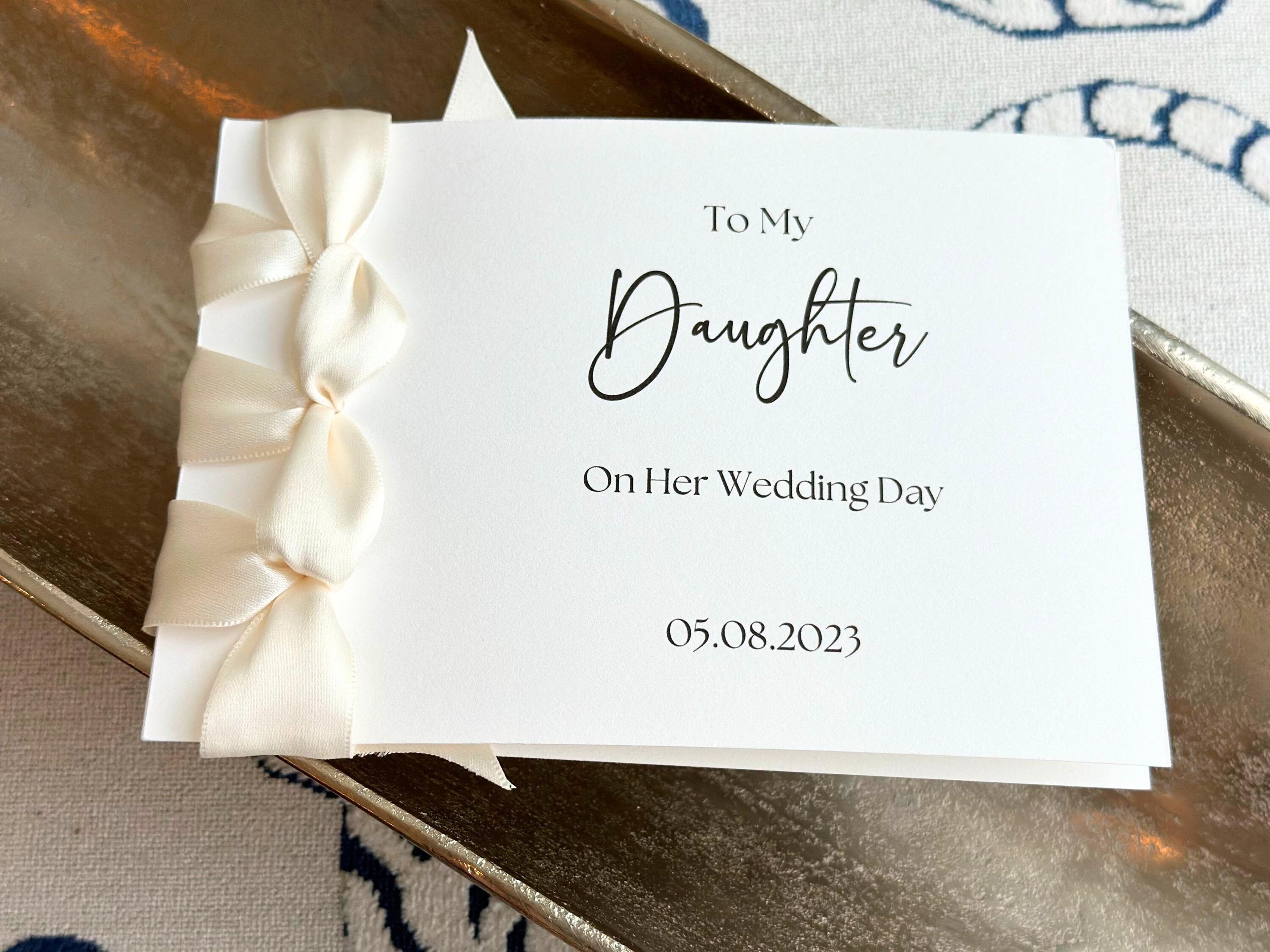 to my daughter wedding day card, personalized wedding card, handmade wedding card, luxury wedding card, satin ribbon card, to my daughter on her wedding day, handmade stationery gift, wedding keepsake card, emotional wedding card, wedding day gift from mom, to my daughter from dad, custom handmade card, elegant wedding card, personalized wedding gift, luxury handmade card
