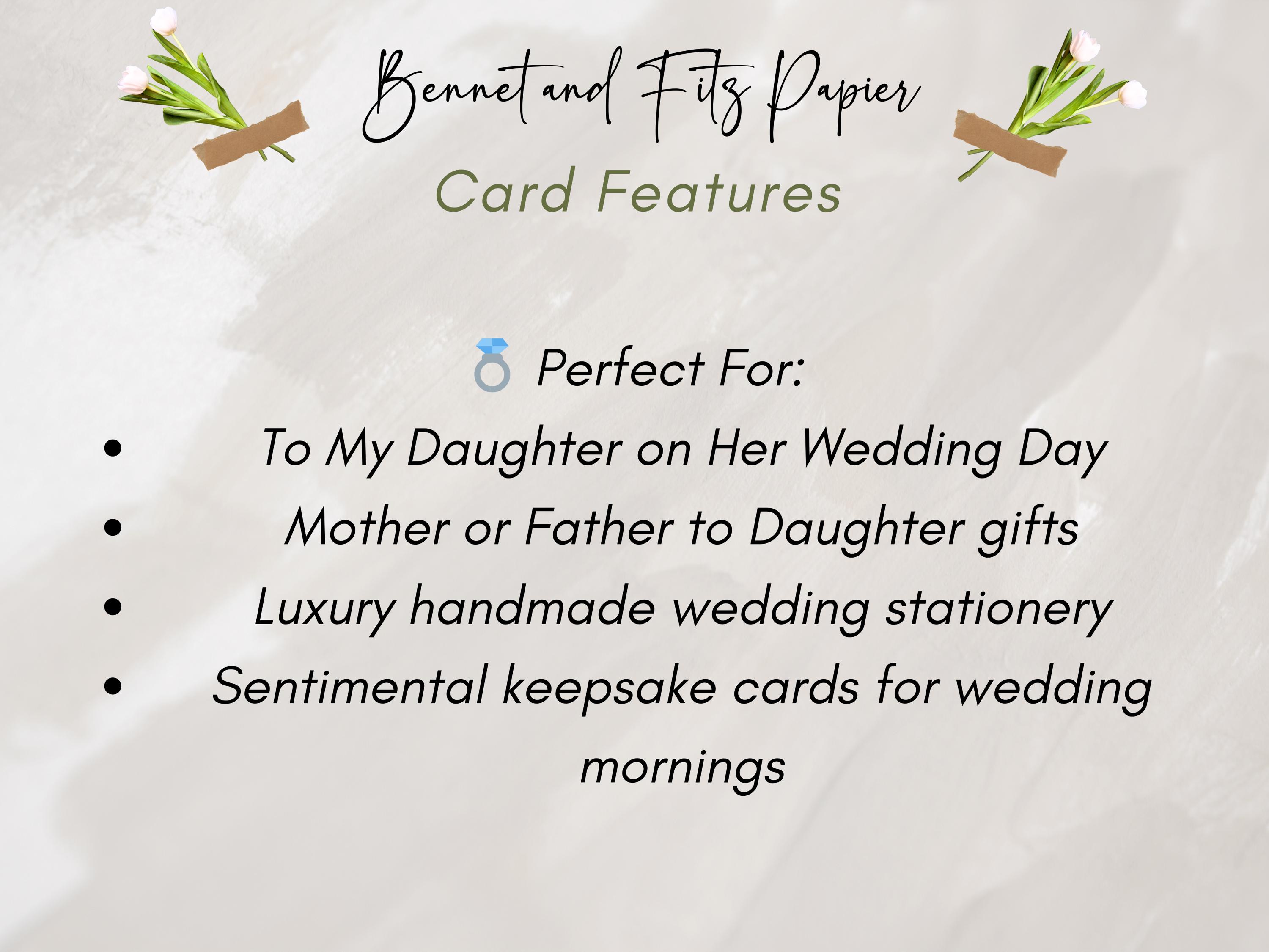 Whether you give it on the morning of her wedding or tuck it into a keepsake box, this luxury handmade card captures the love, pride, and happiness that words alone can’t express.