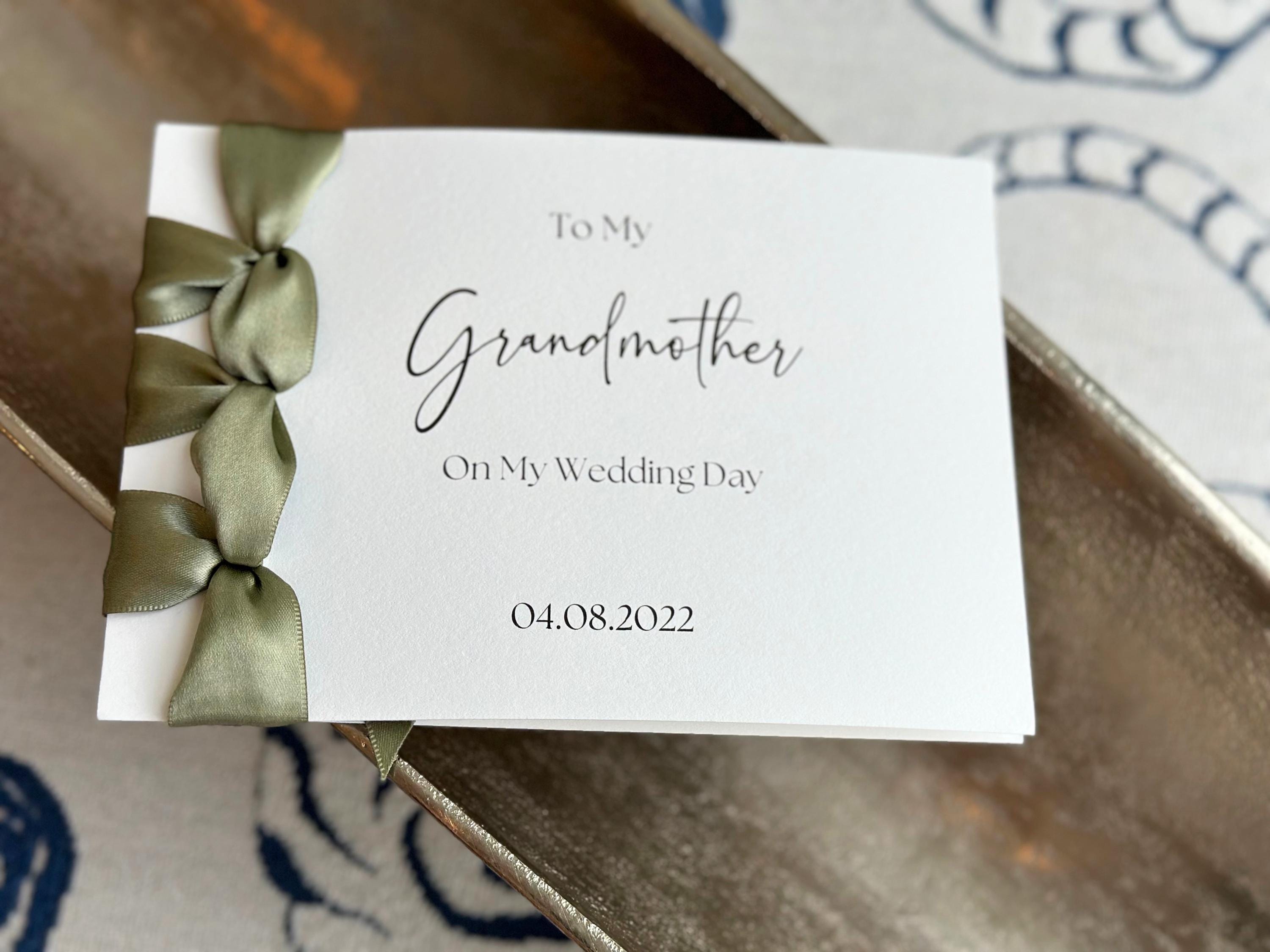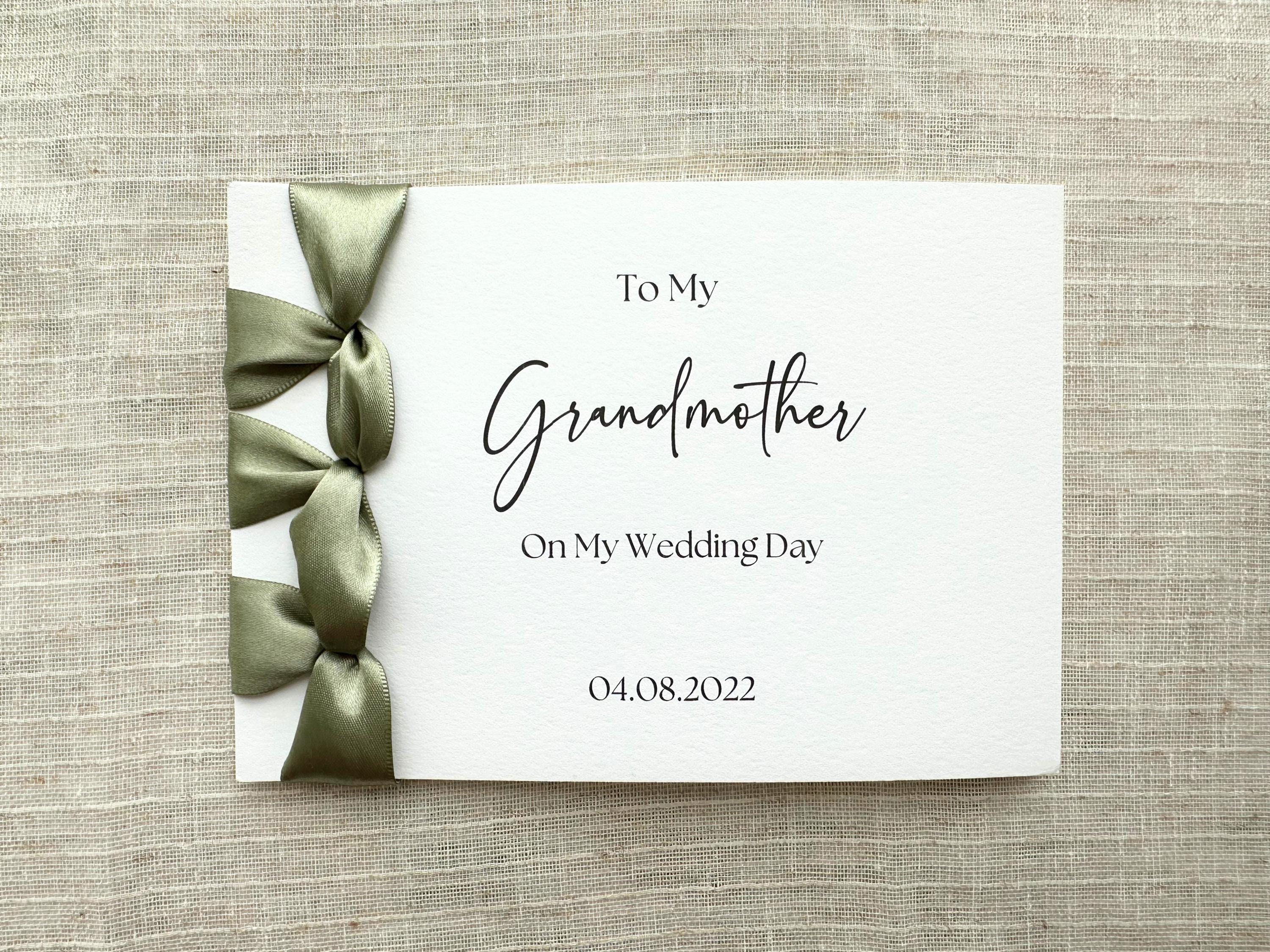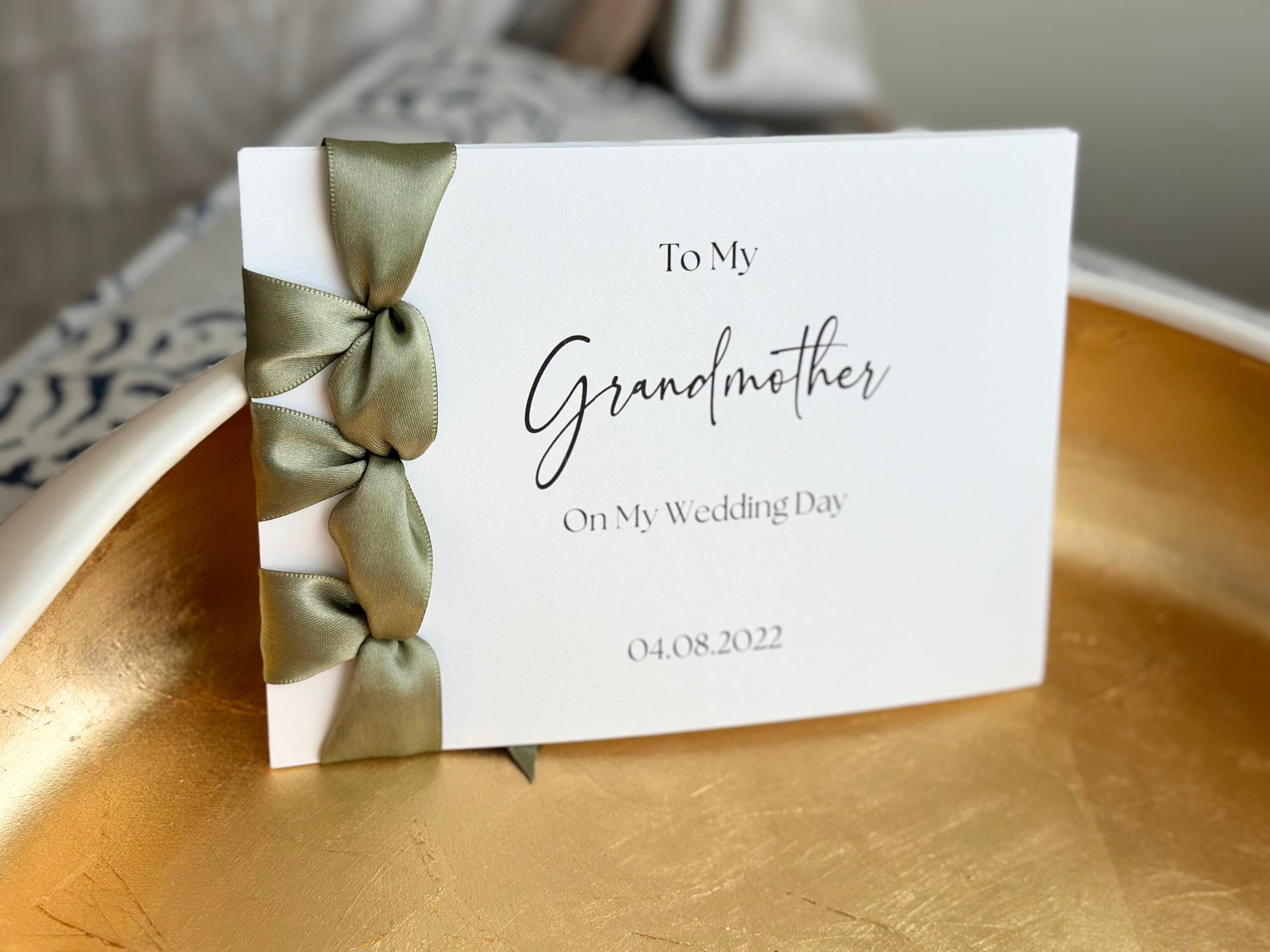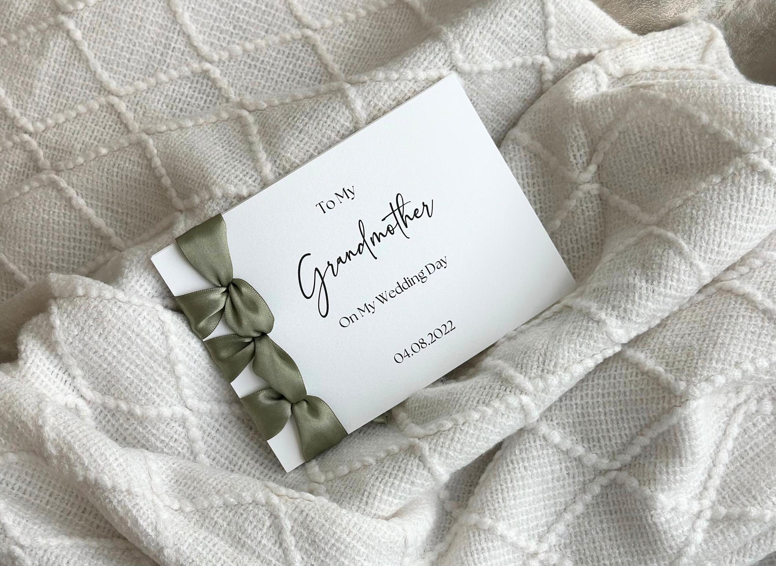 Personalized Wedding Card for Grandmother | Handmade Keepsake with Satin Ribbon