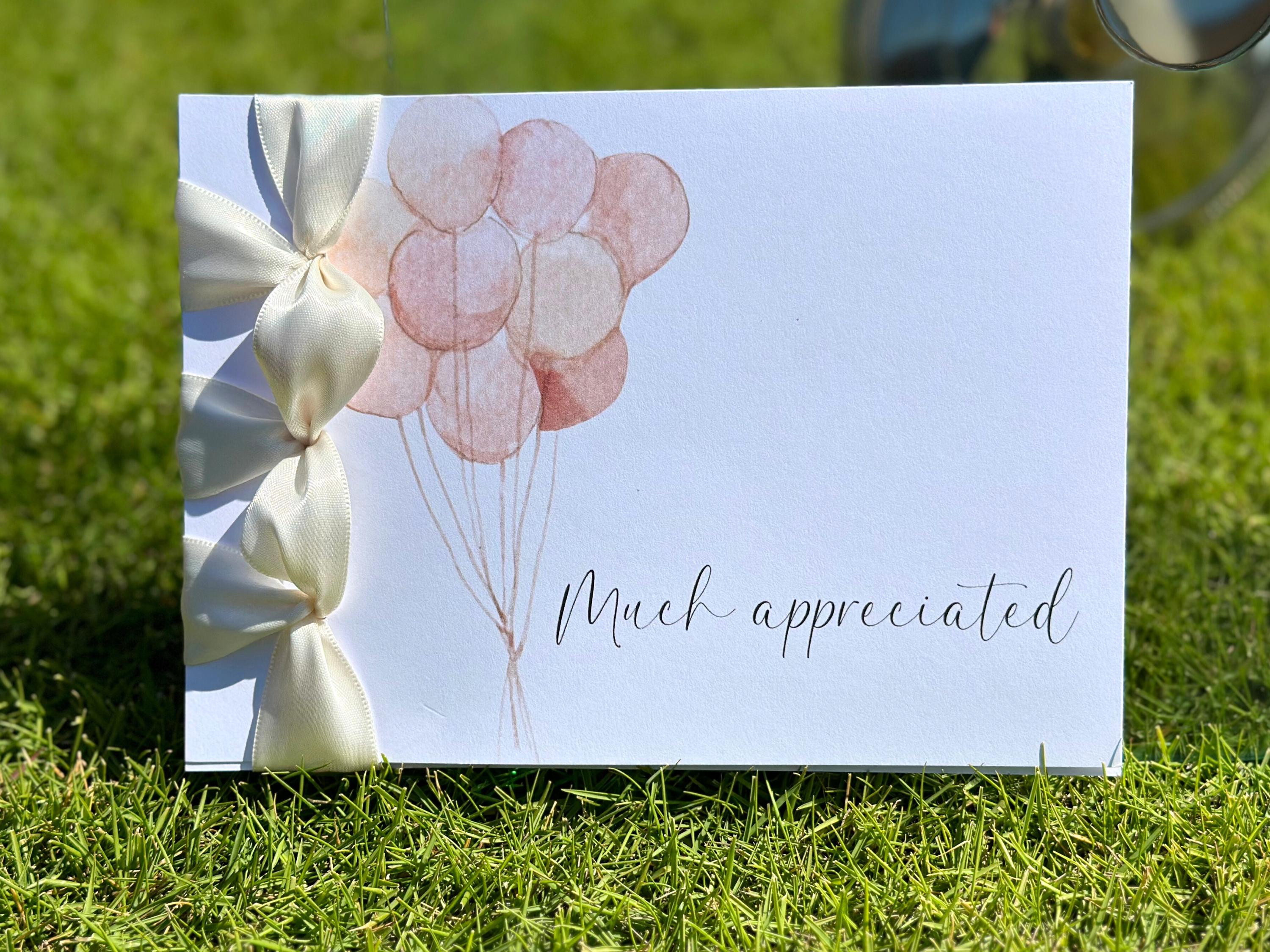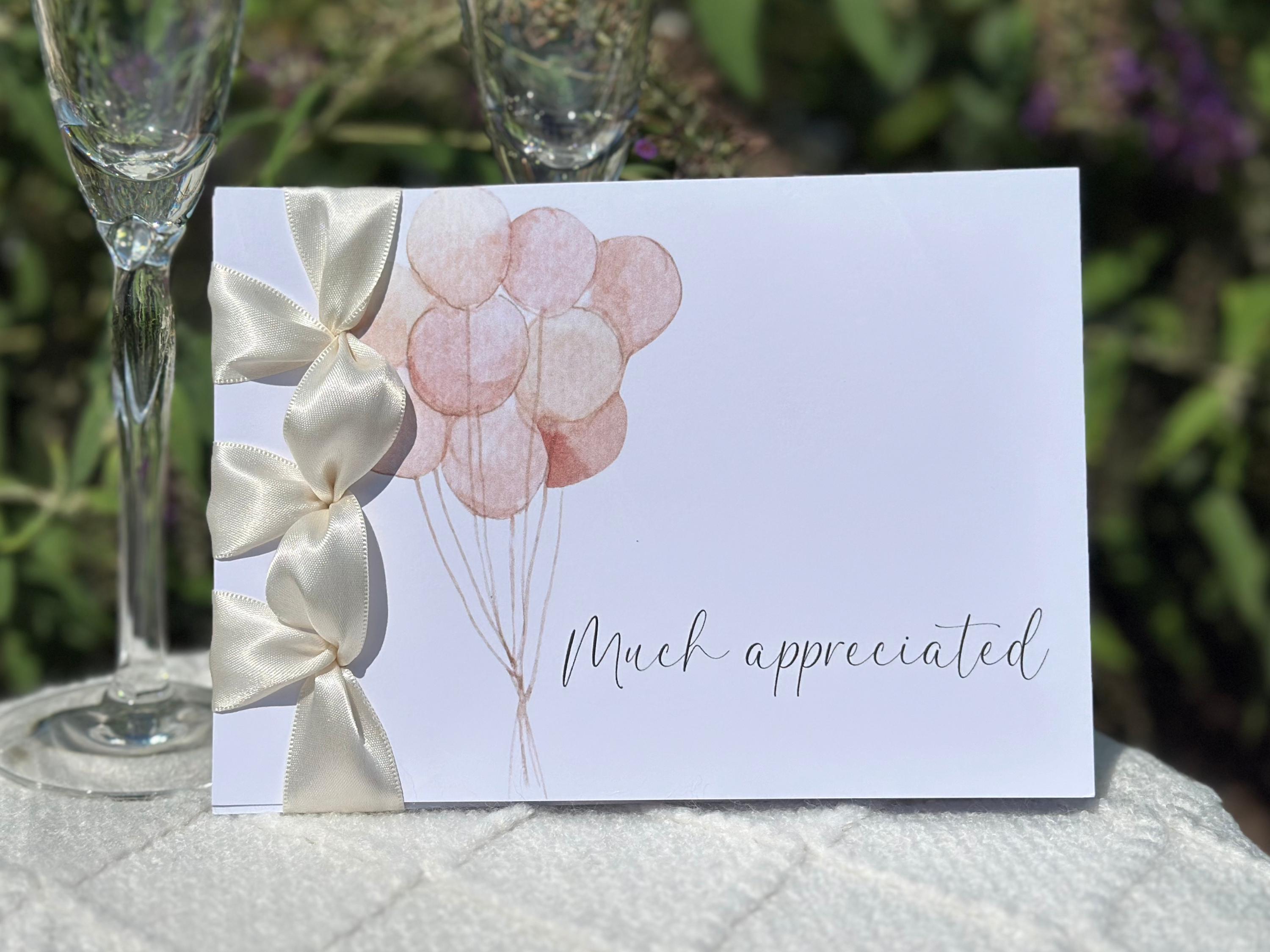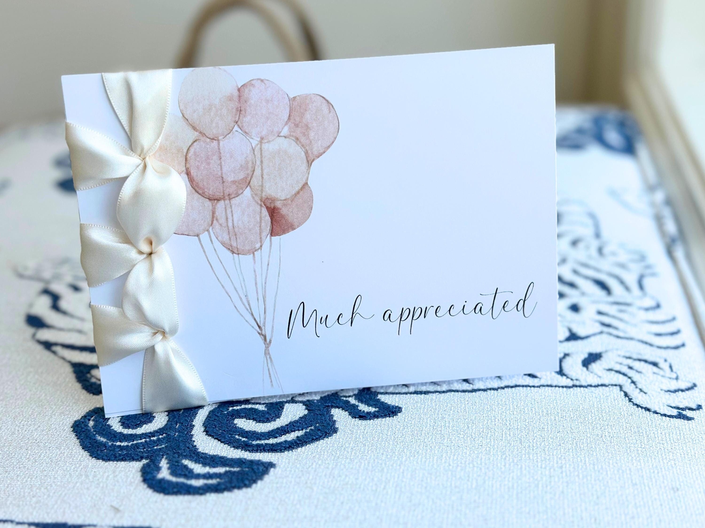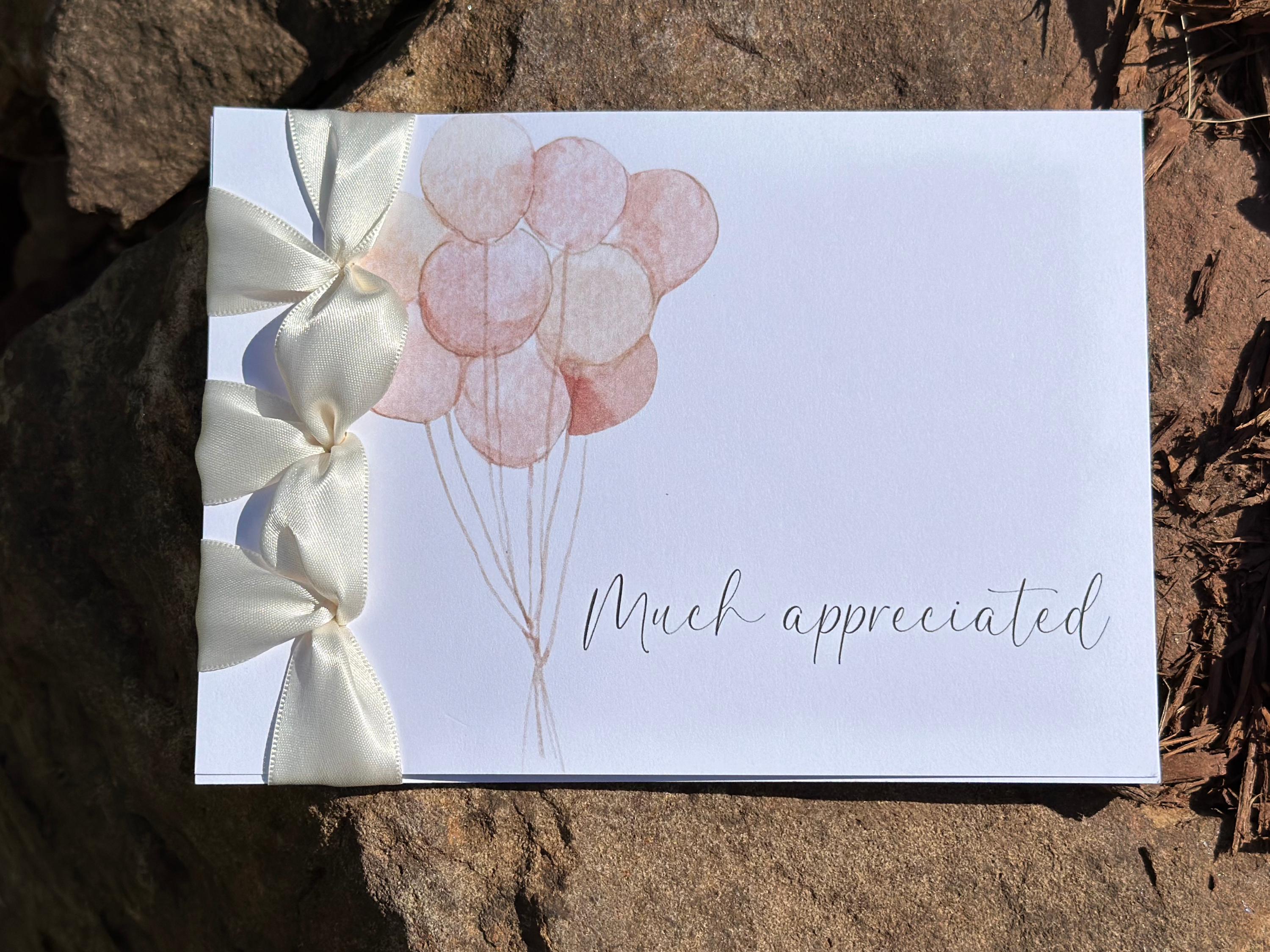 This elegant card will be the special gift for saying Thank You. This Card has colors on it in Pinks and Browns, with lettering in Black. It will become a favored keepsake. It is made from quality materials and crafted with meticulous care. Japanese Binding makes the ribbon on the card very elegant.