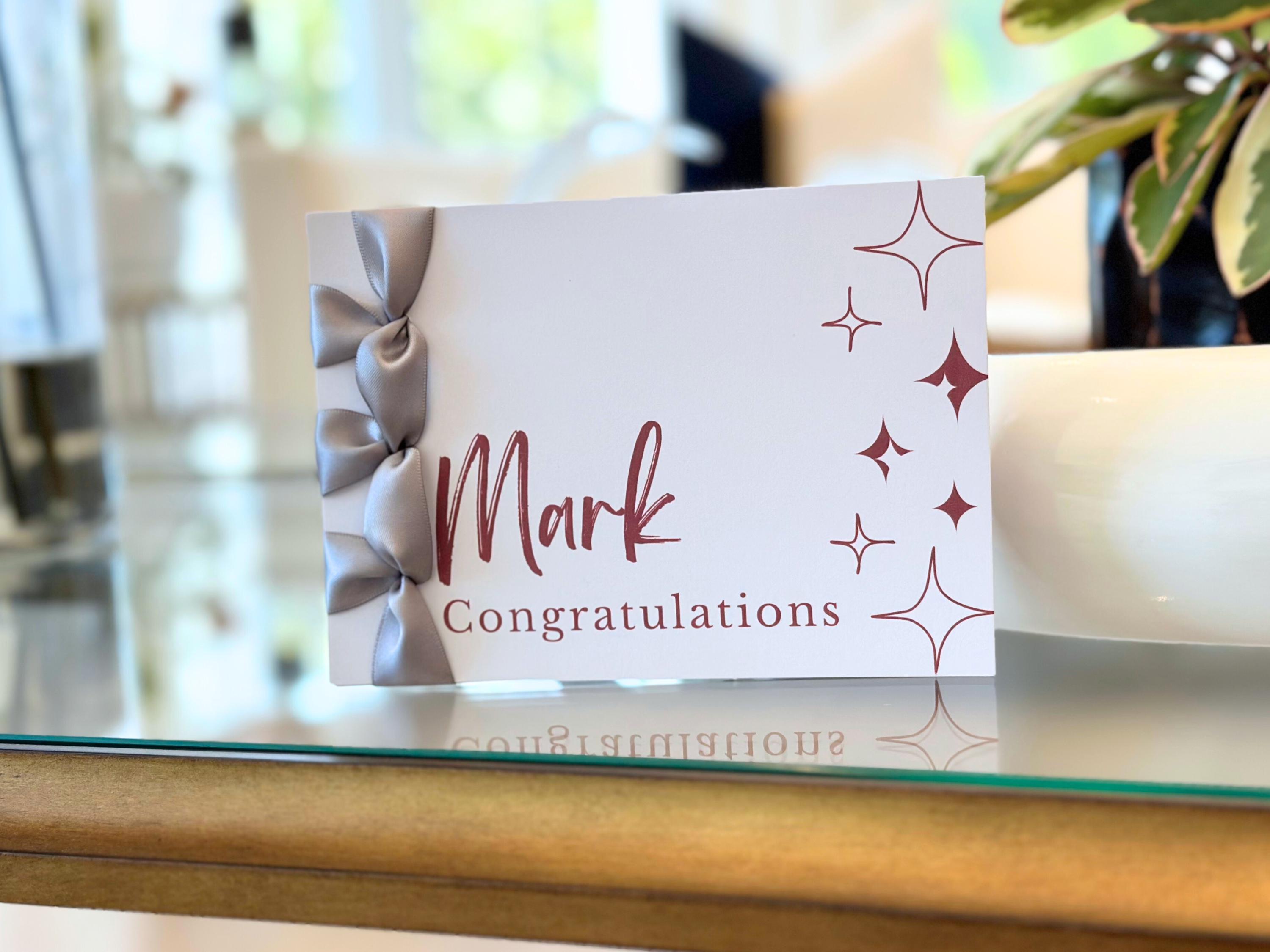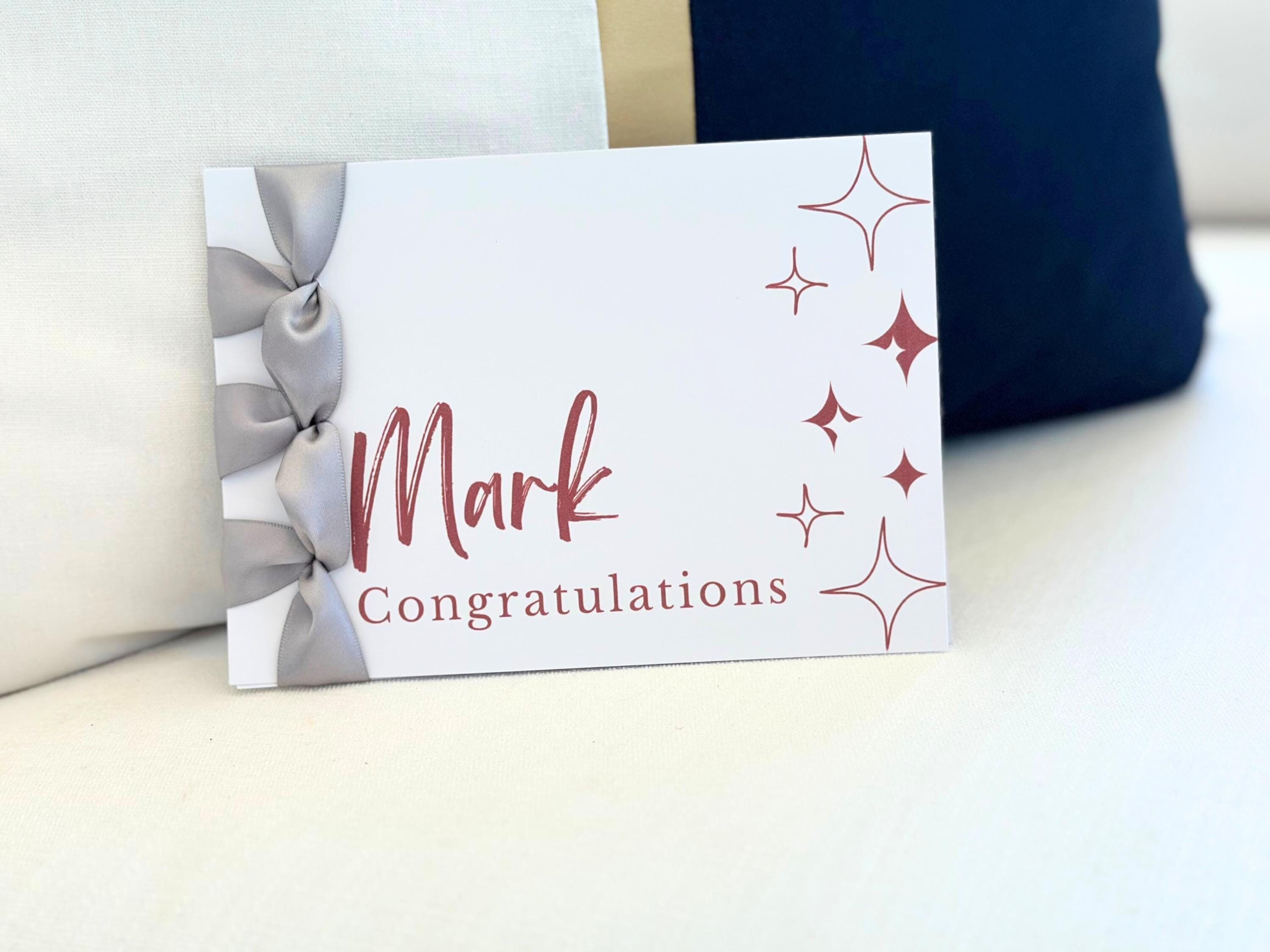Personalized Congratulations Card, Satin Ribbon, Handmade