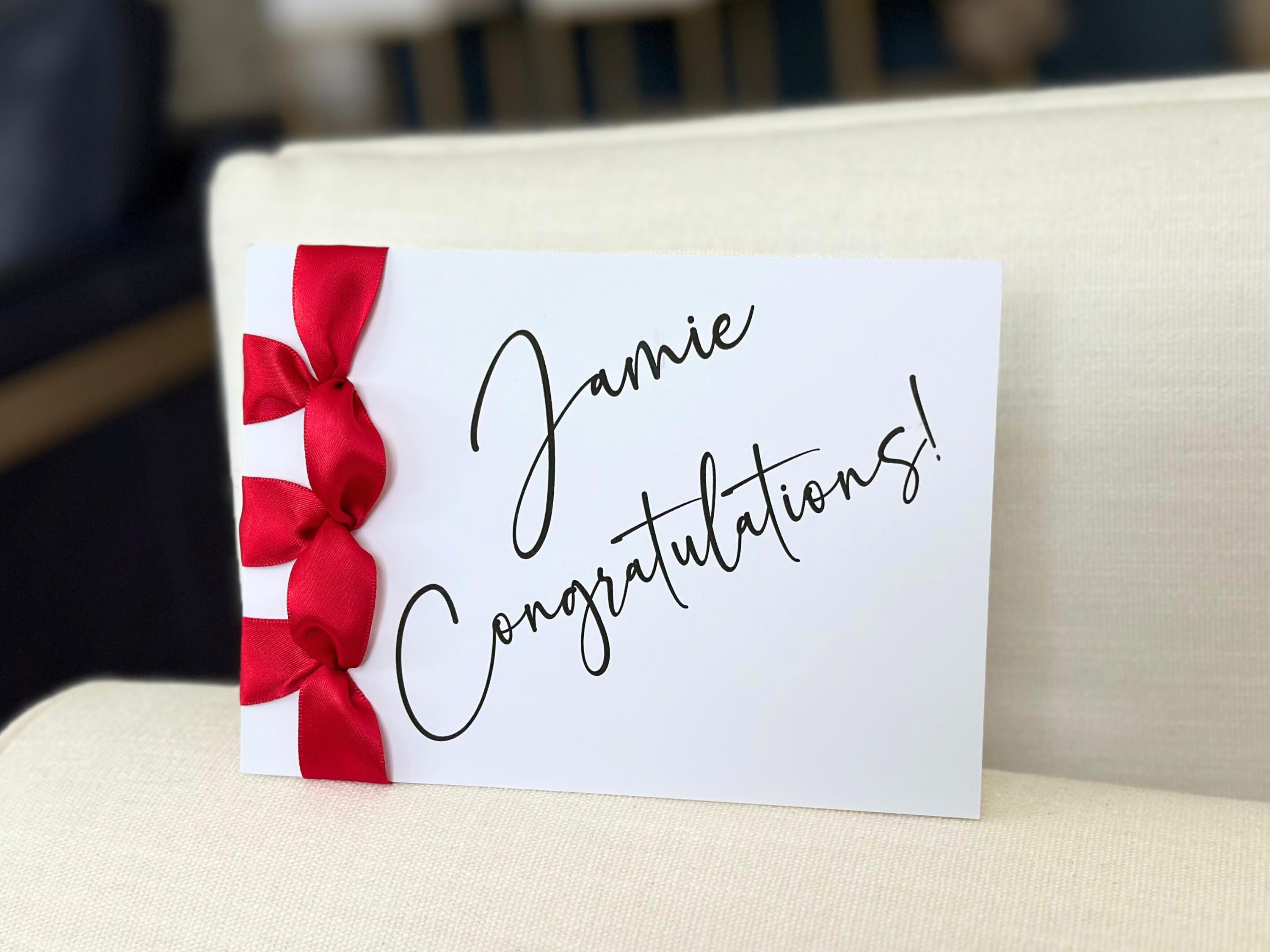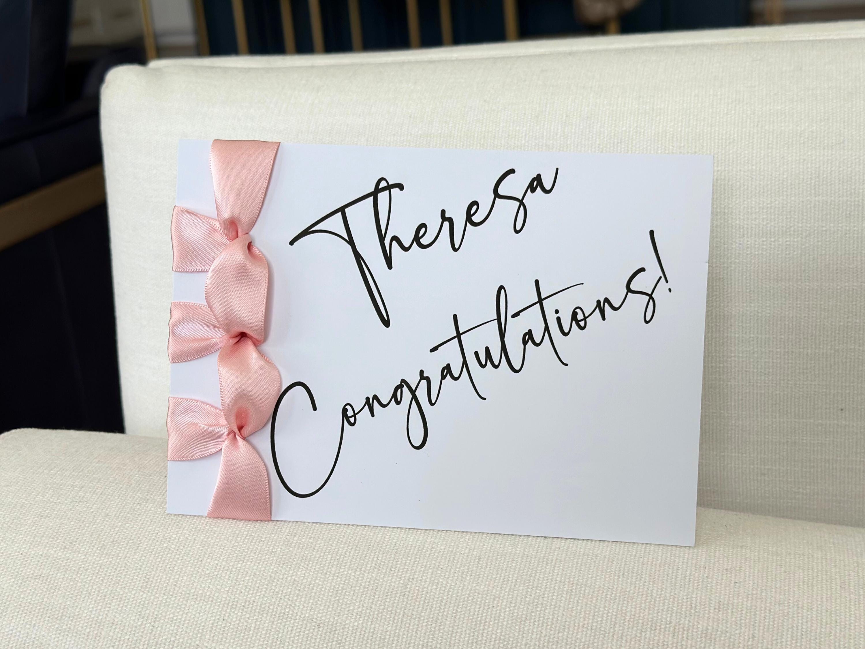 Handmade Congratulations Card: Satin Ribbon, Personalized Keepsake