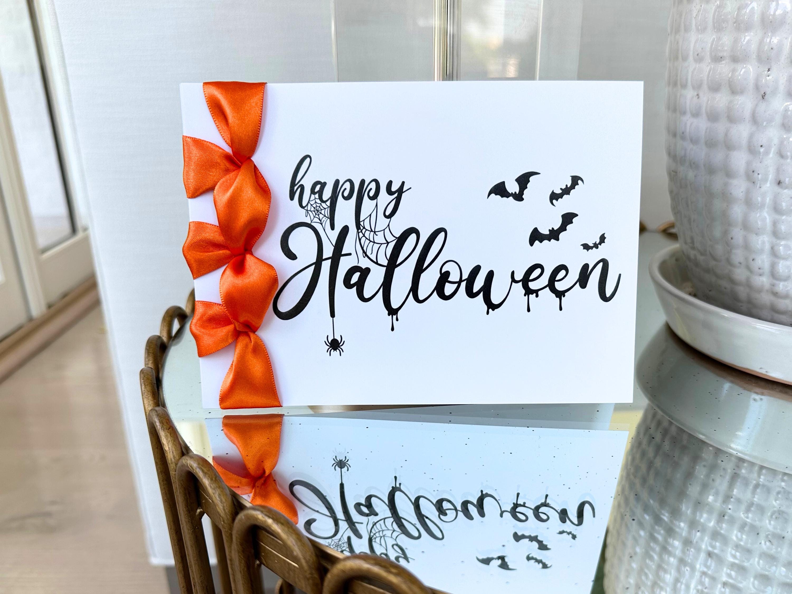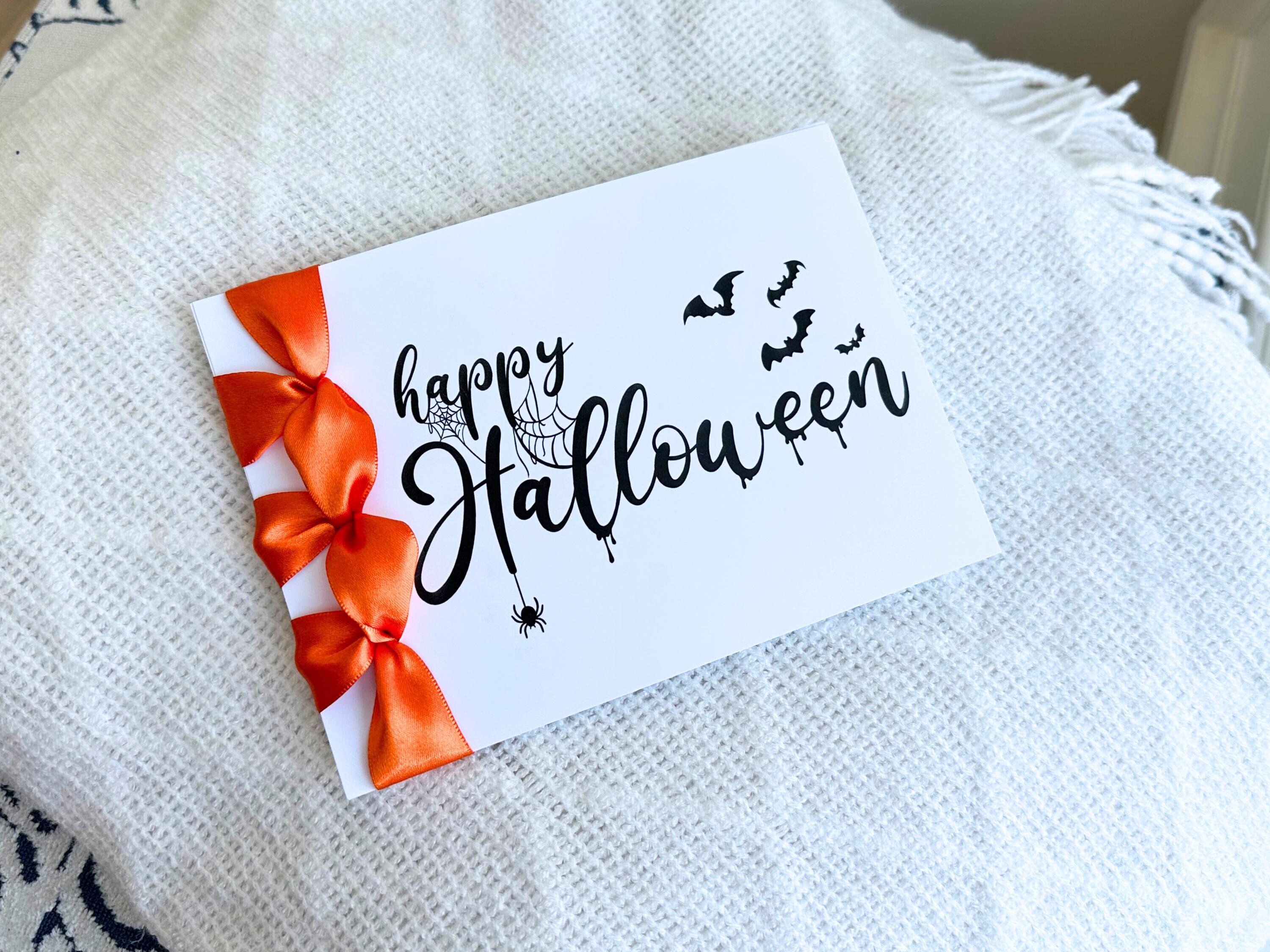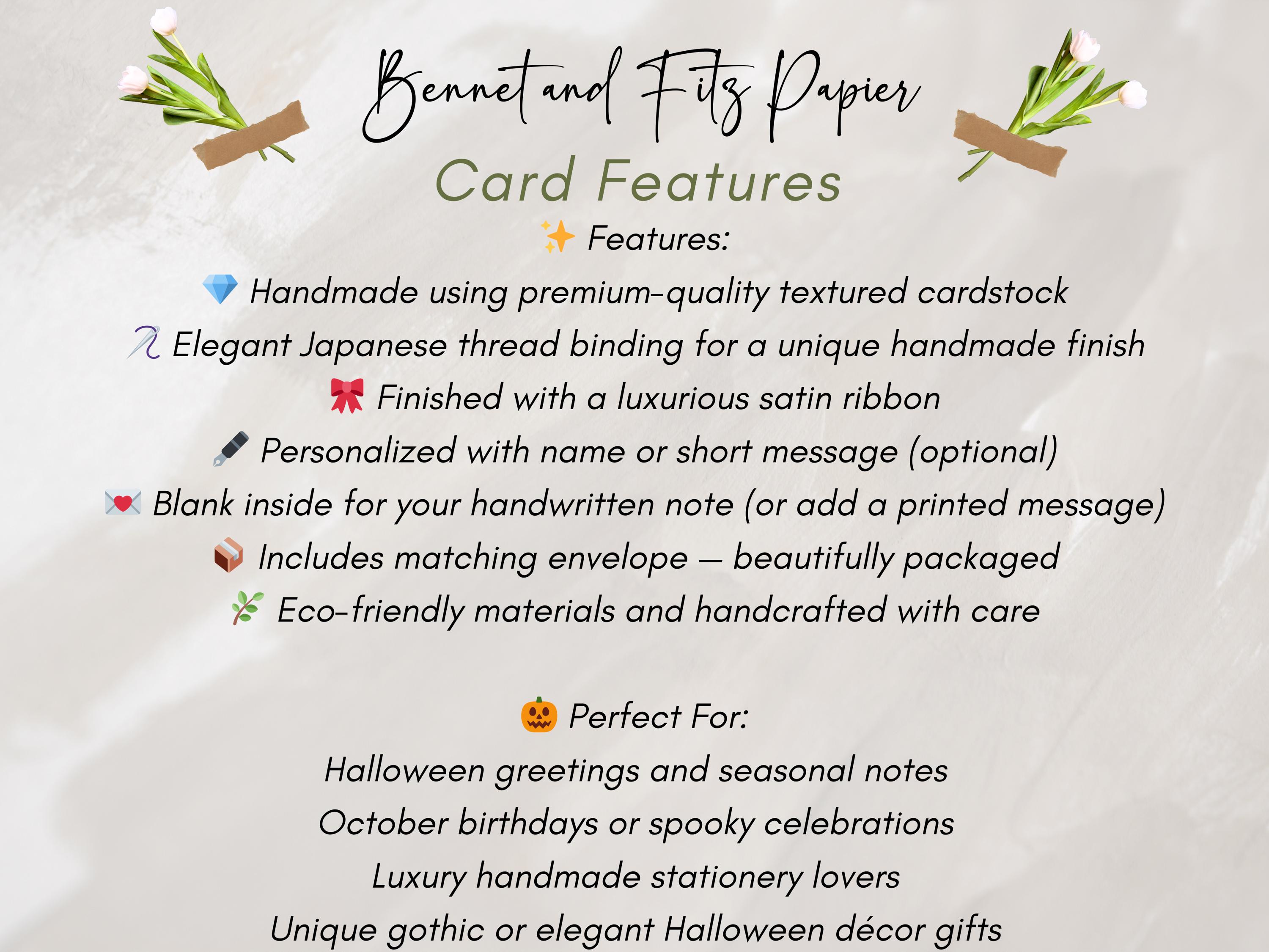 handmade halloween card, luxury halloween card, japanese binding card, satin ribbon card, elegant halloween card, spooky handmade card, halloween greeting card, handmade stationery gift, personalized halloween card, gothic halloween card, halloween keepsake, custom handmade card, halloween stationery, luxury handmade card, fall holiday card