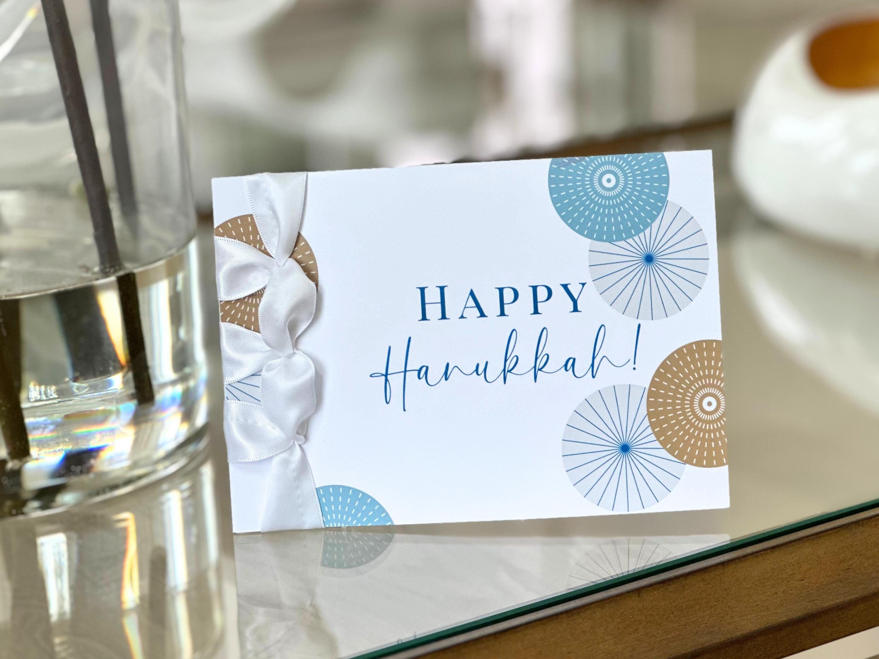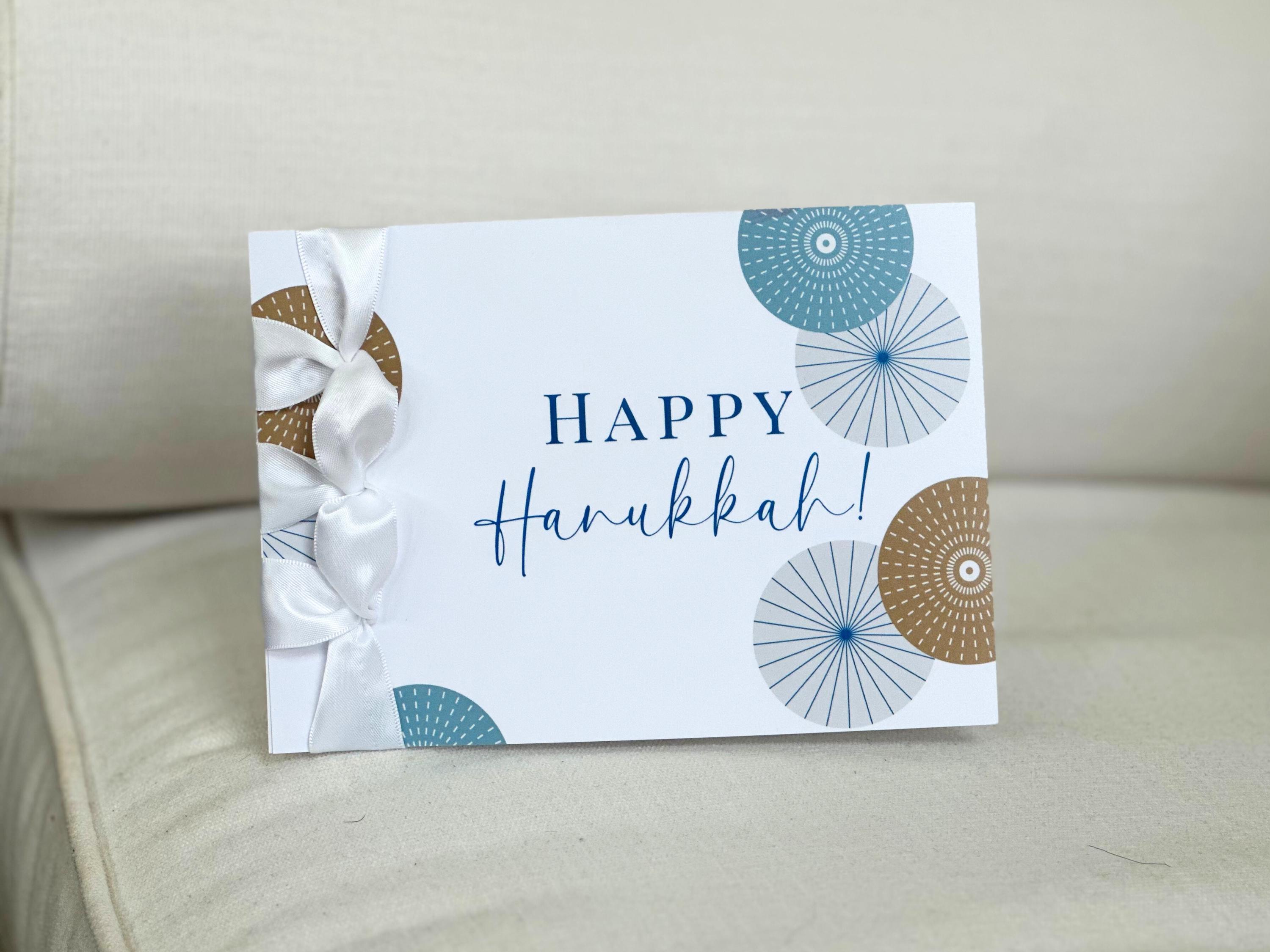 Handmade Hanukkah Card, Satin Ribbon, Luxury Cotton Cardstock