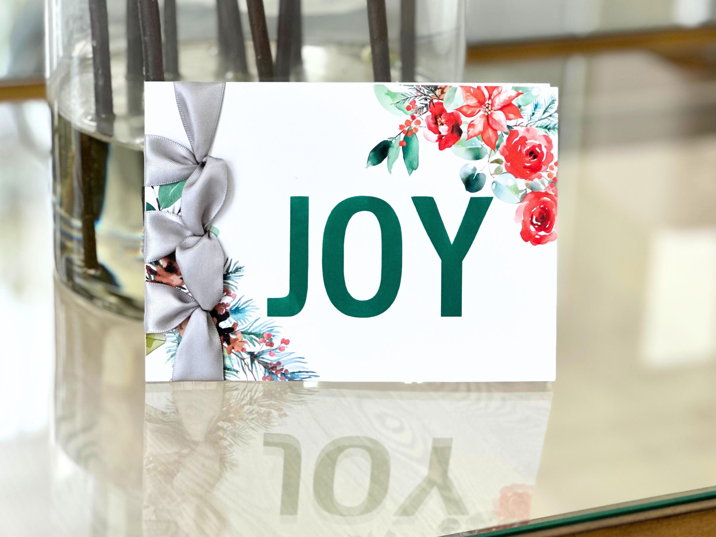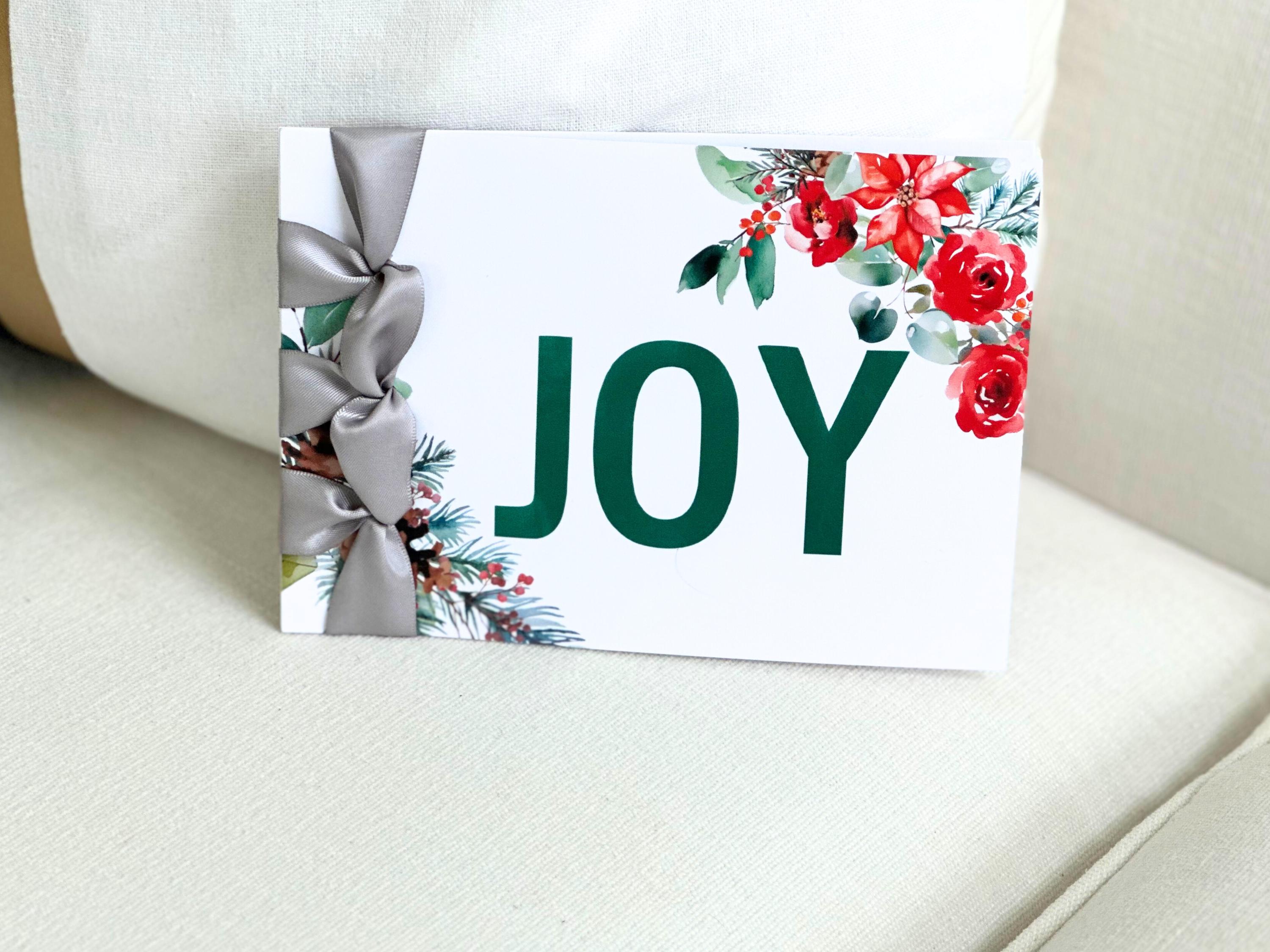 Custom Handmade Christmas Card, Satin Ribbon, Luxury Card, JOY