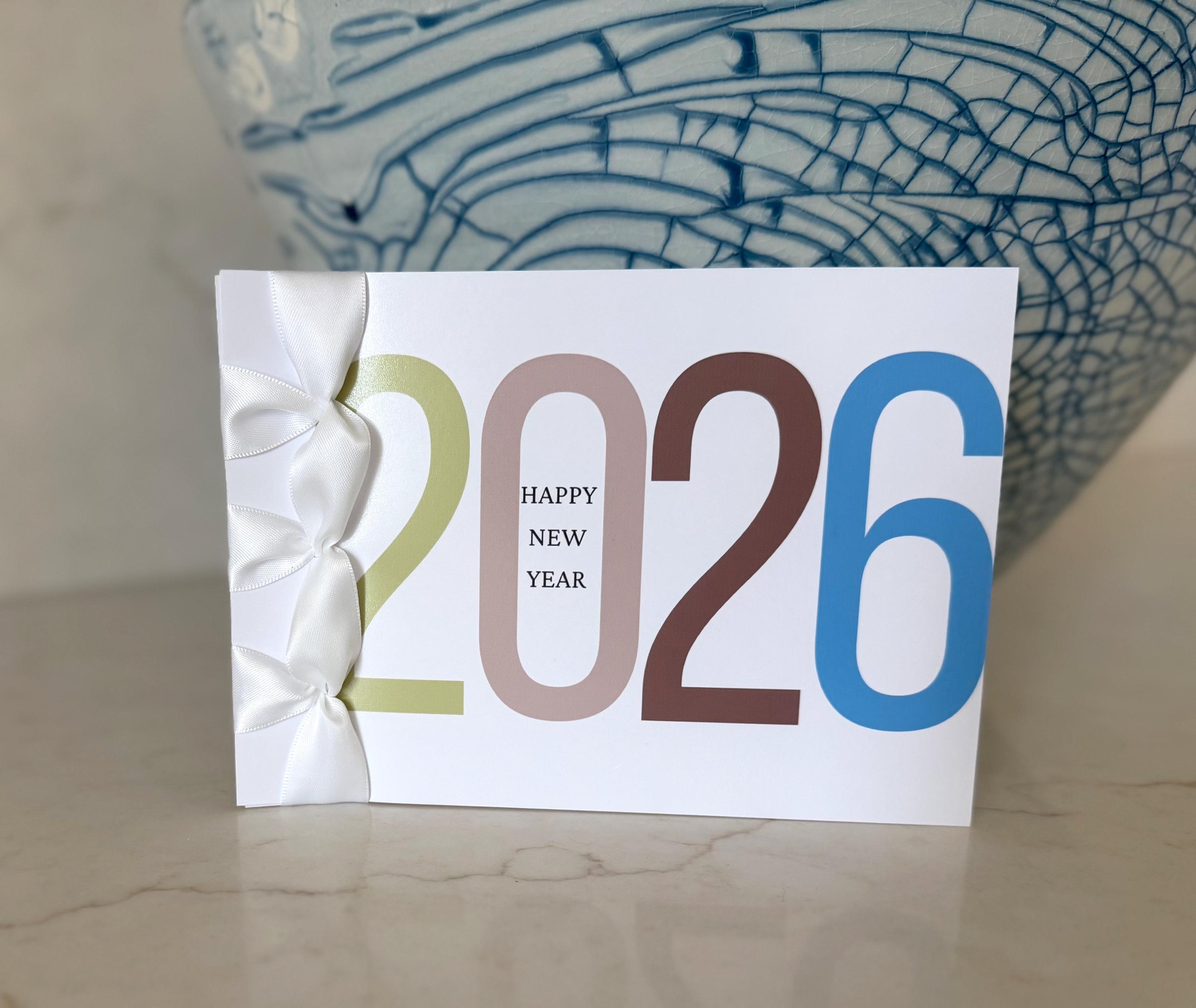 Handmade New Year Card, Satin Ribbon, Japanese Binding