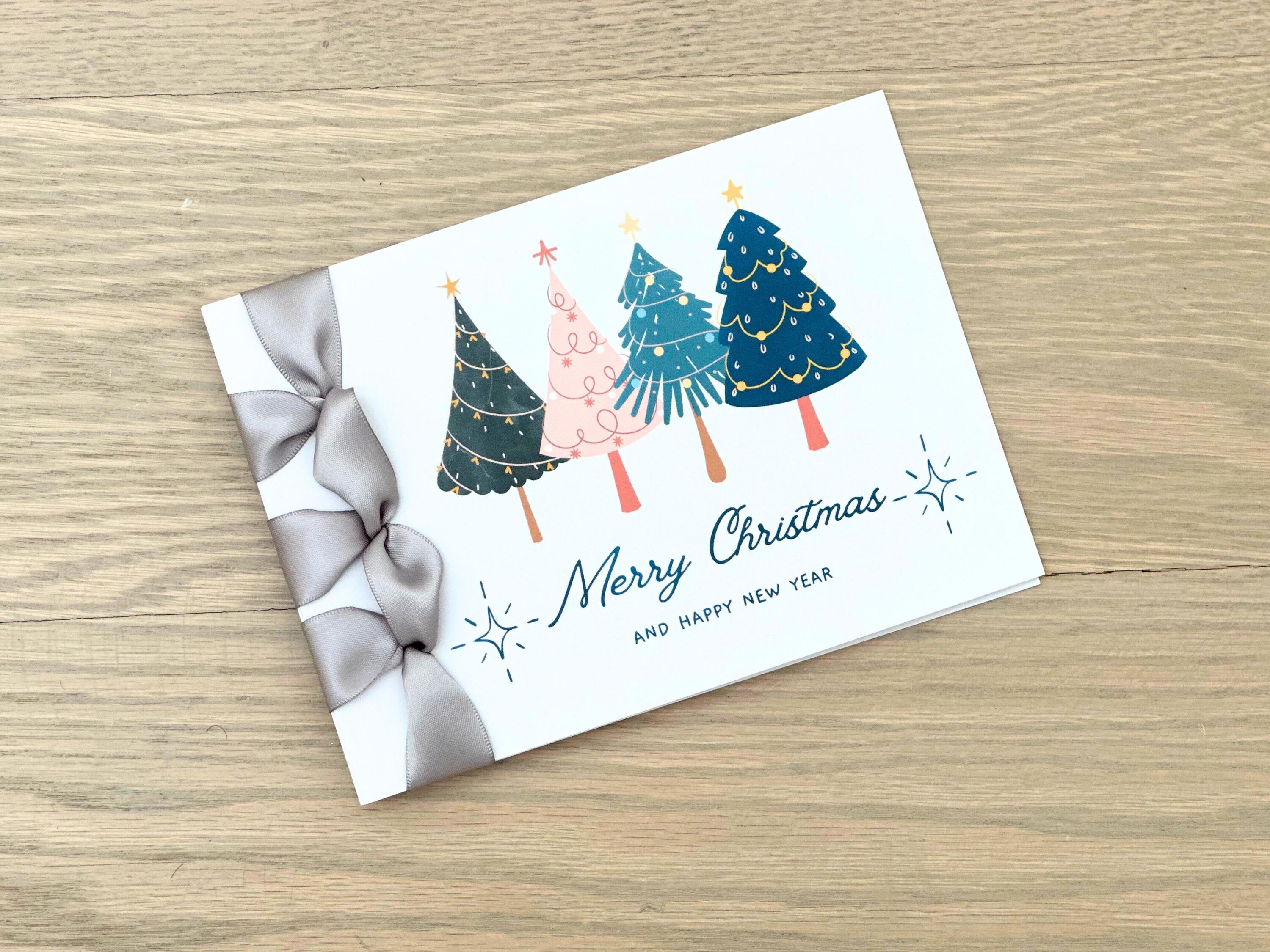 Handmade Christmas Card, Satin Ribbon, Japanese Binding, 5x7