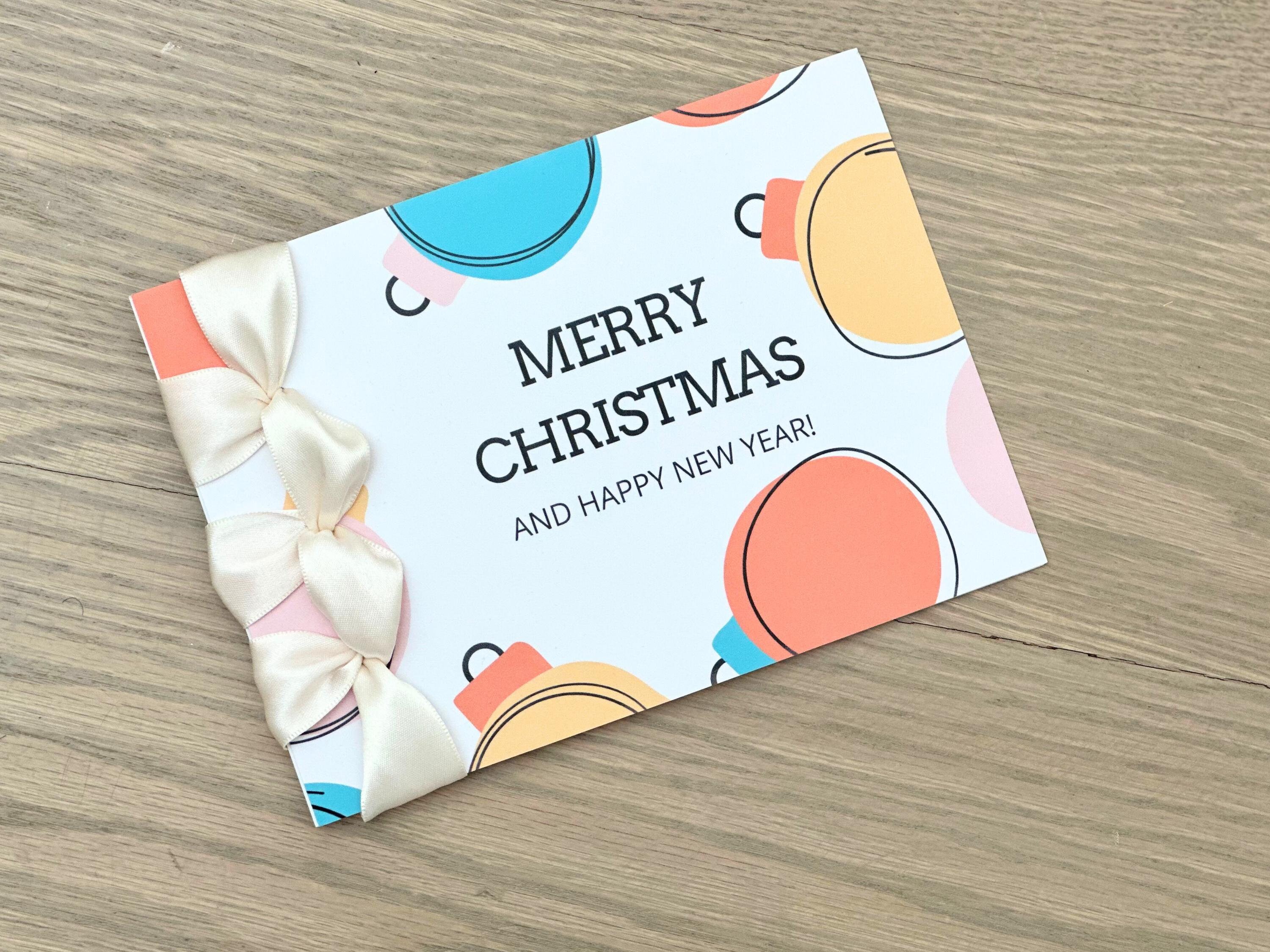 Custom Handmade Christmas Card: Satin Ribbon & Japanese Binding