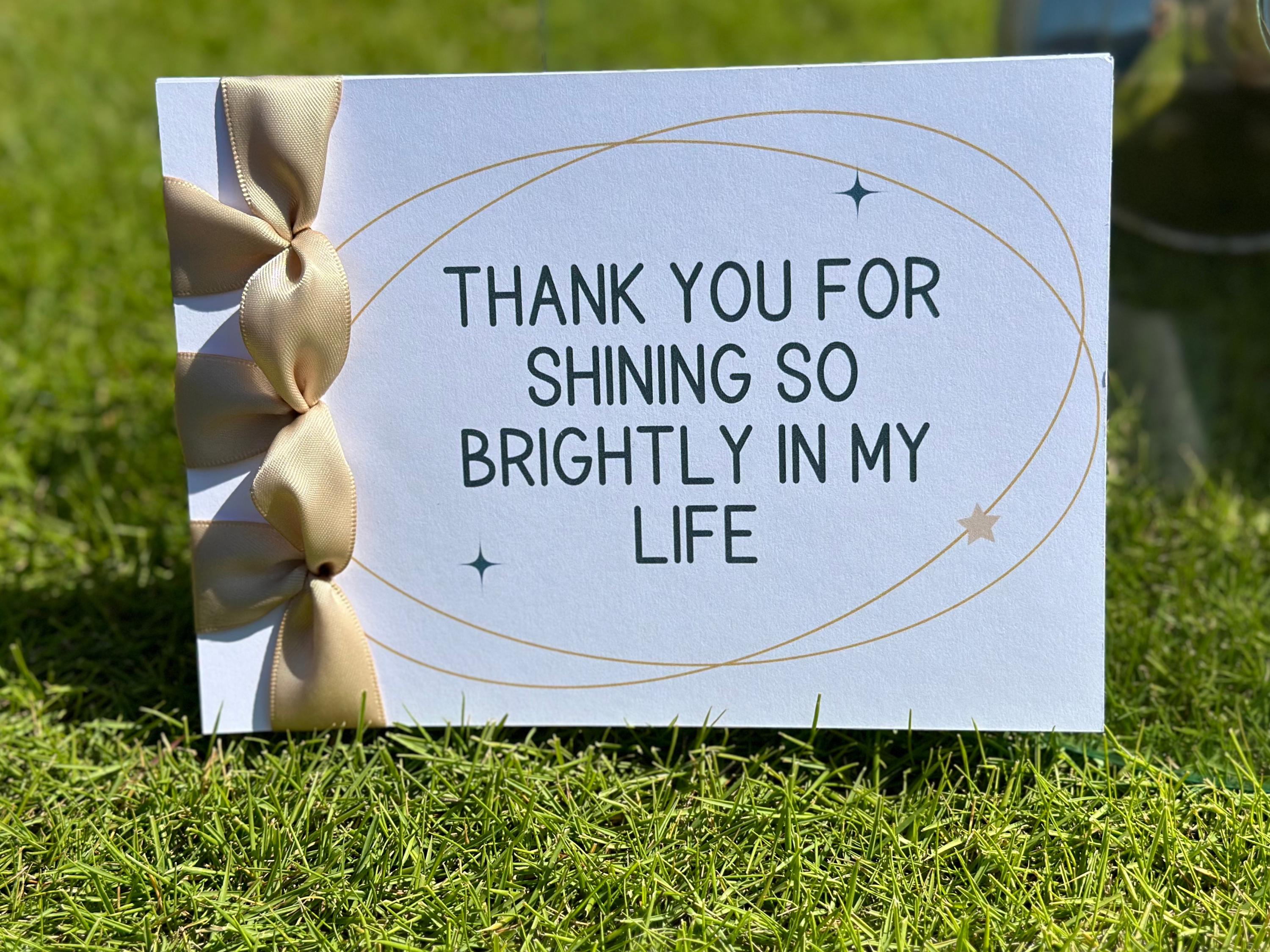 This elegant card will be the special gift for saying Thank You. This Card has wording in Navy and Beige. It will become a favored keepsake. It is made from quality materials and crafted with meticulous care. Japanese Binding makes the ribbon on the card very elegant.
