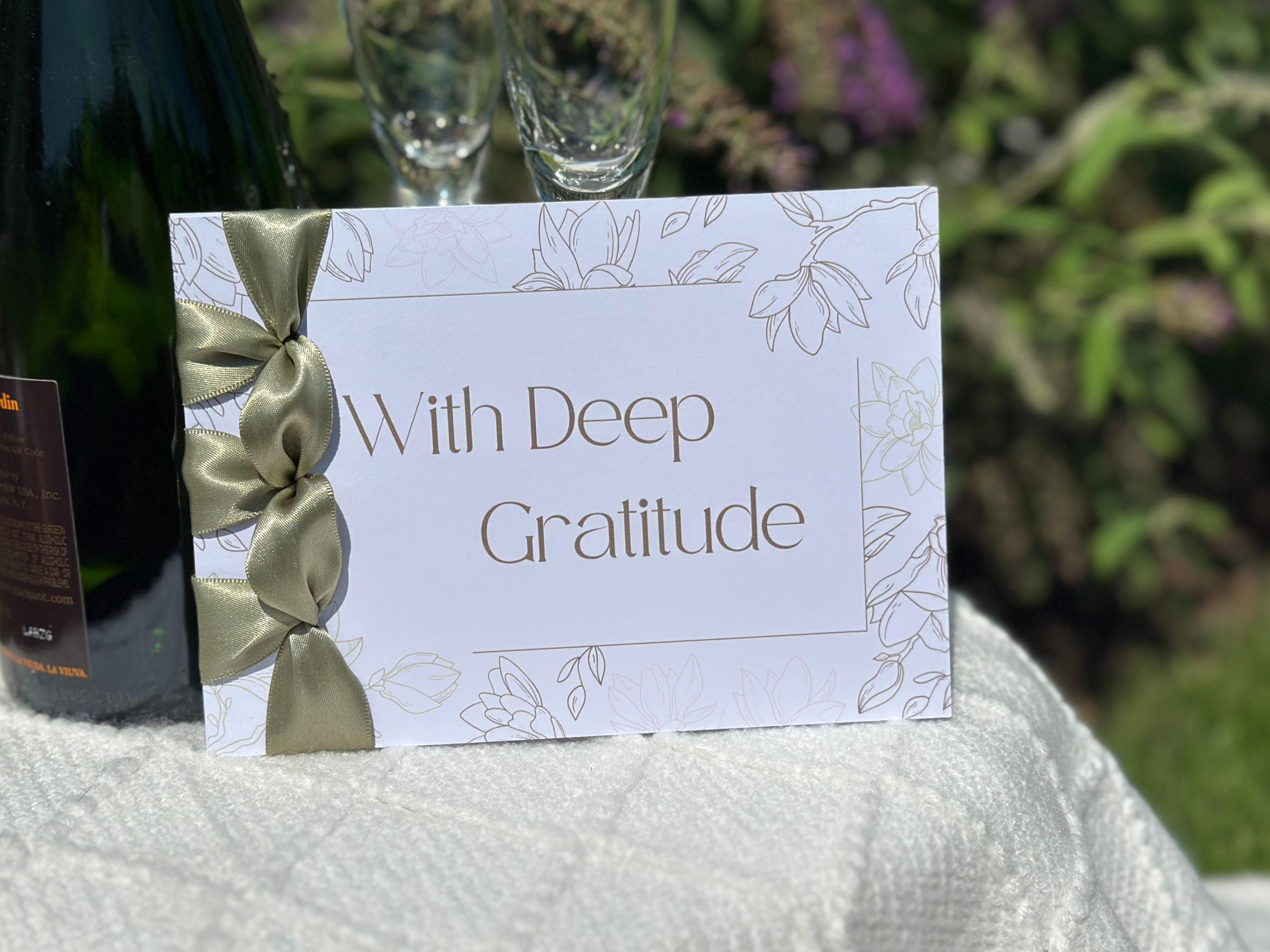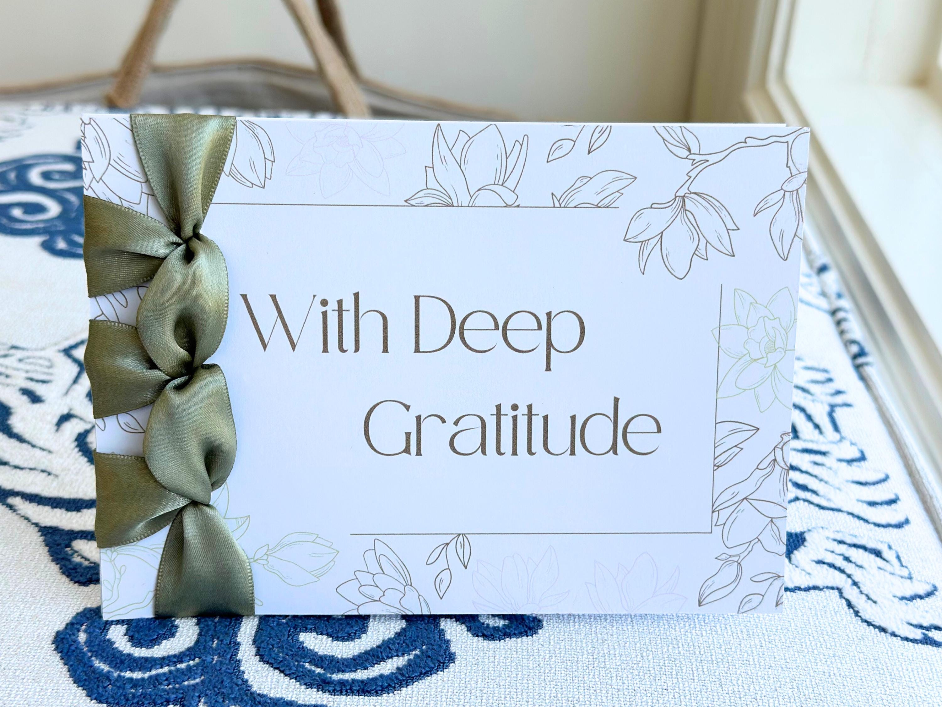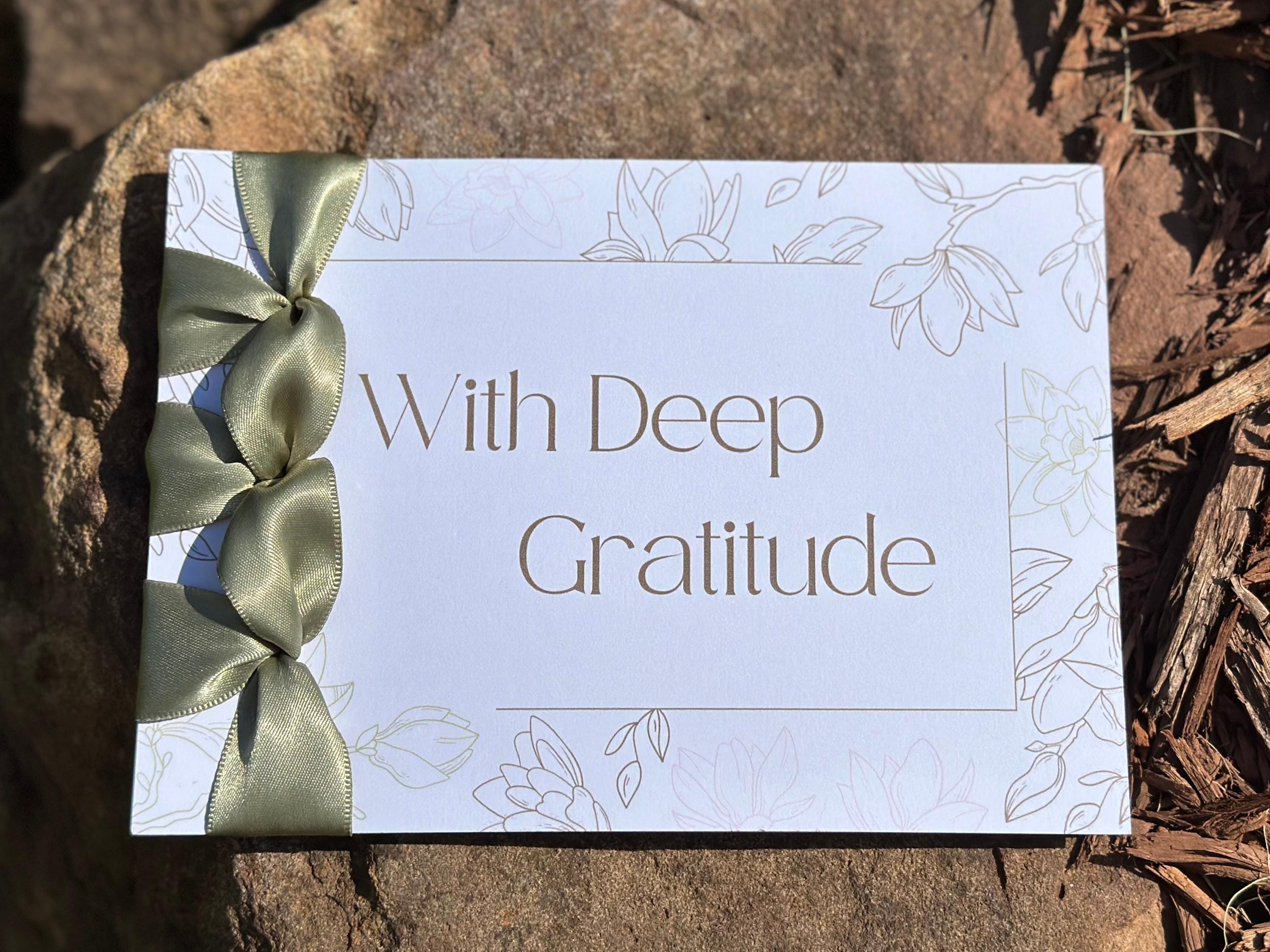 This elegant card will be the special gift for saying Thank You. This Card has colors on it in Dark Brown, Green and Pink, with lettering in Dark Brown. It will become a favored keepsake. It is made from quality materials and crafted with meticulous care. Japanese Binding makes the ribbon on the card very elegant.