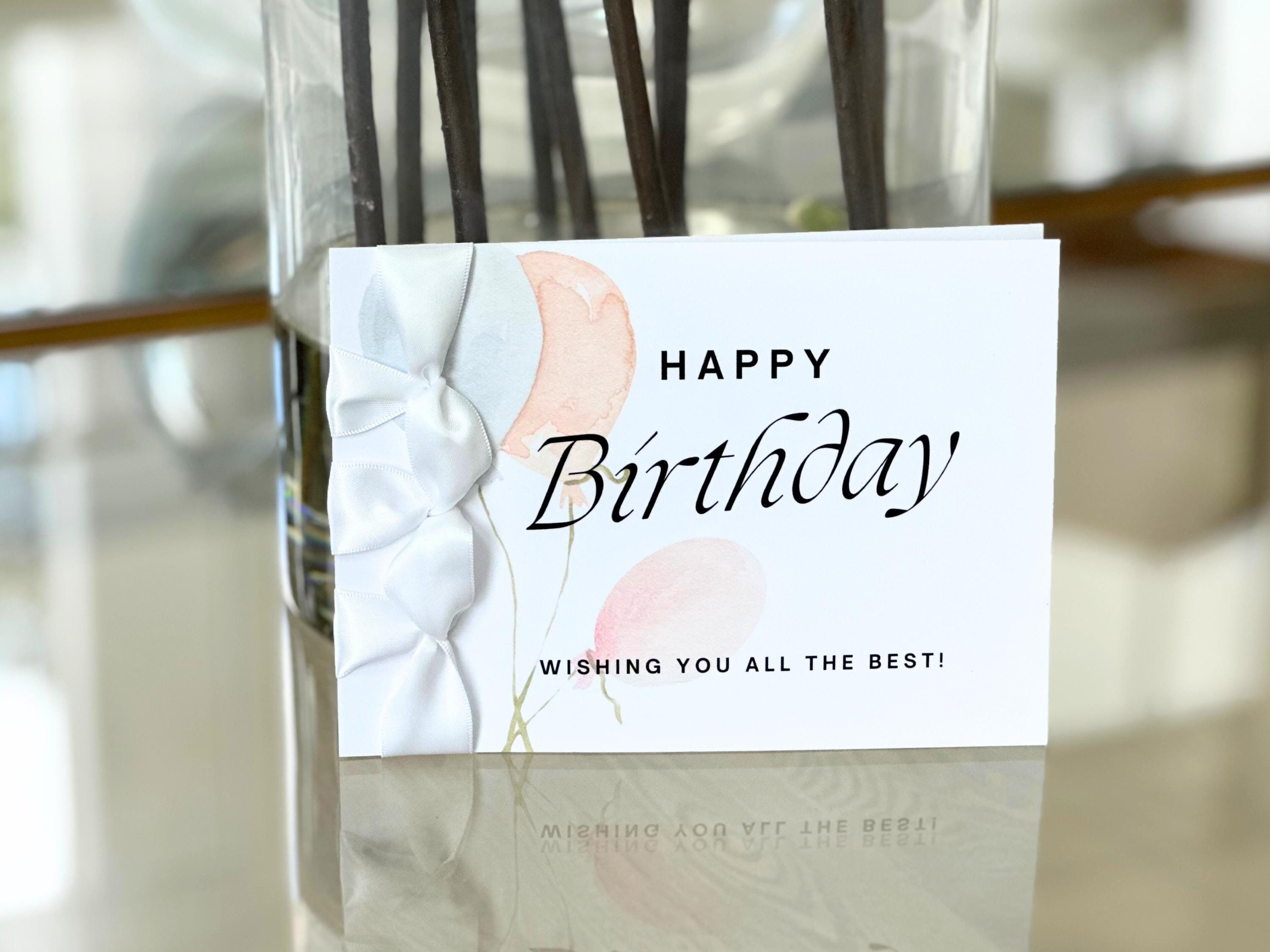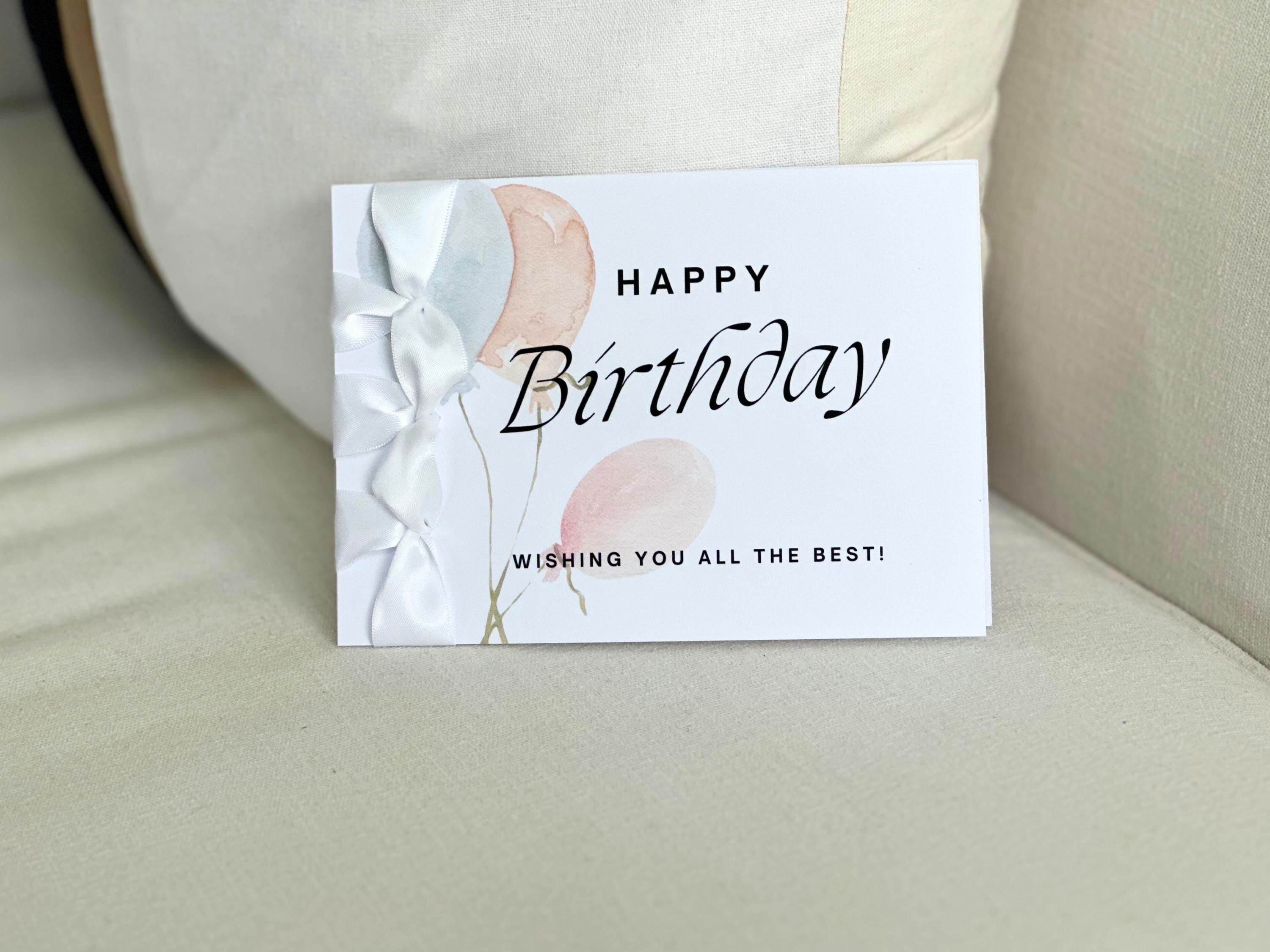 Handmade Birthday Card, Satin Ribbon, Personalized, Balloons