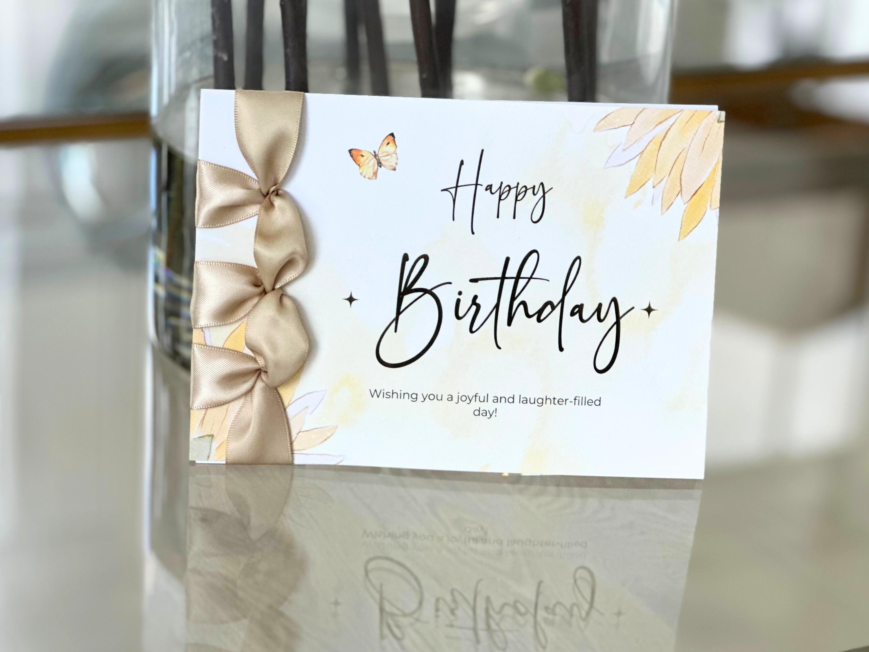 Your loved ones will love this custom card. The card is blank on the inside for your special message. It will become favored keepsakes for their important day! It is made from quality materials and crafted with meticulous care. Japanese Binding makes the ribbon on the card very elegant.