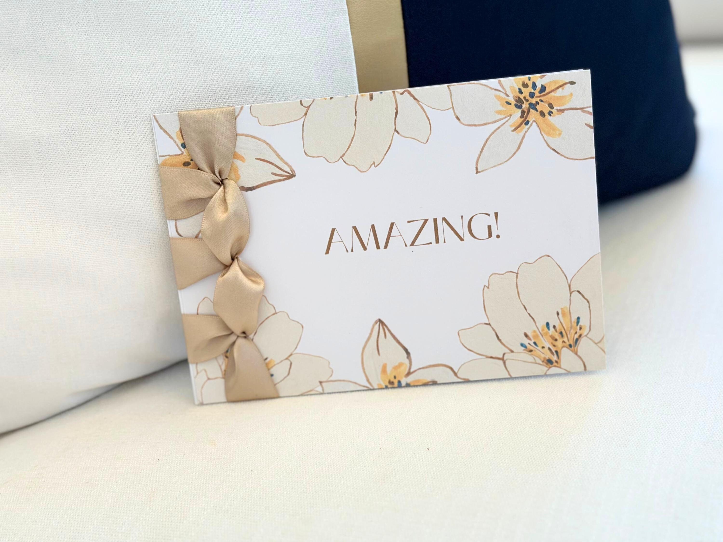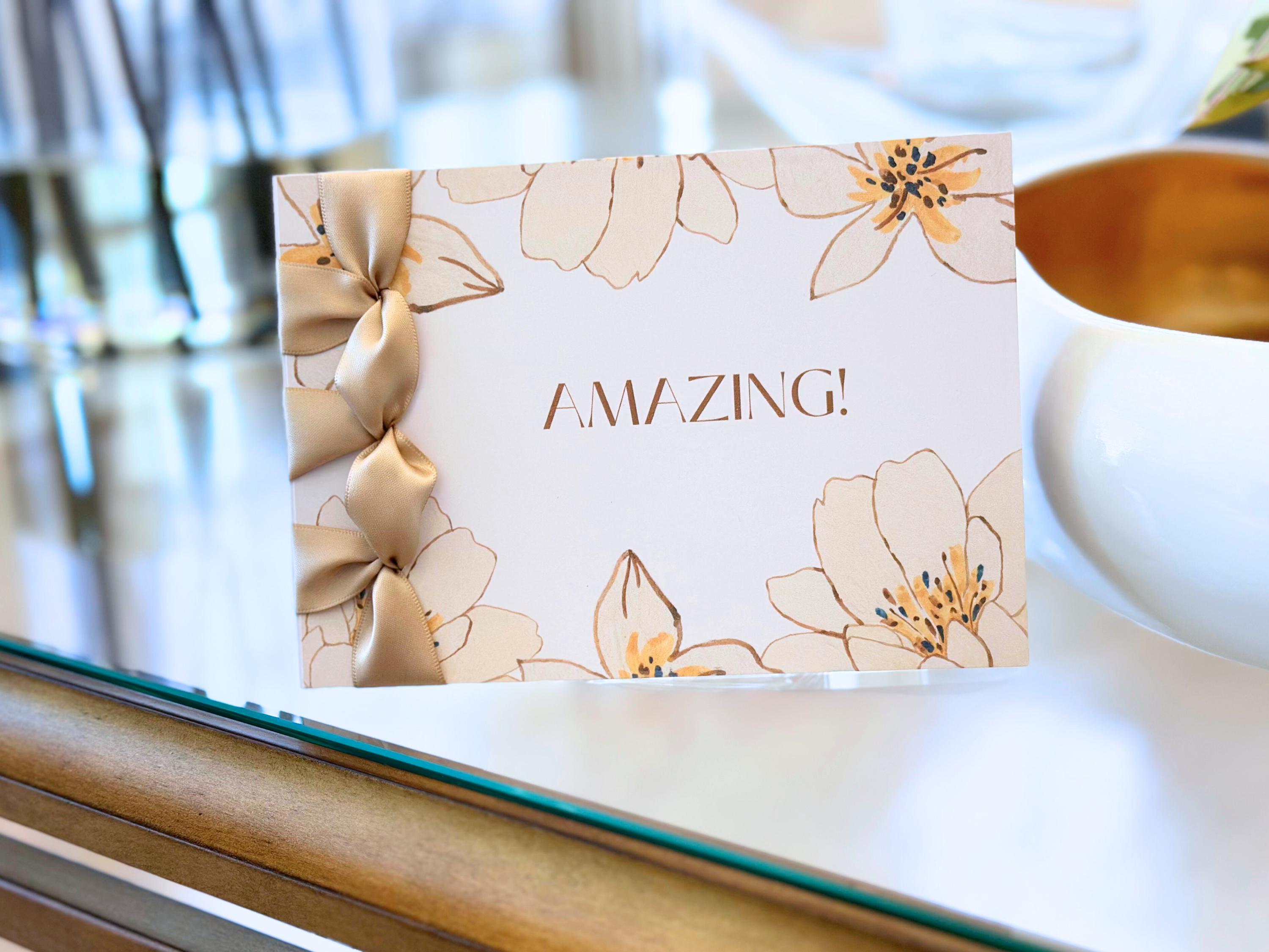 Your loved ones will love this custom card. The card is blank on the inside for your special message. It will become favored keepsakes for their important day! It is made from quality materials and crafted with meticulous care. Japanese Binding makes the ribbon on the card very elegant.