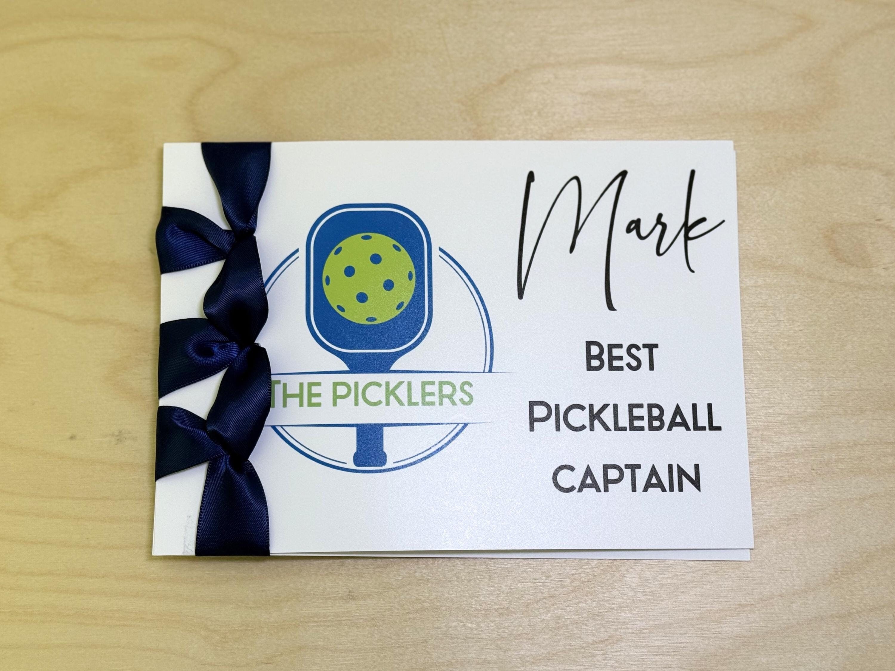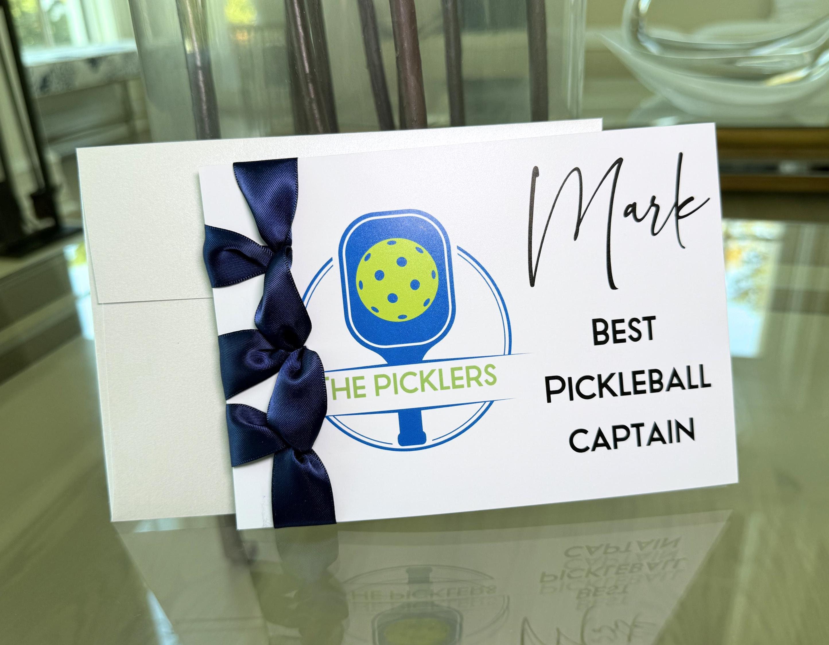 Handmade Pickleball Captain Card, Satin Ribbon, Personalized Gift