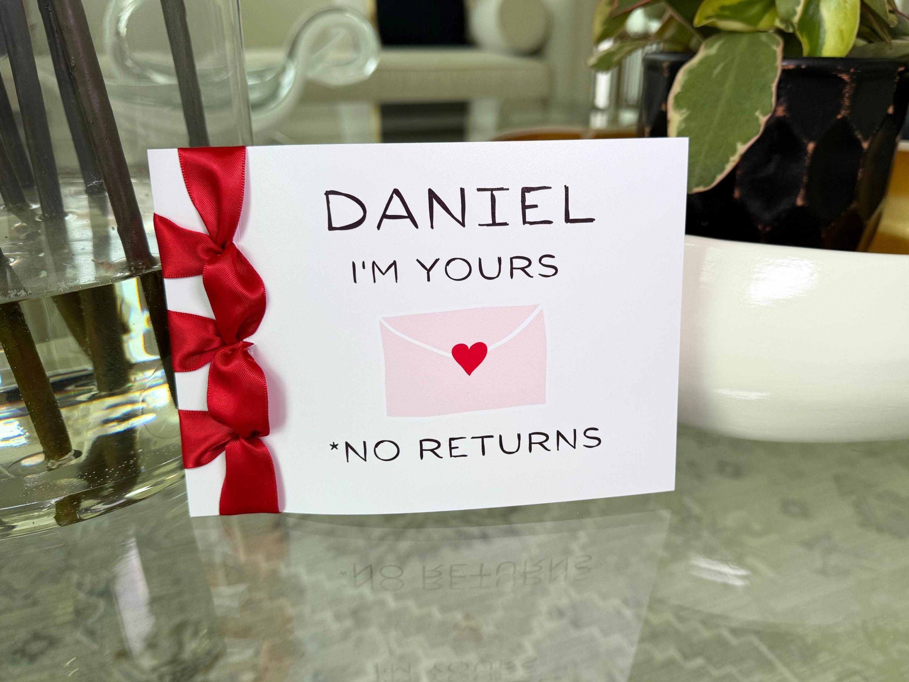 Add a touch of charm and humor to your Valentine’s Day with this Custom Handmade Valentine’s Card, designed to say “I’m Yours, No Returns” in the sweetest way possible.