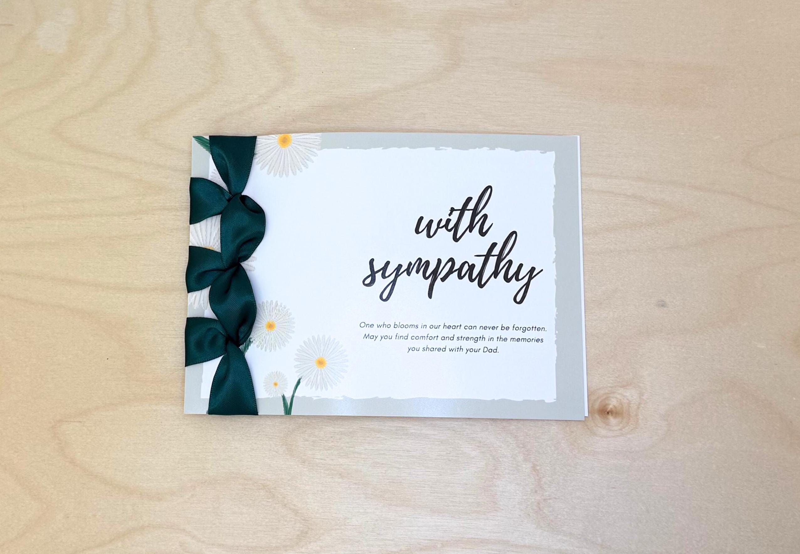 Handmade Sympathy Card, Satin Ribbon, Cotton Cardstock