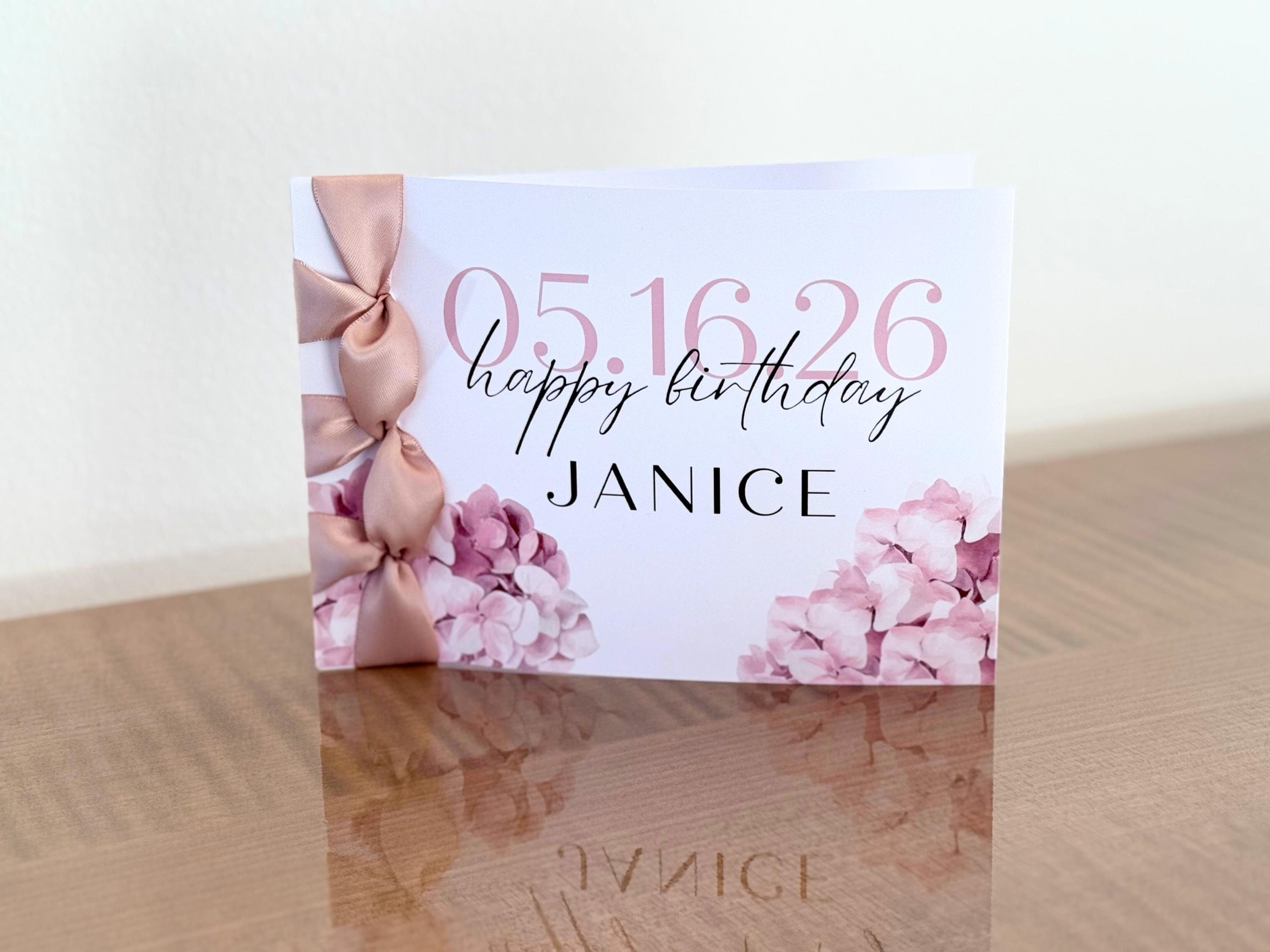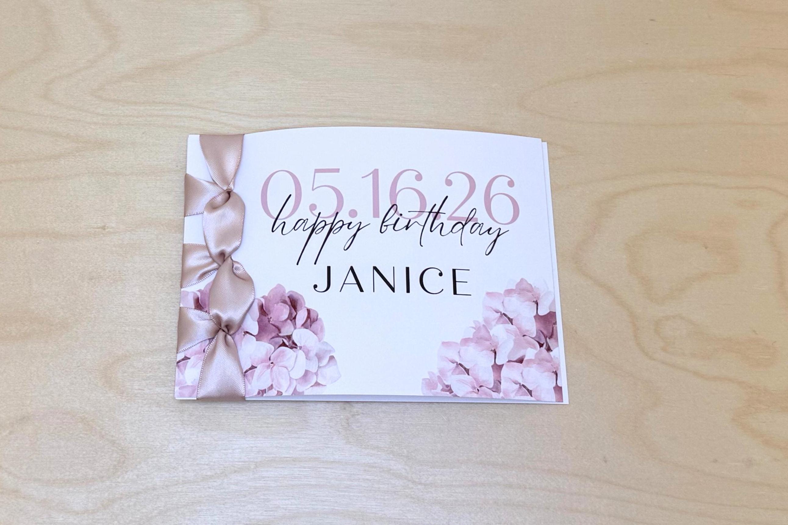 Each card is crafted by hand using premium textured cardstock and adorned with a luxurious satin ribbon, creating a refined and timeless look. Personalize it with the recipient’s name, birthday, or short message to make it a one-of-a-kind keepsake.