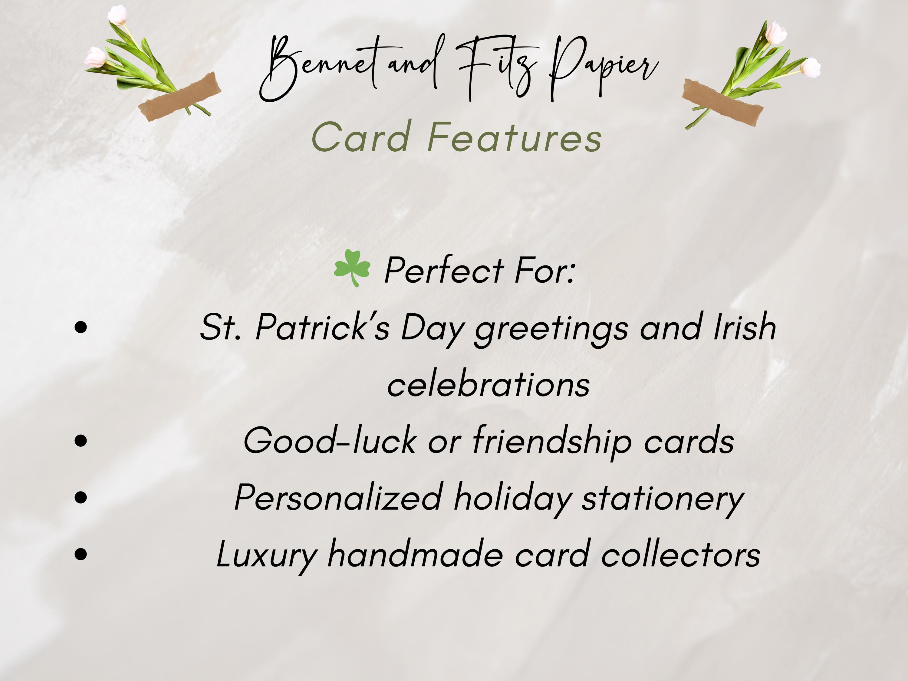 Perfect for family, friends, teachers, or coworkers, this luxury handmade card is the perfect way to share luck, laughter, and warm wishes this March 17th.