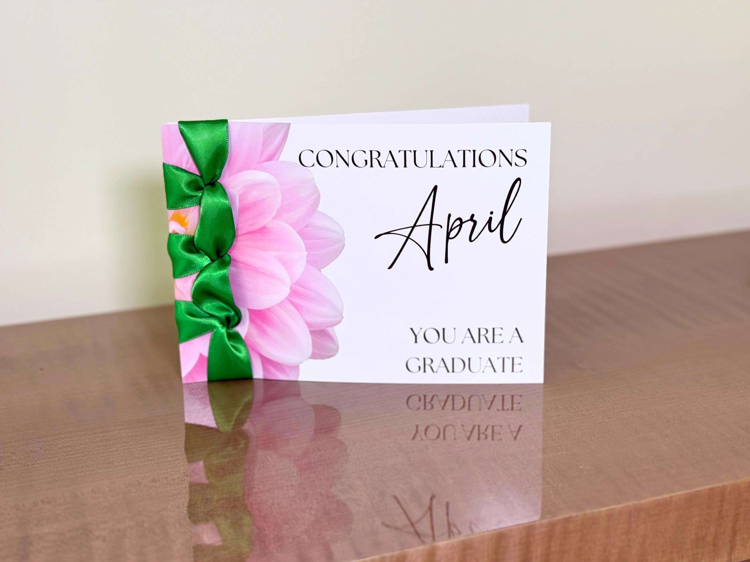 Each card is handmade with care using premium textured cardstock and accented with a beautiful satin ribbon for an elegant, timeless look. Add a personalized name, year, or message to make it truly special. Whether you’re celebrating a graduate, coworker, or loved one, this luxury personalized card is the perfect way to say “Congratulations” in style.