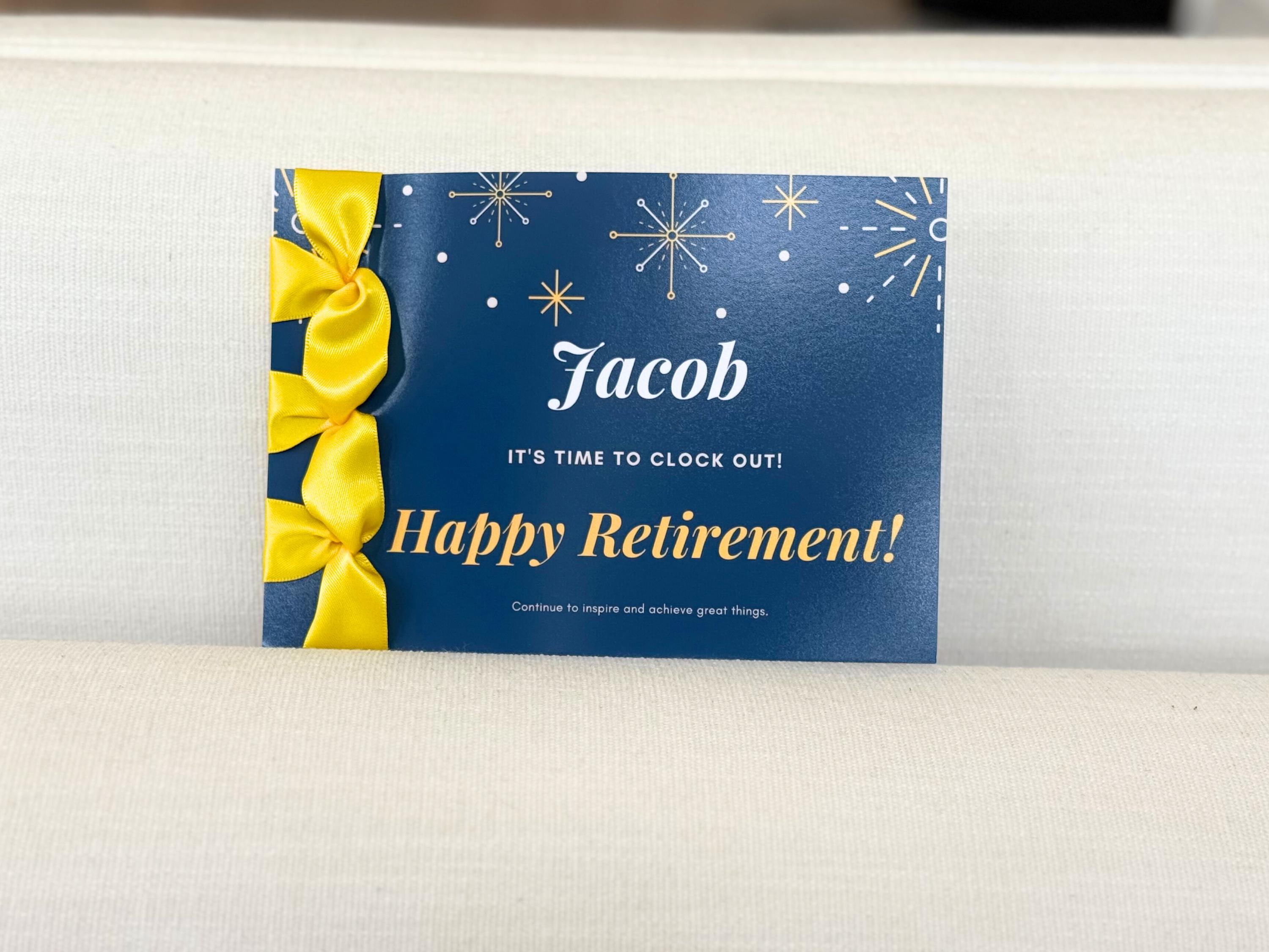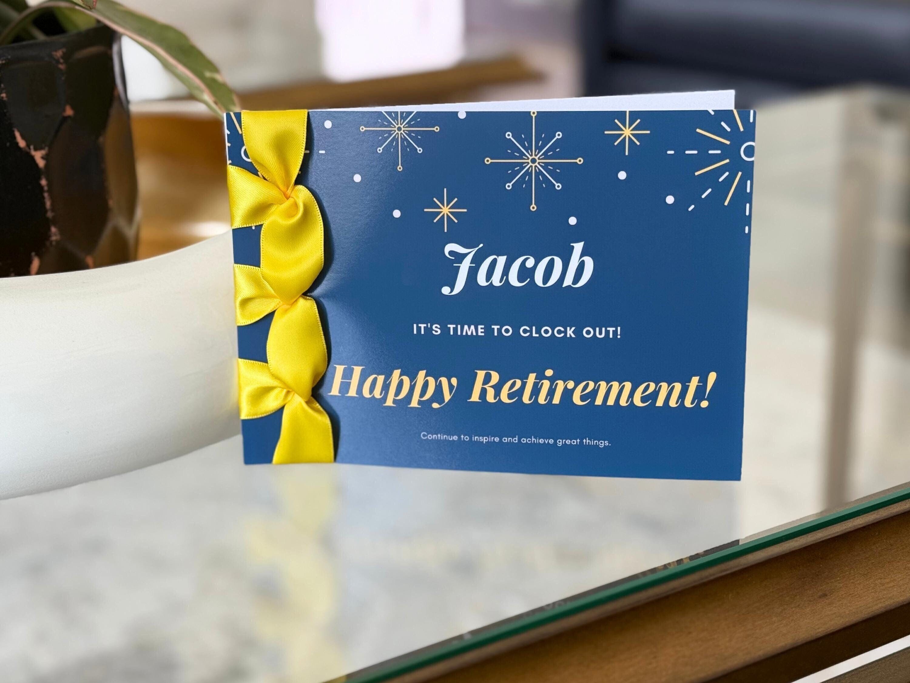 Handmade Retirement Congratulations Card: Satin Ribbon, Personalized Keepsake