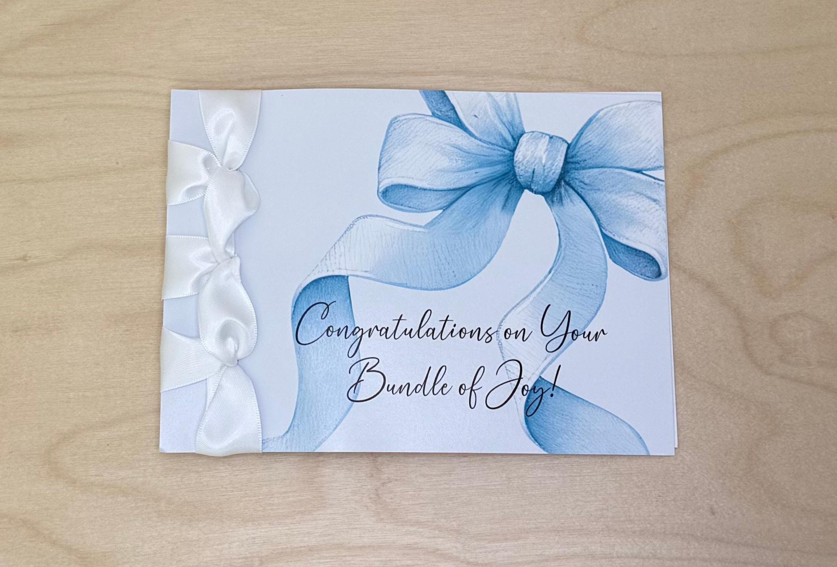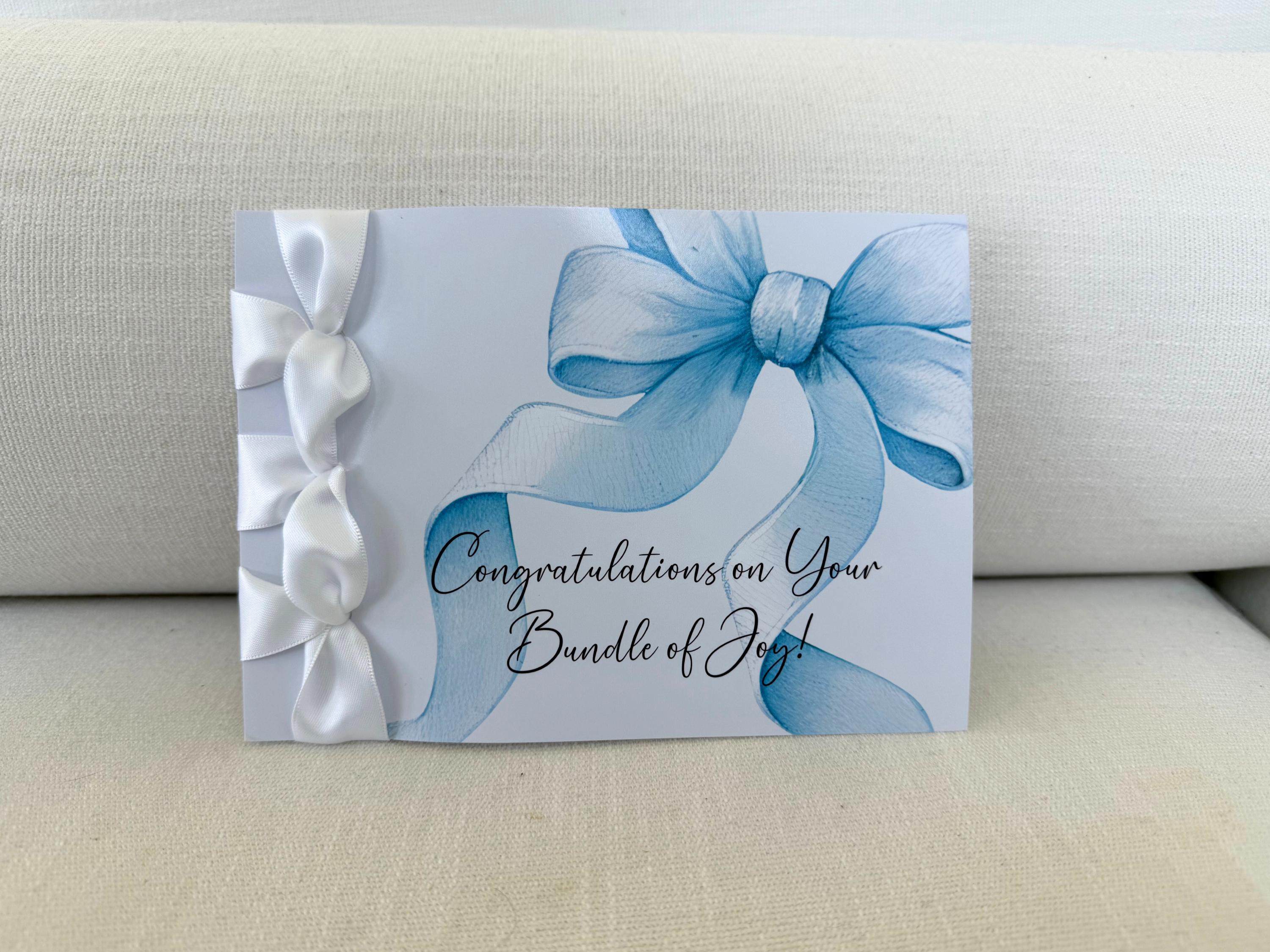 Handmade Congratulations Card, Satin Ribbon, New Baby Gift