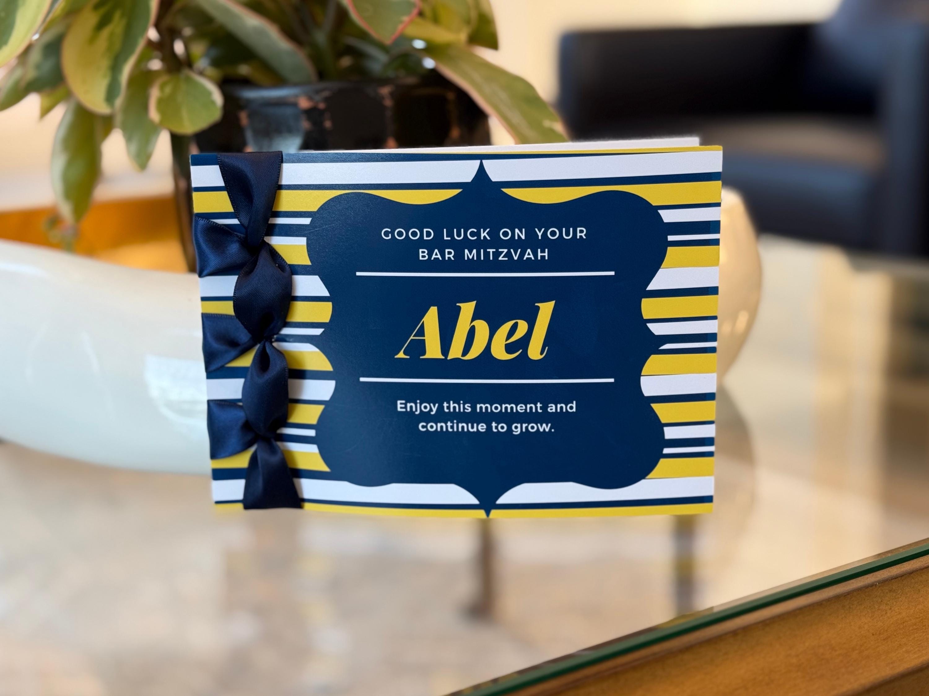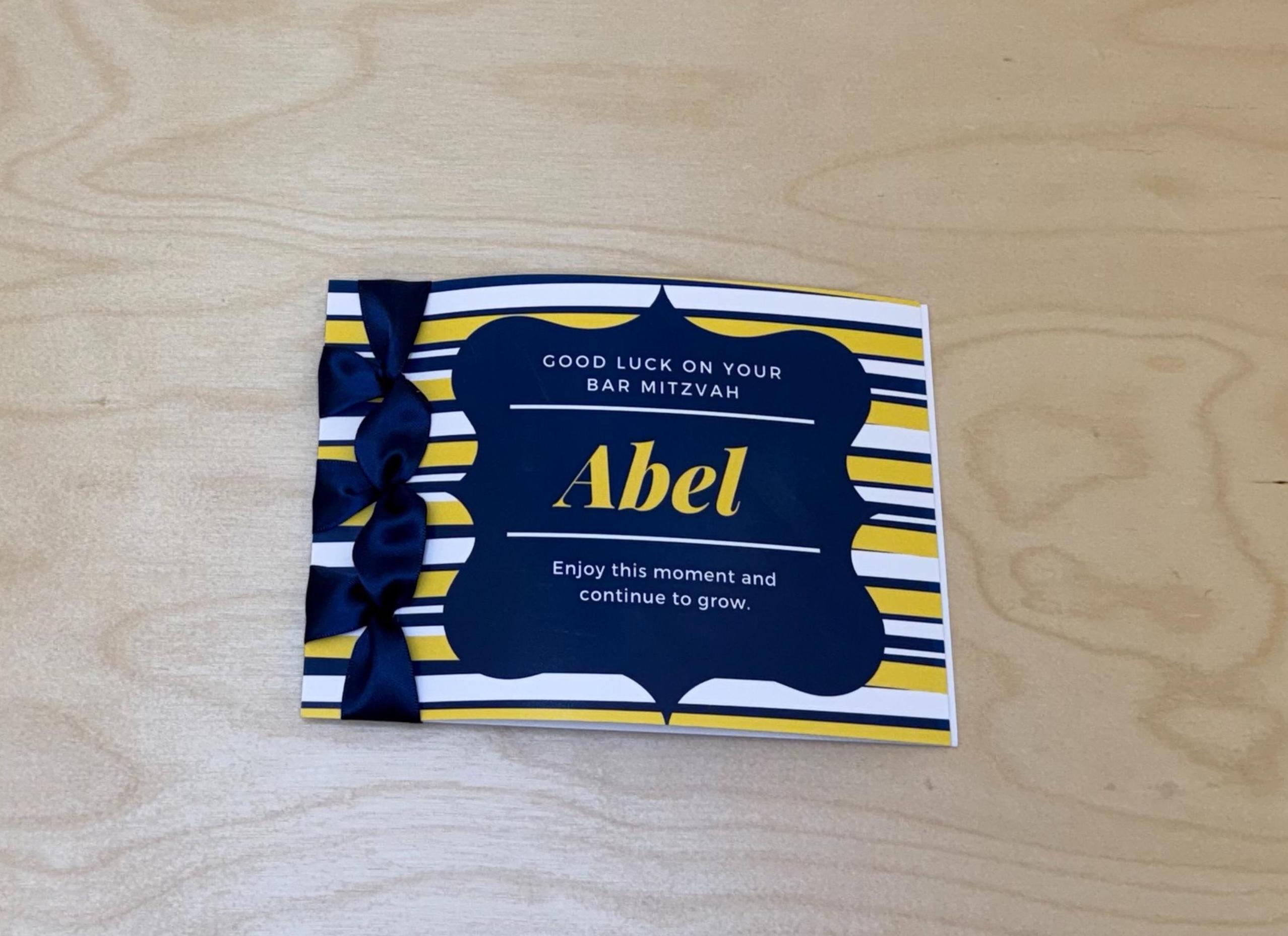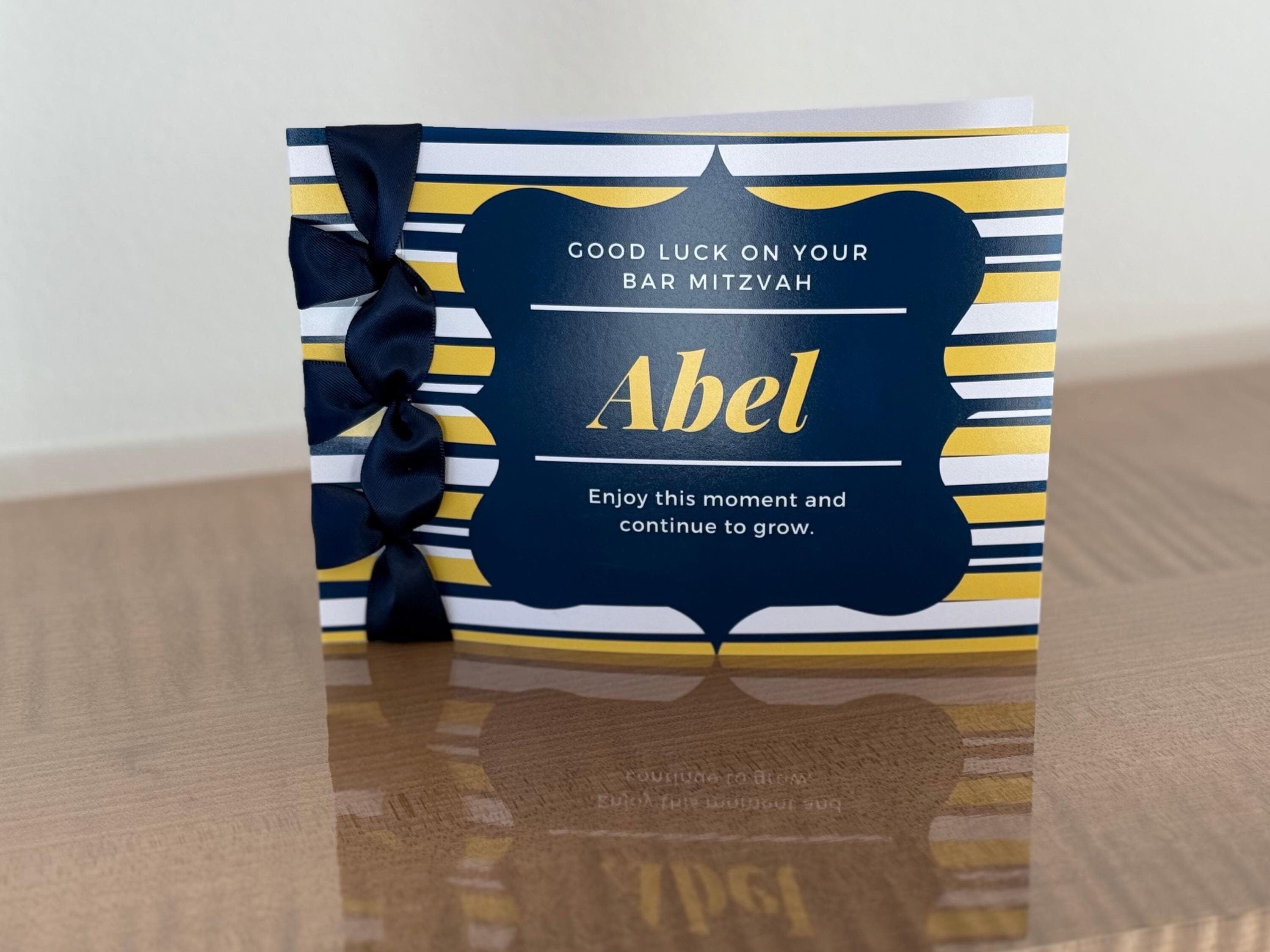 Custom Bar Mitzvah Card, Satin Ribbon, Personalized Name