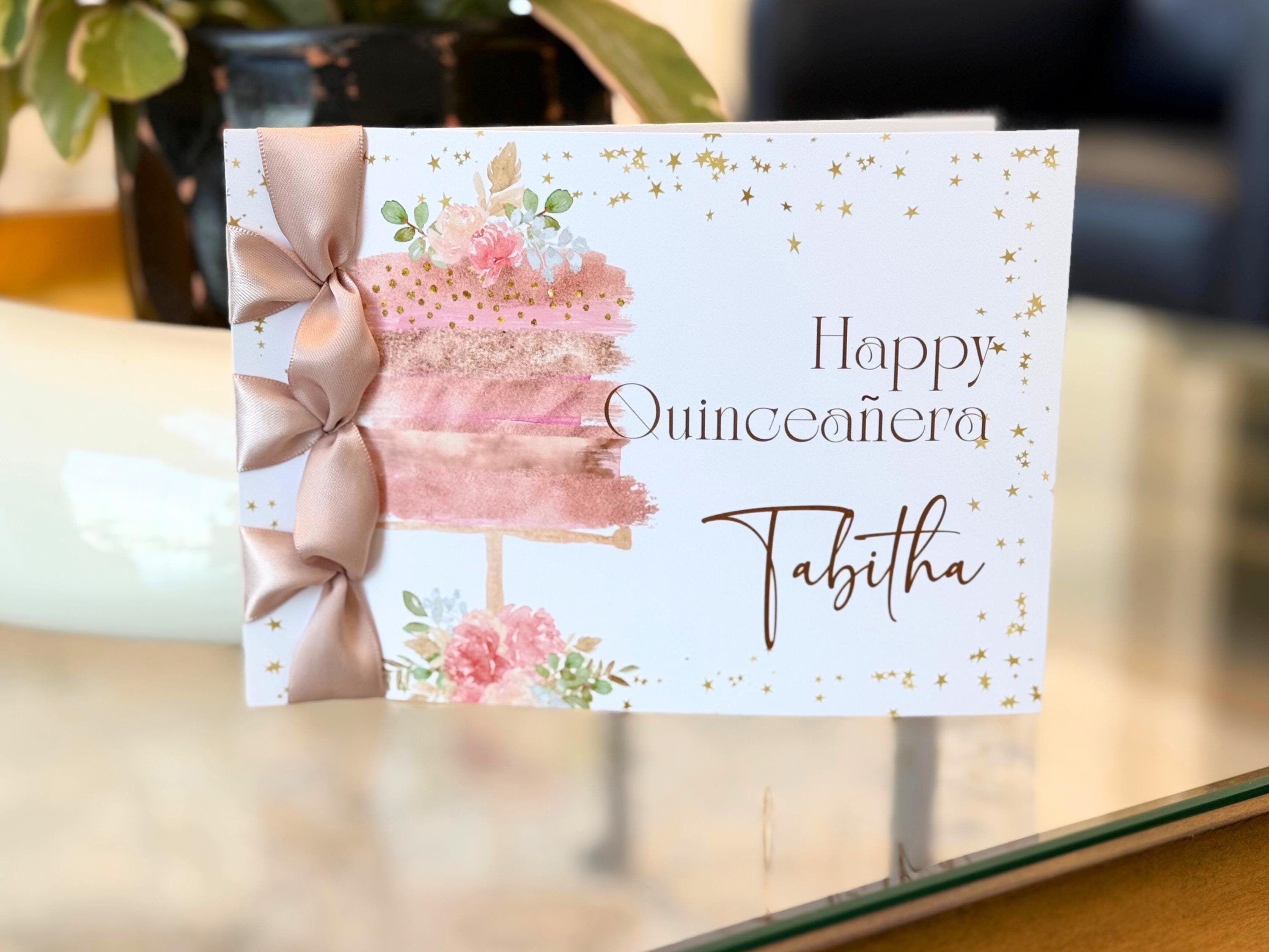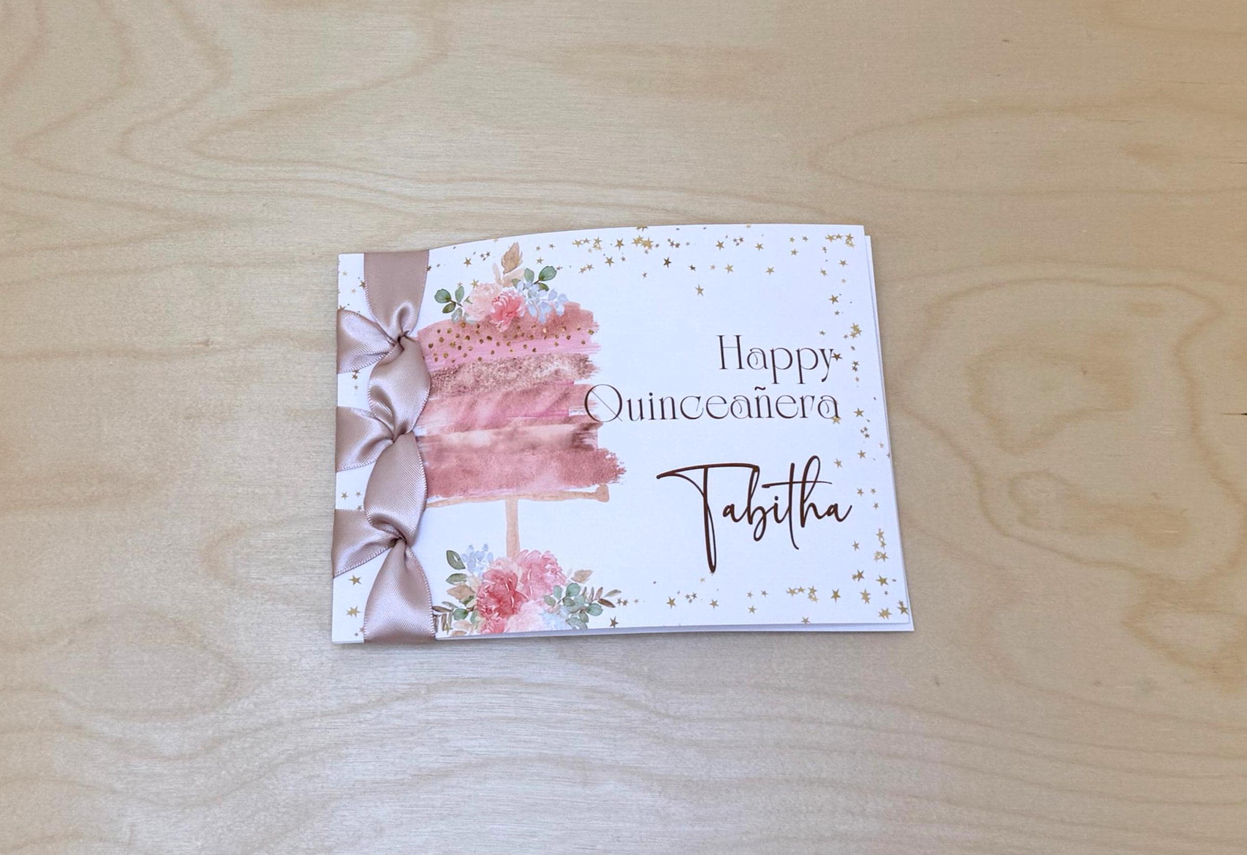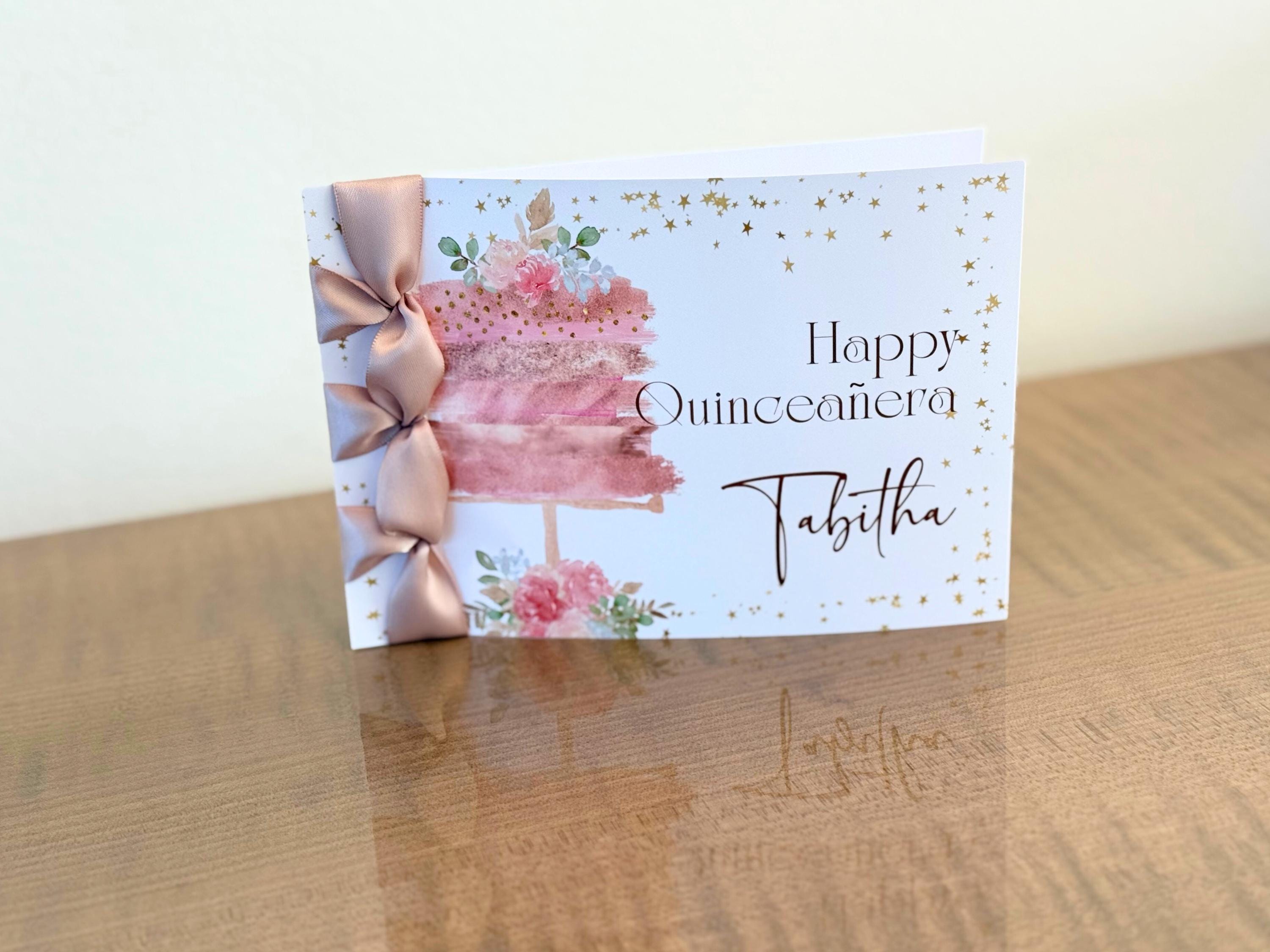 Custom Quinceañera Card, Satin Ribbon, Personalized Handmade Card