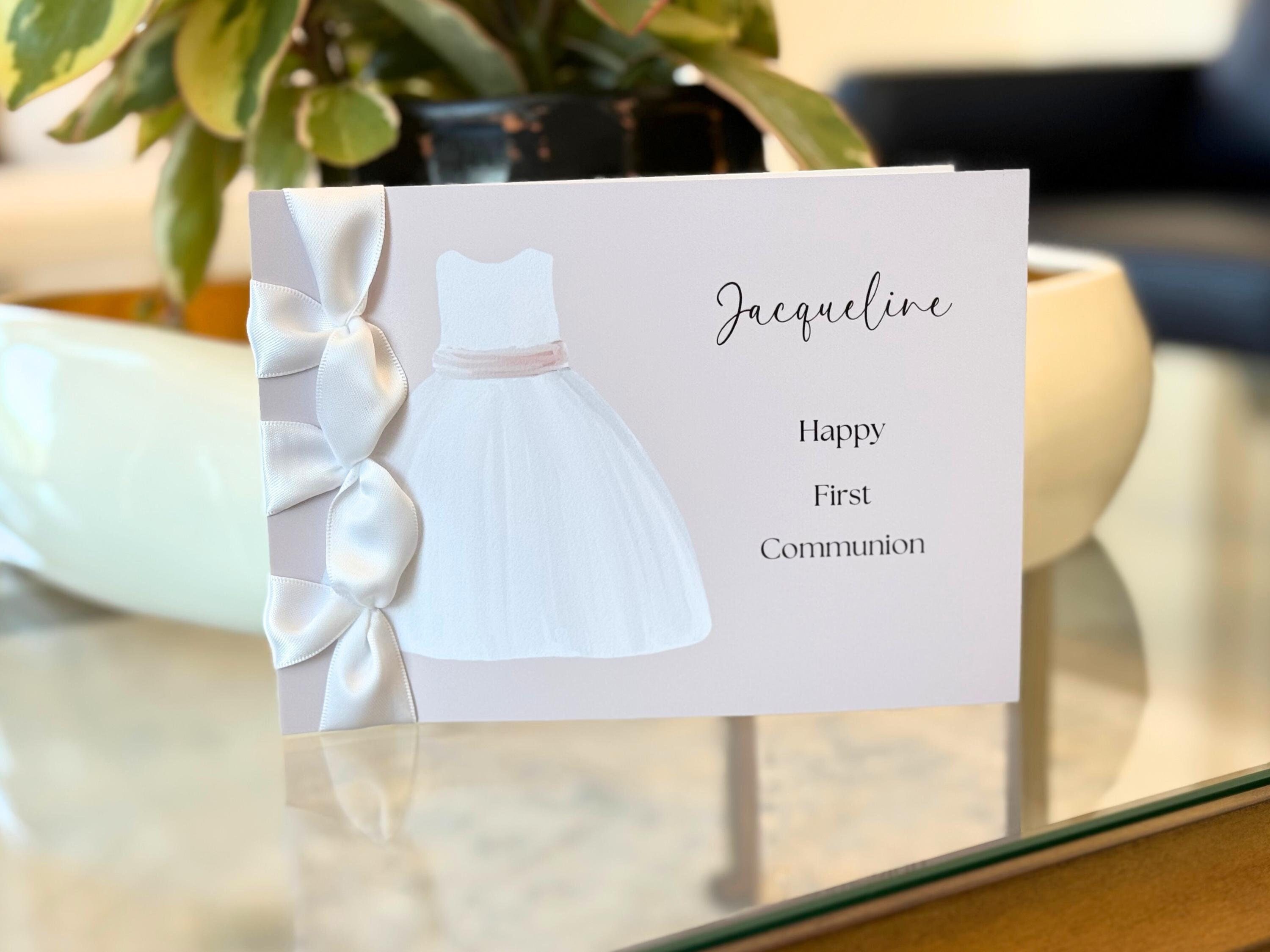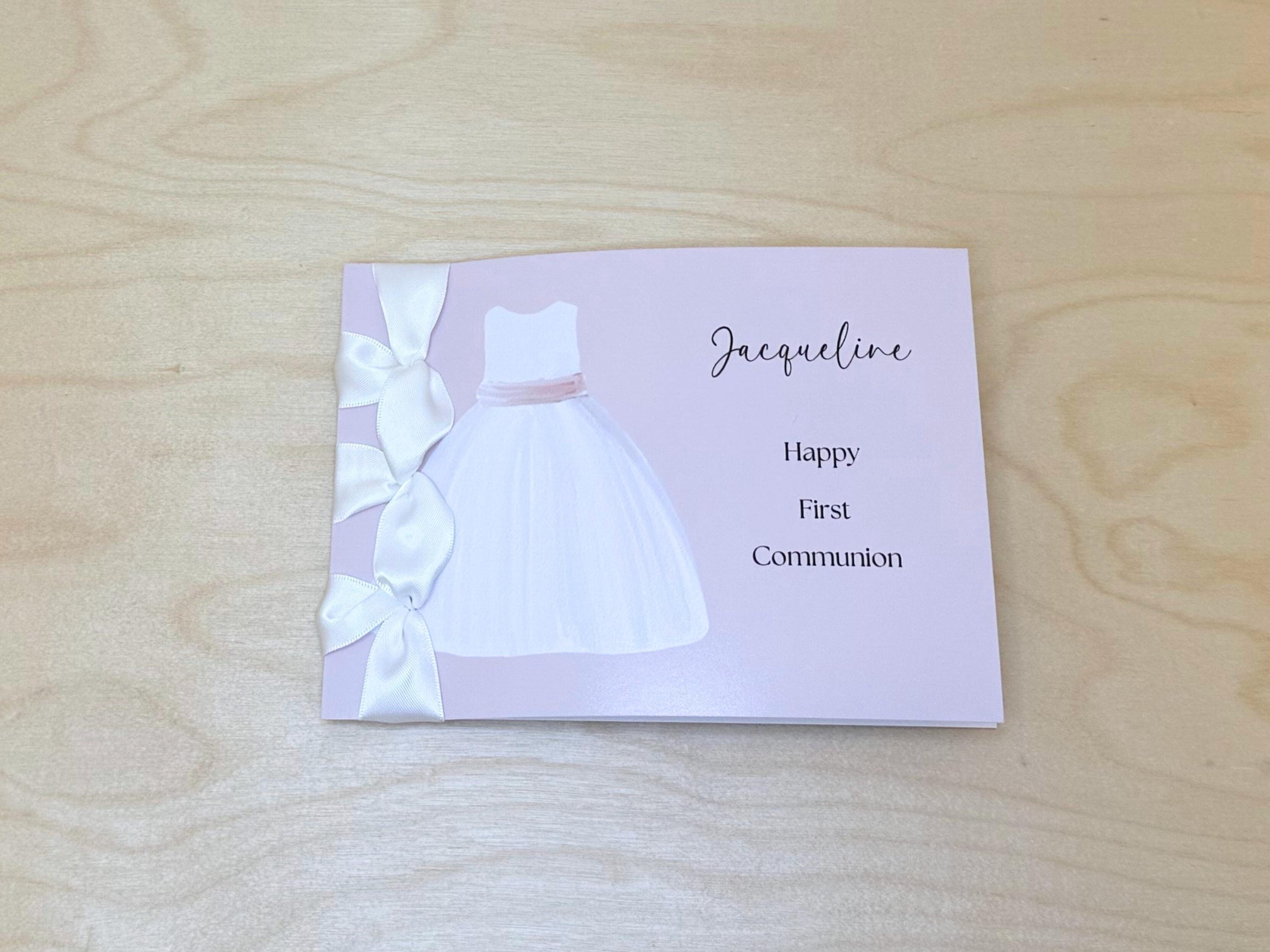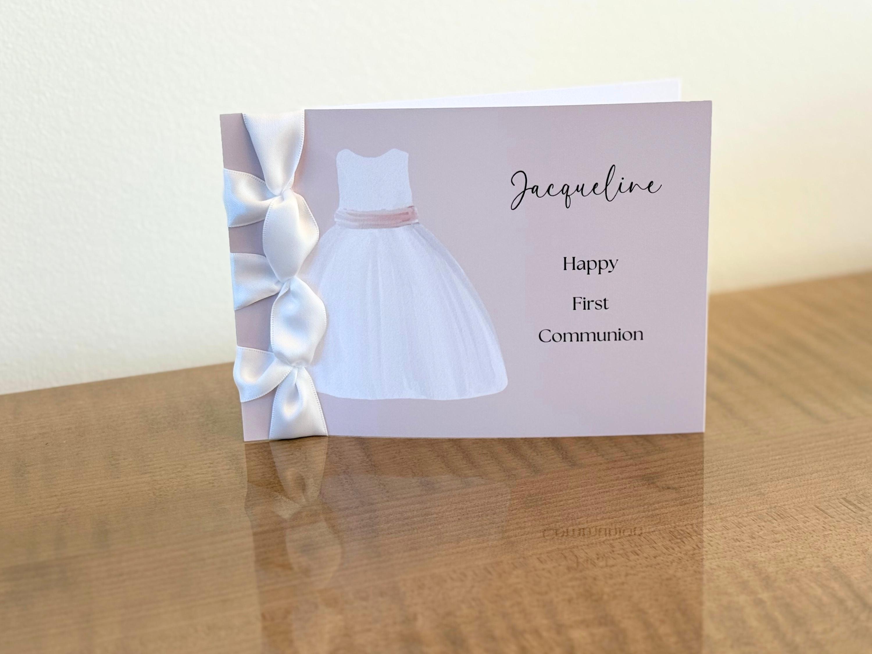 Personalized First Communion Card for Girl | Handmade Keepsake with Satin Ribbon