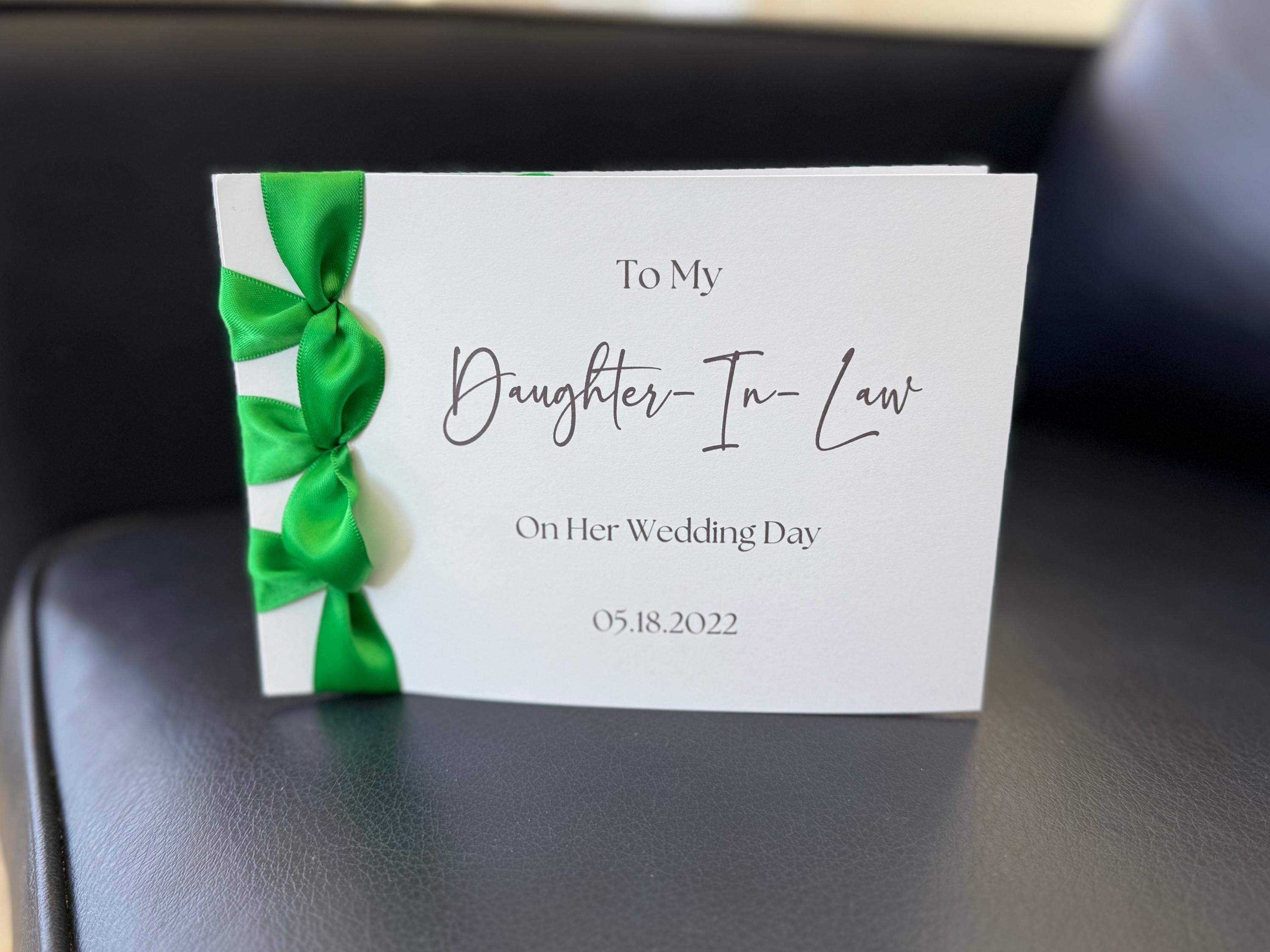 This Personalized “To My Daughter-in-Law on Her Wedding Day” Card is a meaningful, handmade keepsake that captures the joy of this beautiful milestone.