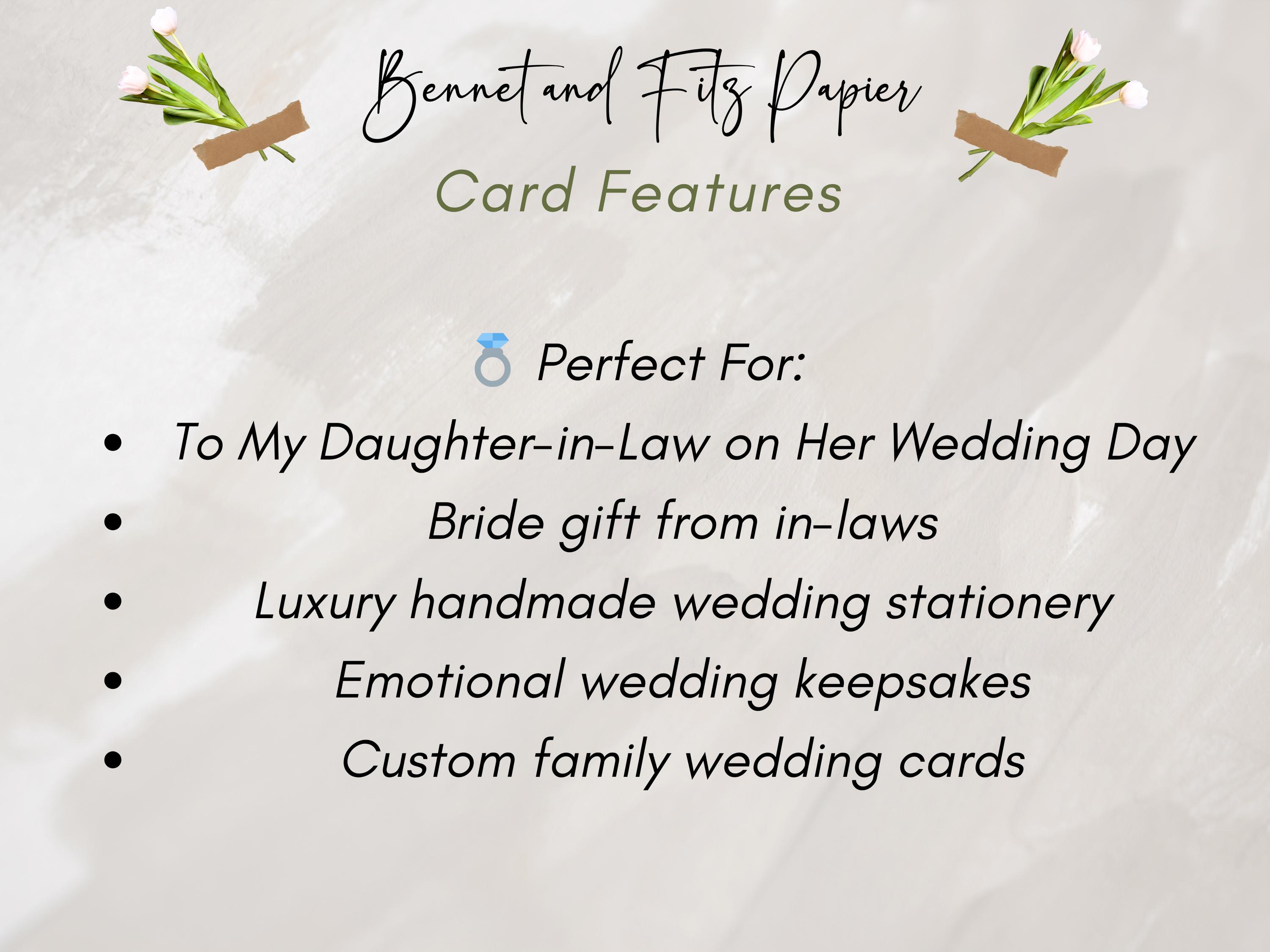 Celebrate her special day with this handmade “To My Daughter-in-Law on Her Wedding Day” card, crafted with Japanese binding and finished with timeless elegance — a keepsake she’ll treasure forever.