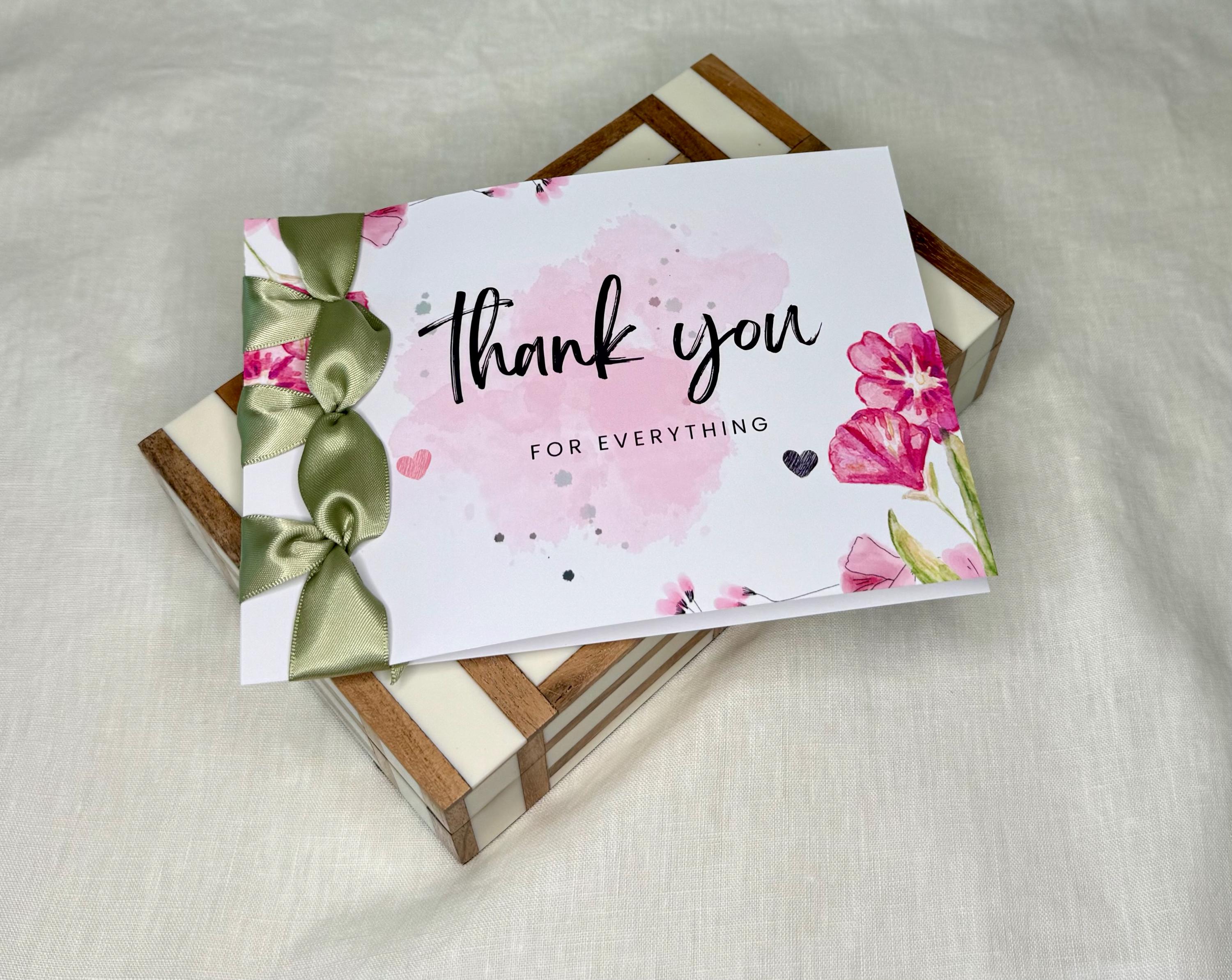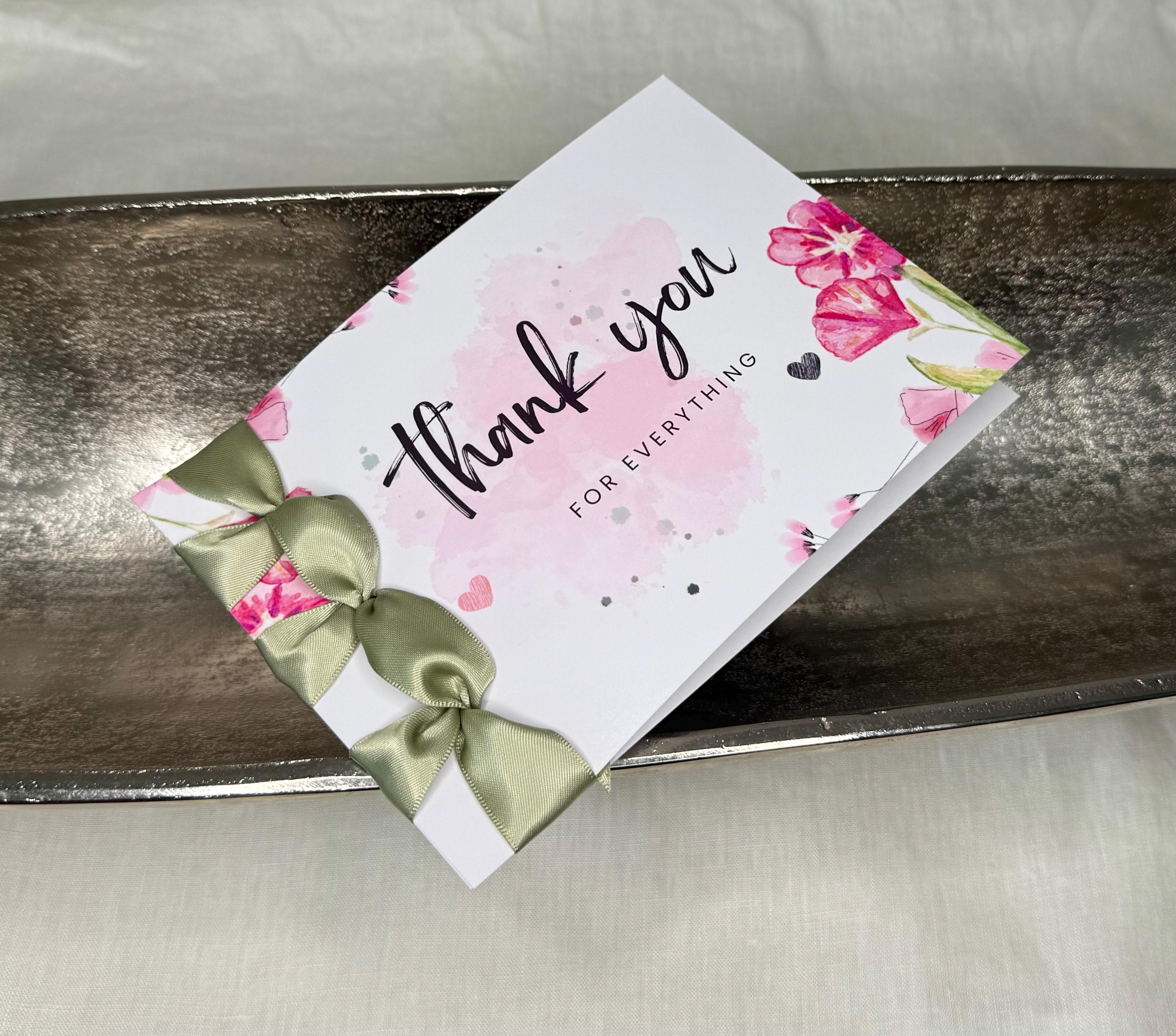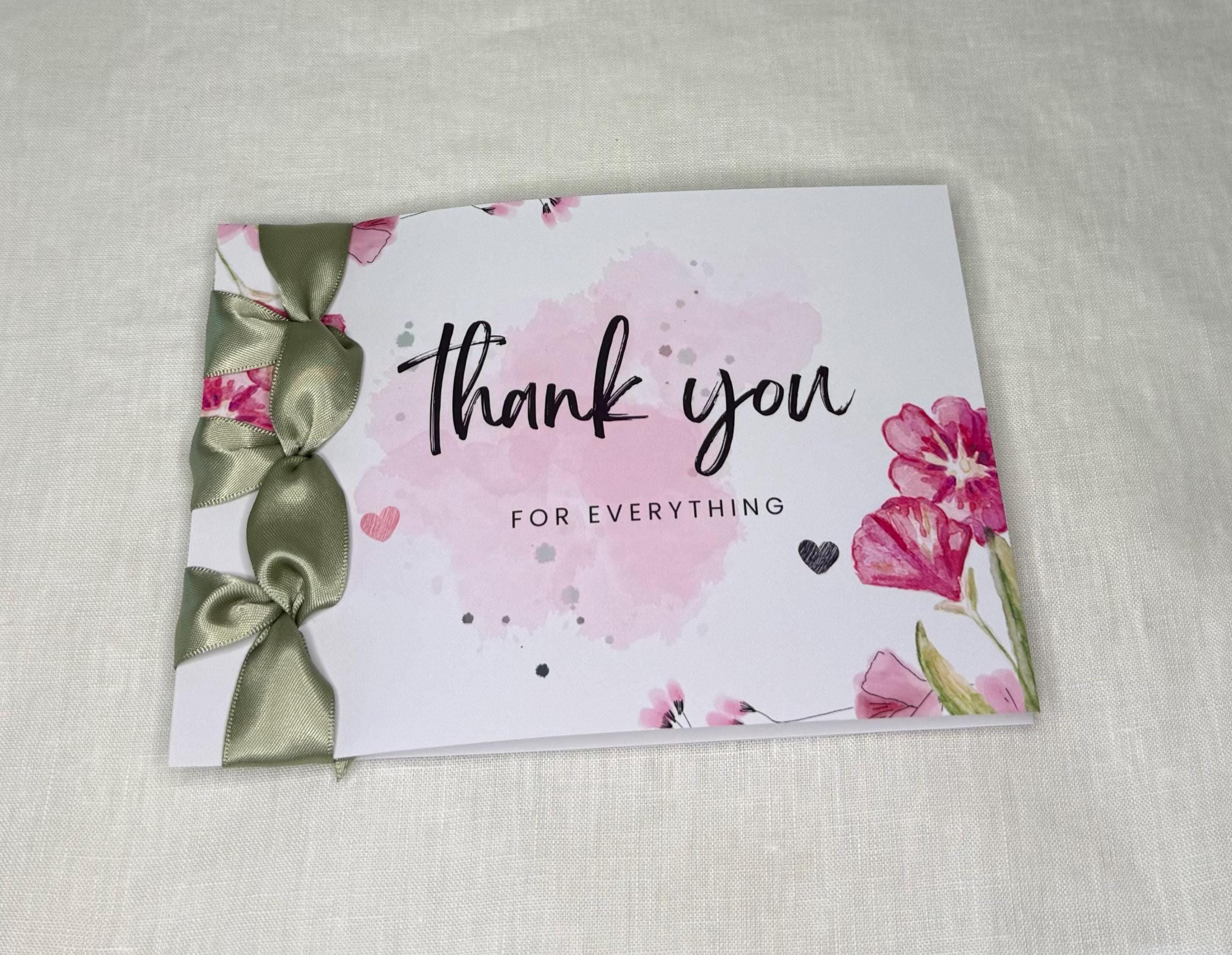 Your loved ones will love this custom card. The card is blank on the inside for your special message. It will become favored keepsakes for their important day! It is made from quality materials and crafted with meticulous care. Japanese Binding makes the ribbon on the card very elegant.