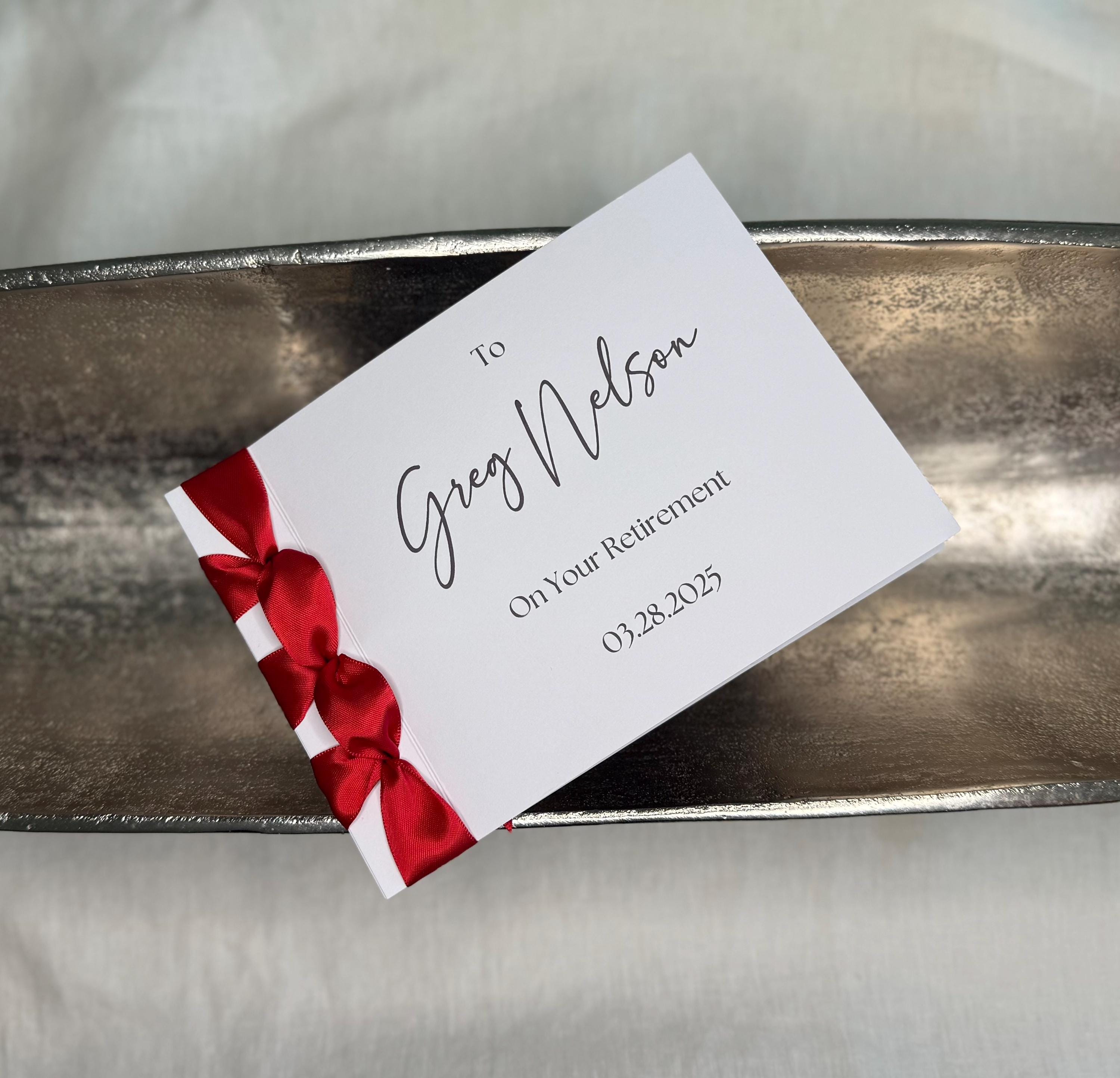 Handmade Retirement Congratulations Card: Satin Ribbon & Japanese Binding