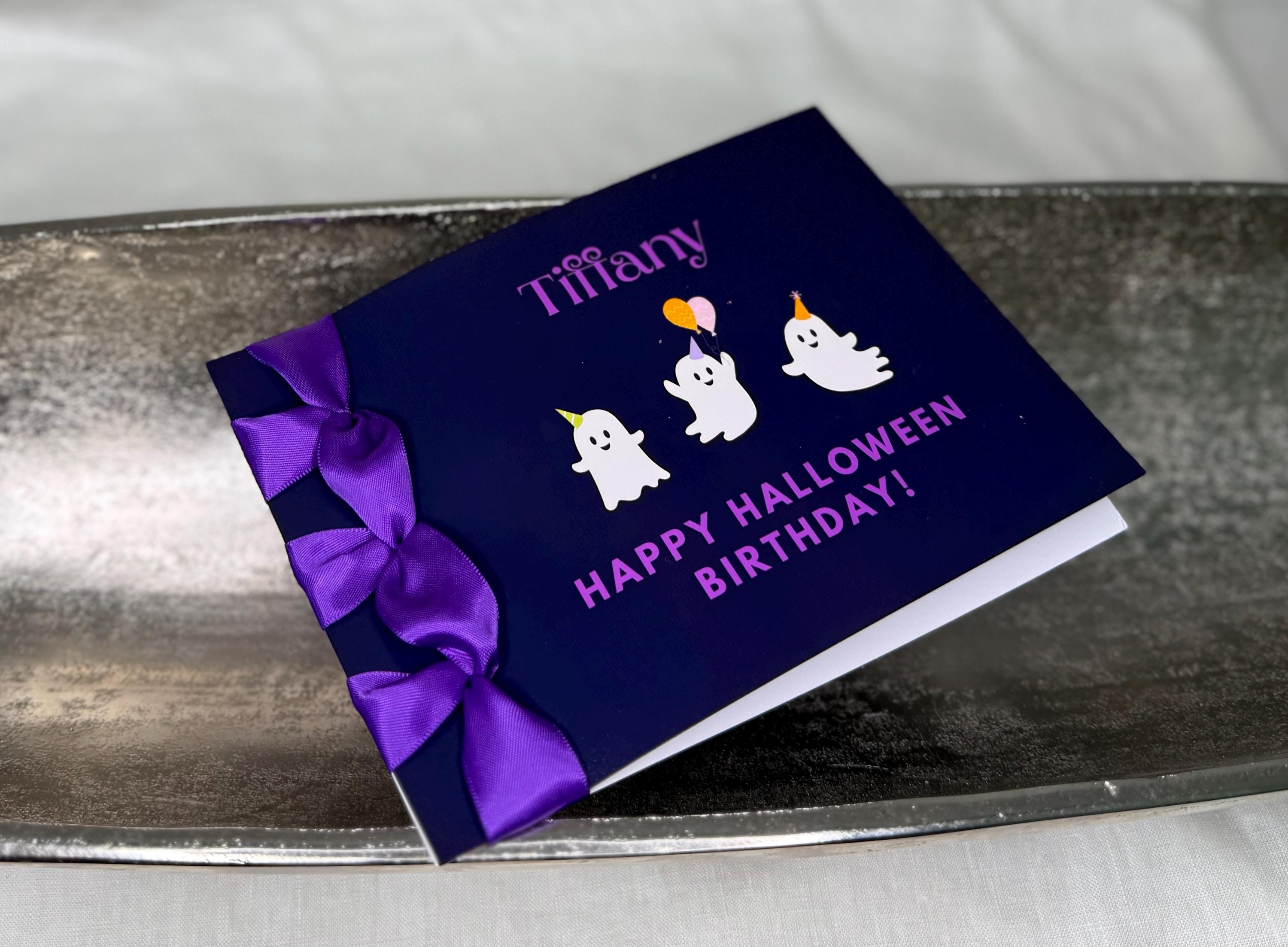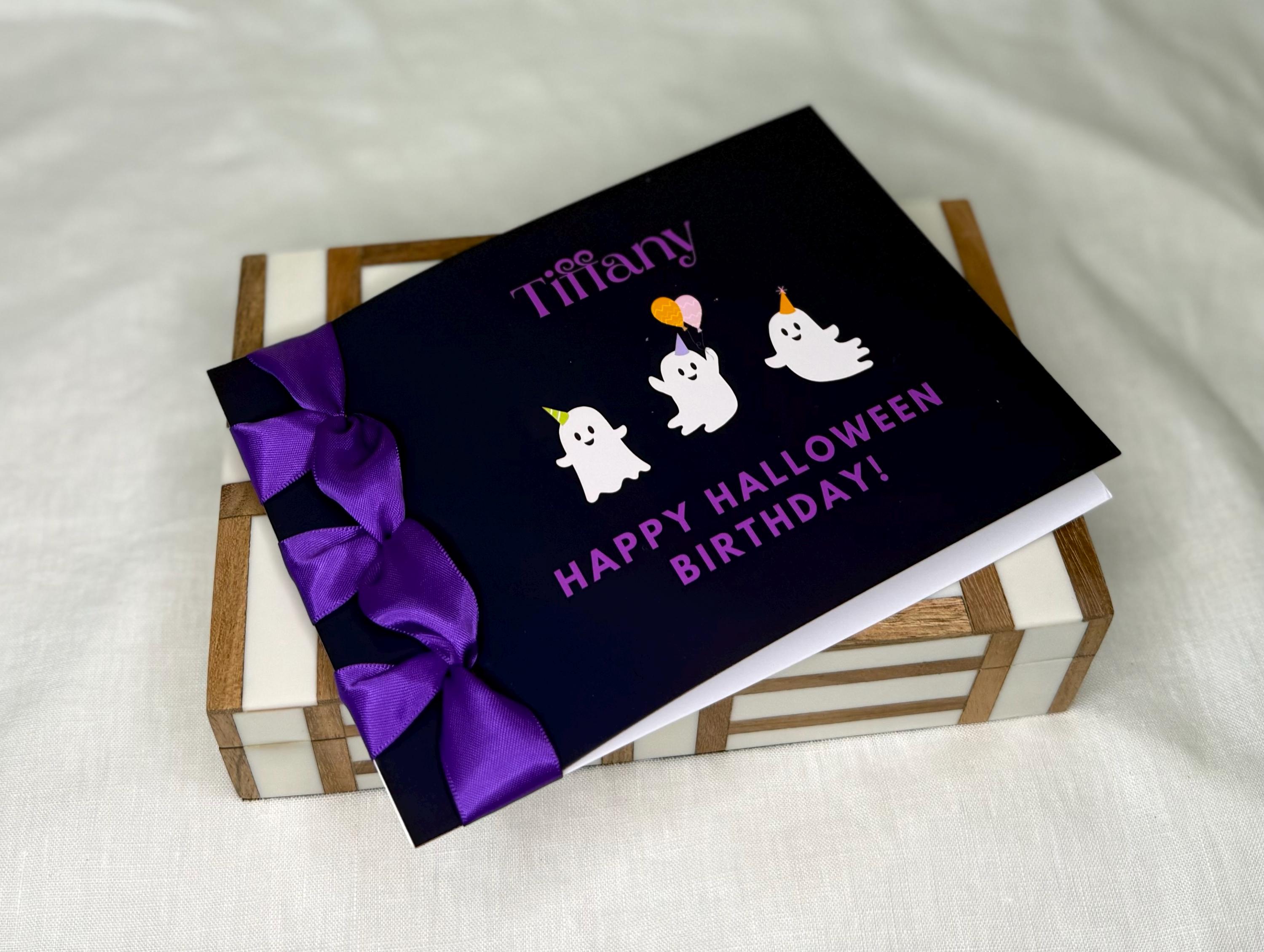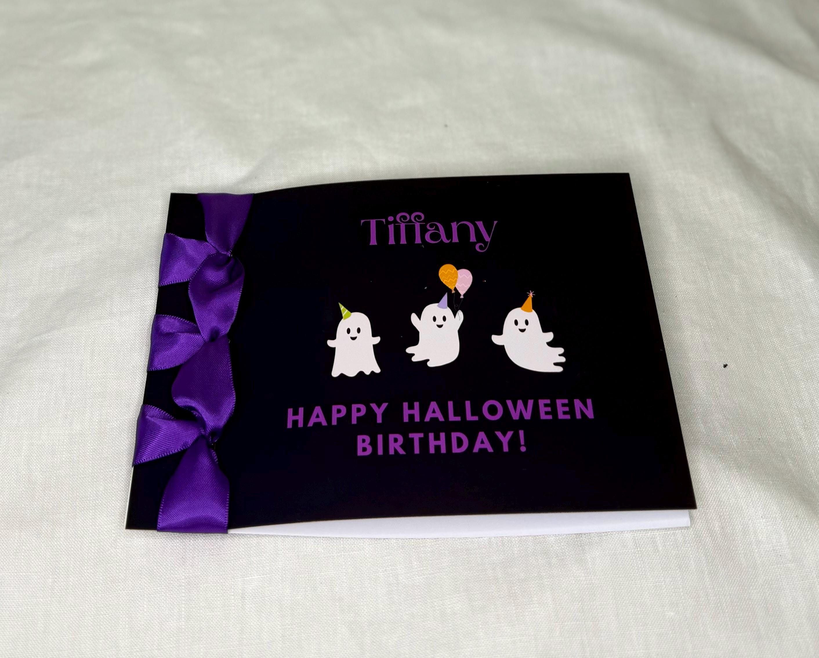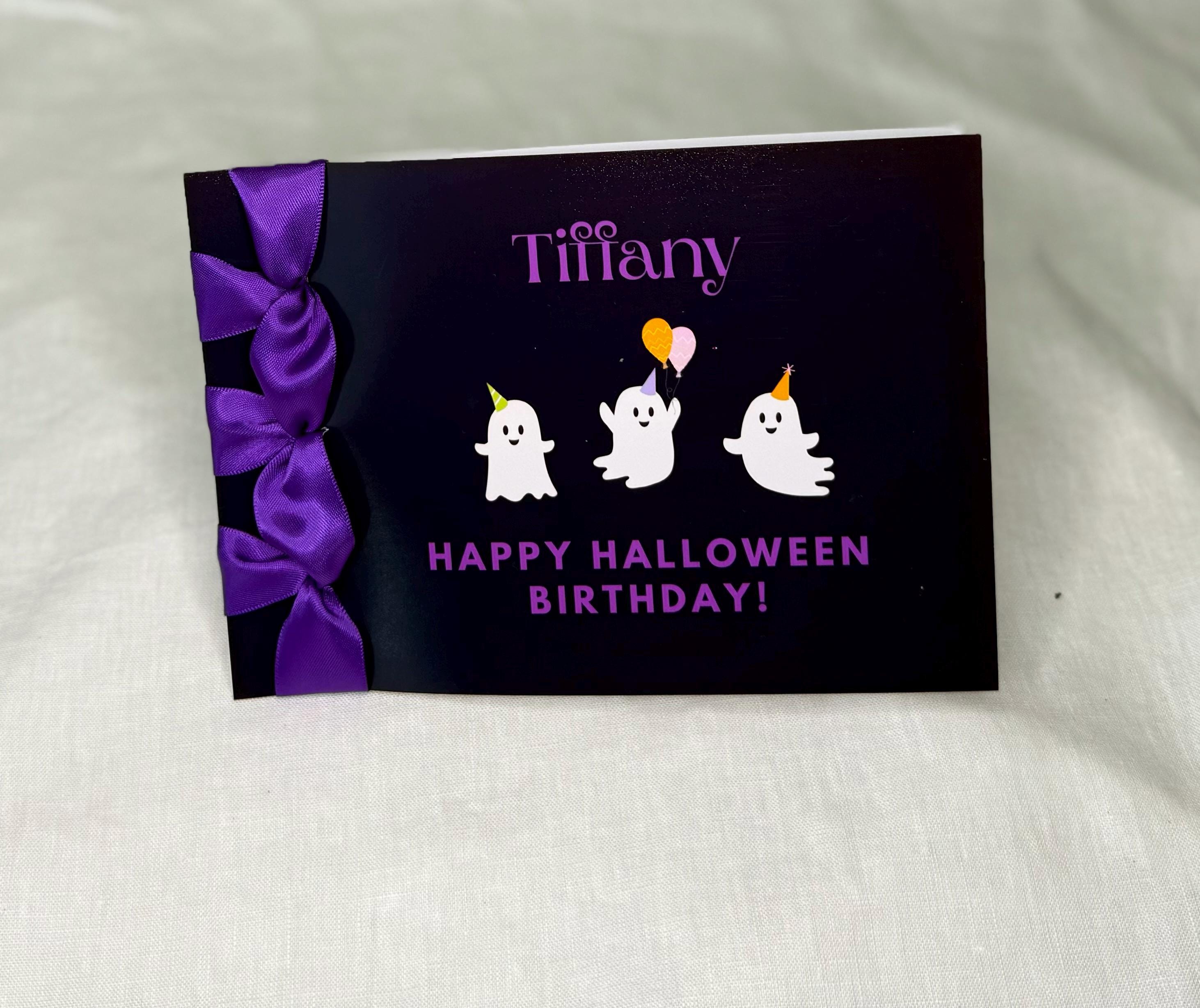 Custom Handmade Birthday Card: Halloween Birthday, Satin Ribbon, Japanese Binding