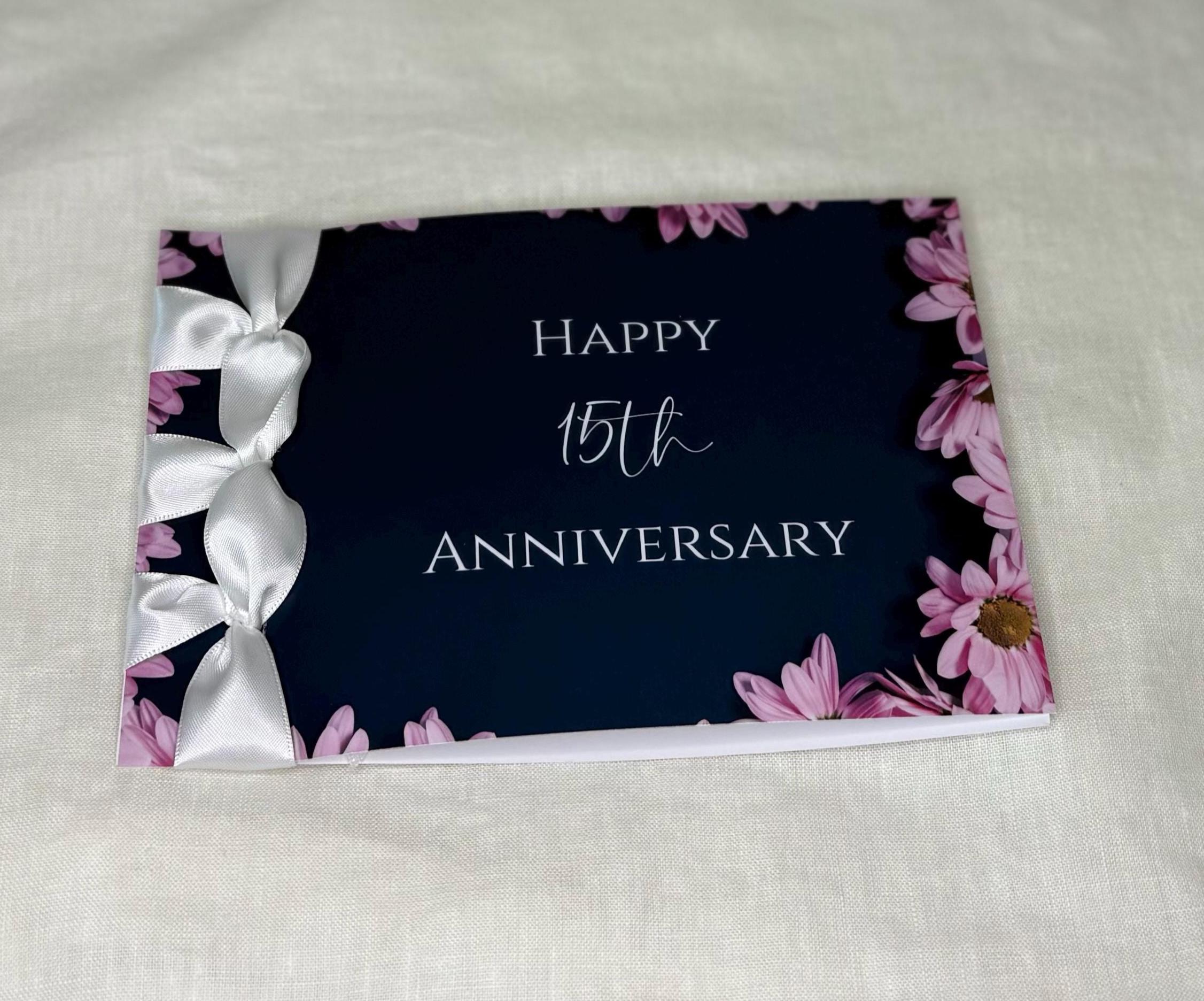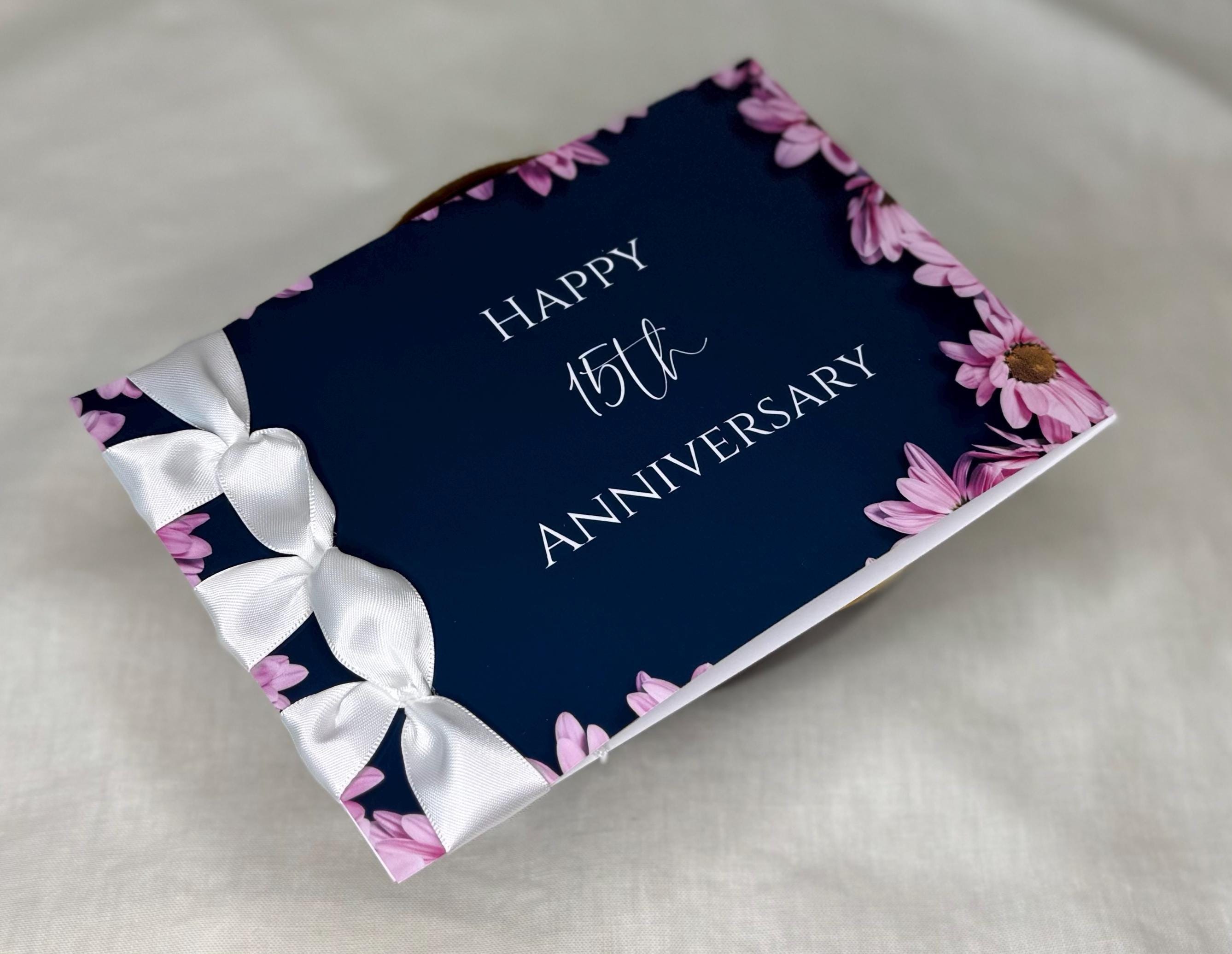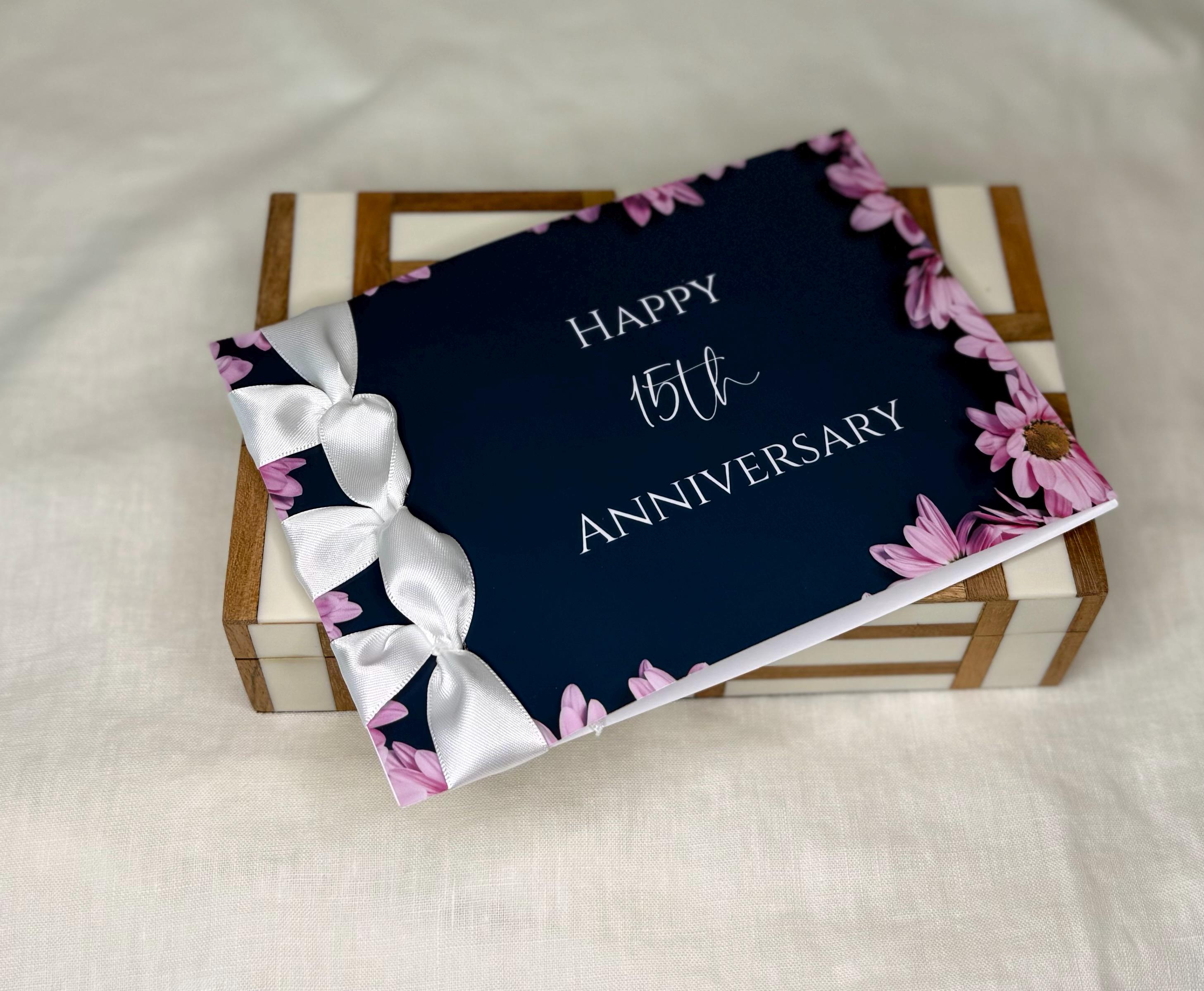 Your husband will love this custom card. The card is blank on the inside for your special message. It will become favored keepsakes of your Anniversary. It is made from quality materials and crafted with meticulous care. Japanese Binding makes the ribbon on the card very elegant.