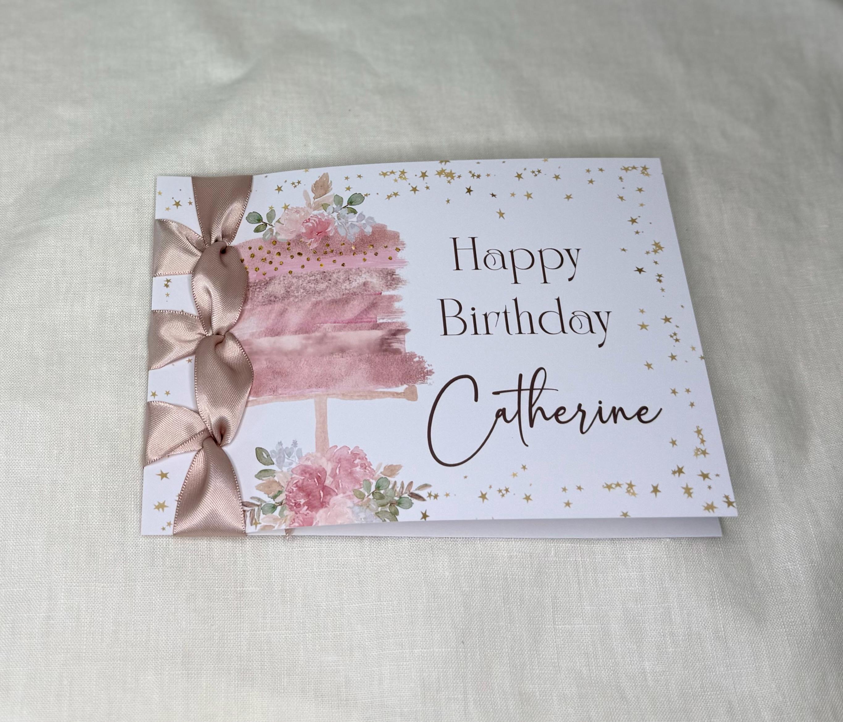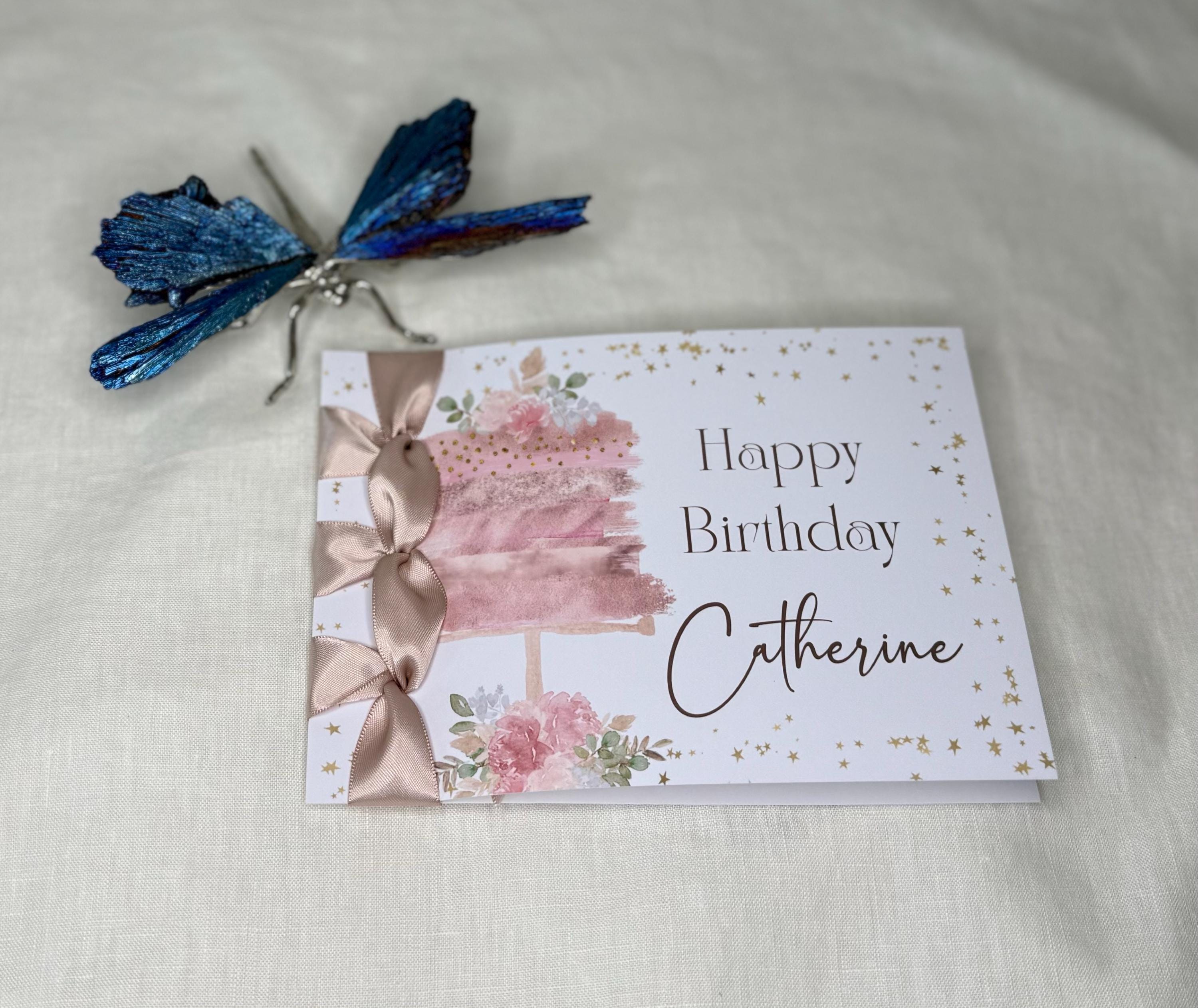 Handmade Birthday Card with Satin Ribbon: Personalized Keepsake