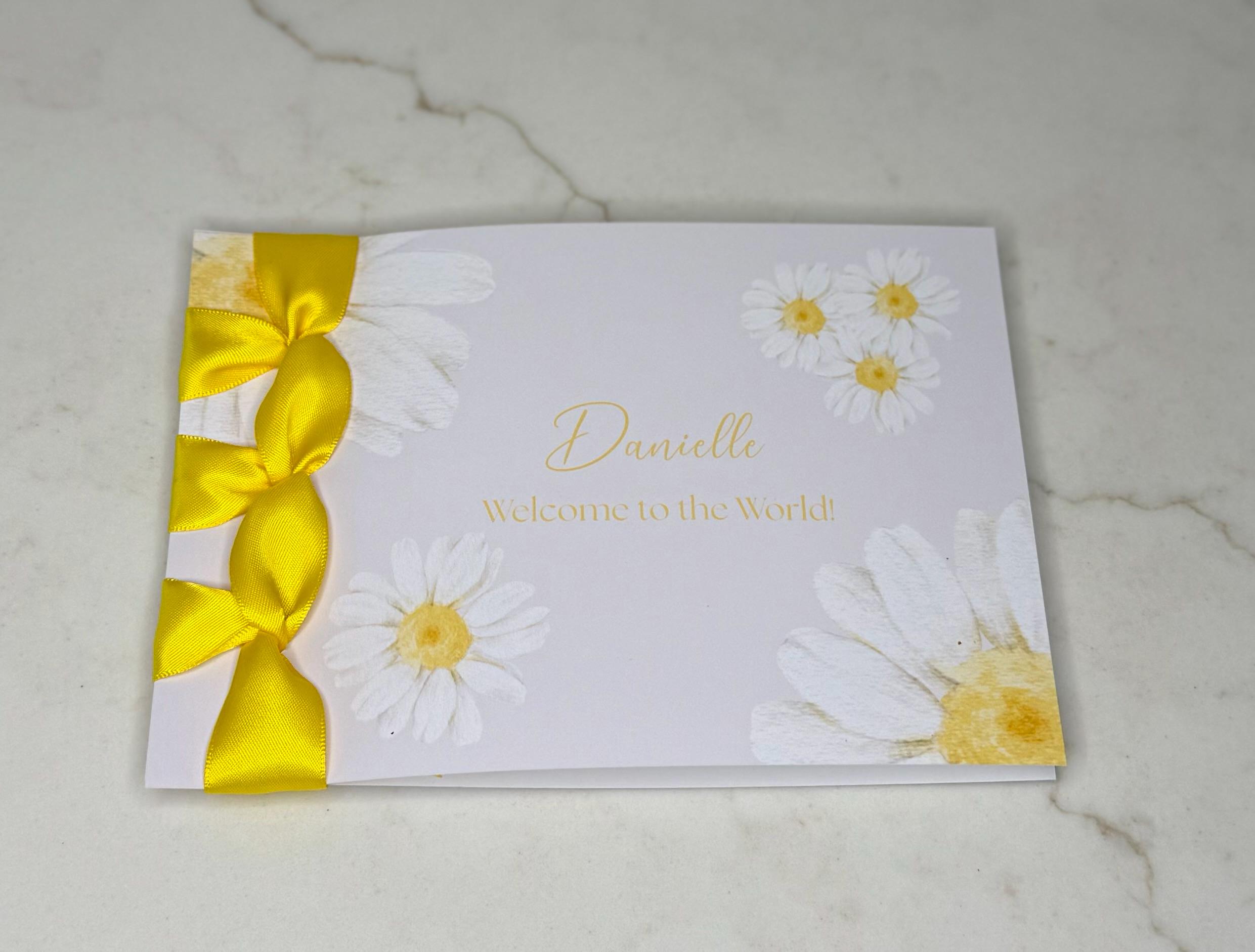 Your loved ones will love this custom card. The card is blank on the inside for your special message. It will become favored keepsakes for their important day! It is made from quality materials and crafted with meticulous care. Japanese Binding makes the ribbon on the card very elegant.