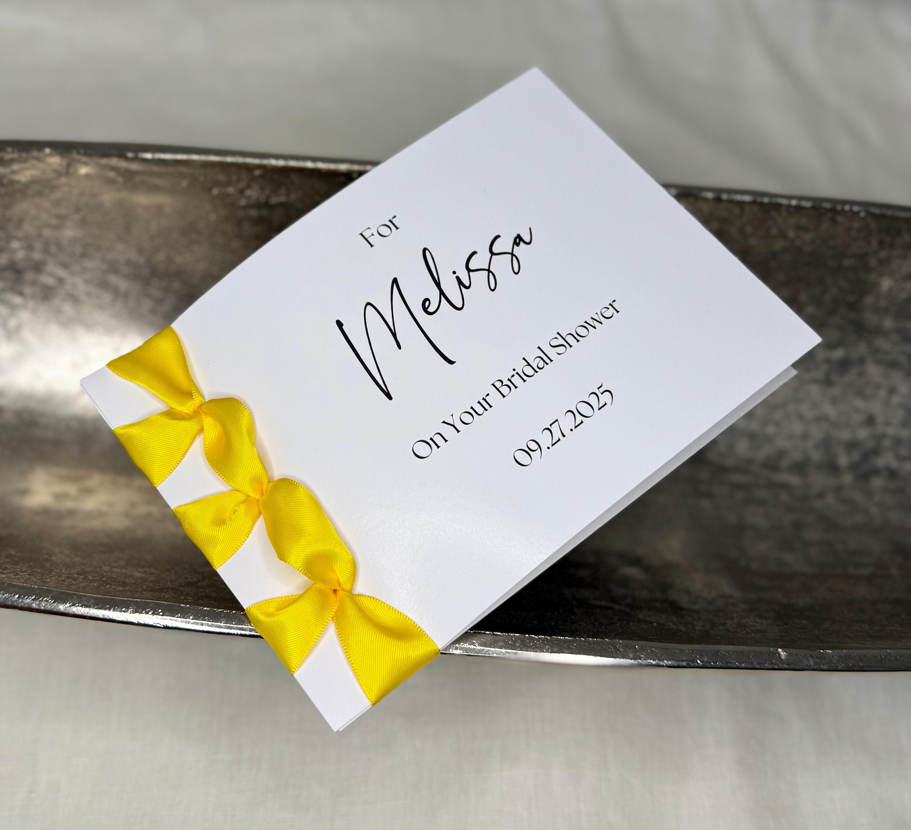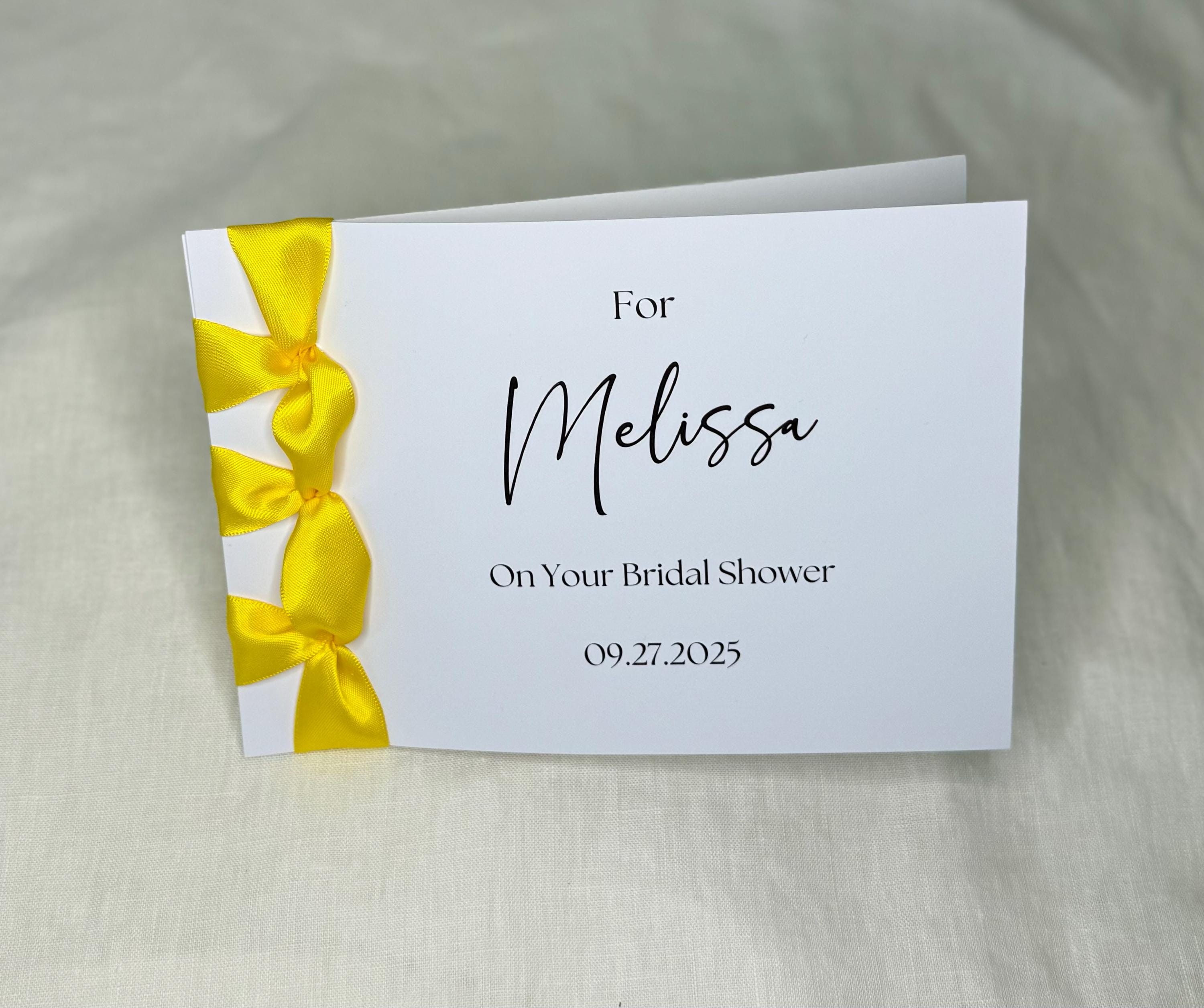 Handmade Bridal Shower Card: Elegant Satin Ribbon, Personalized