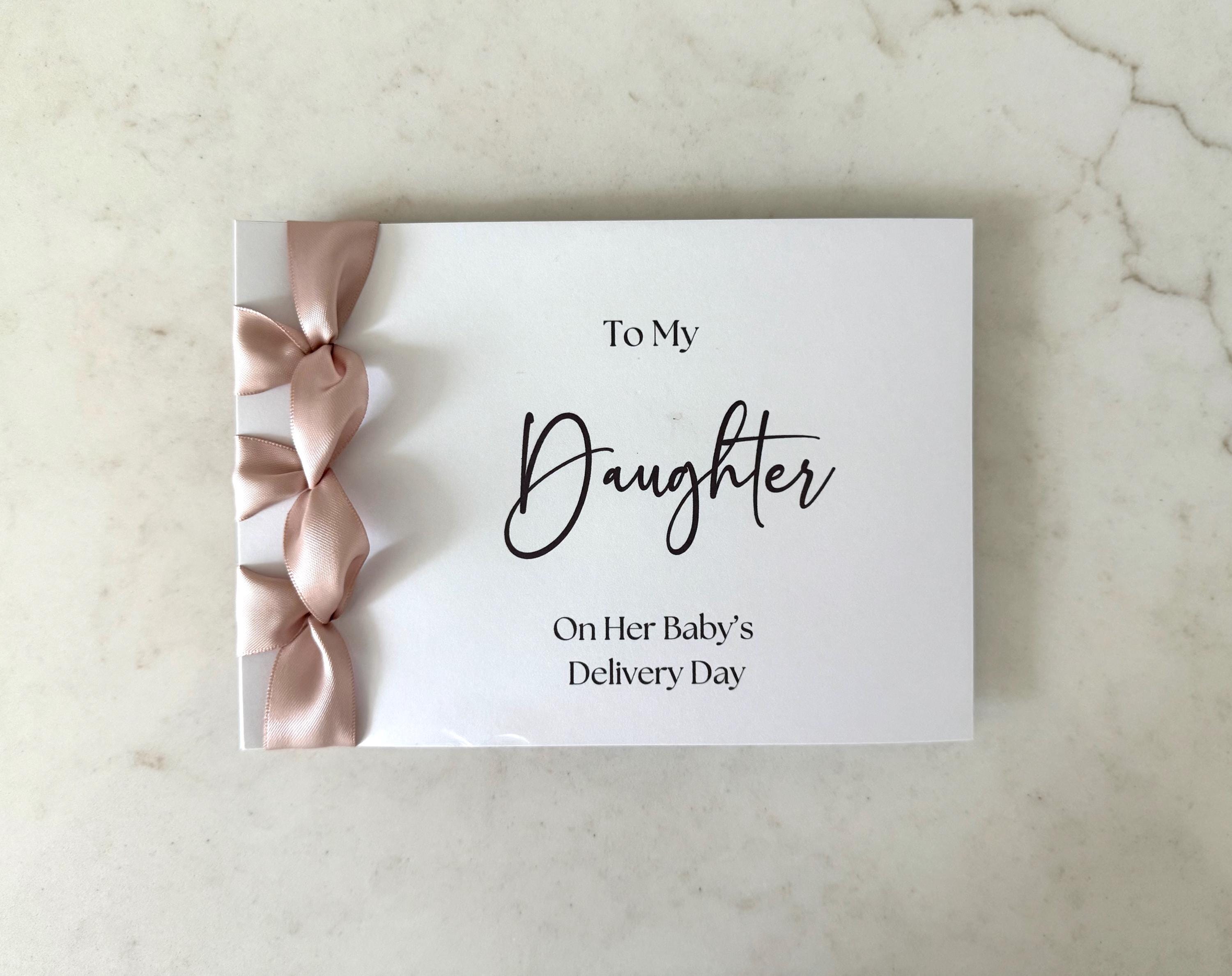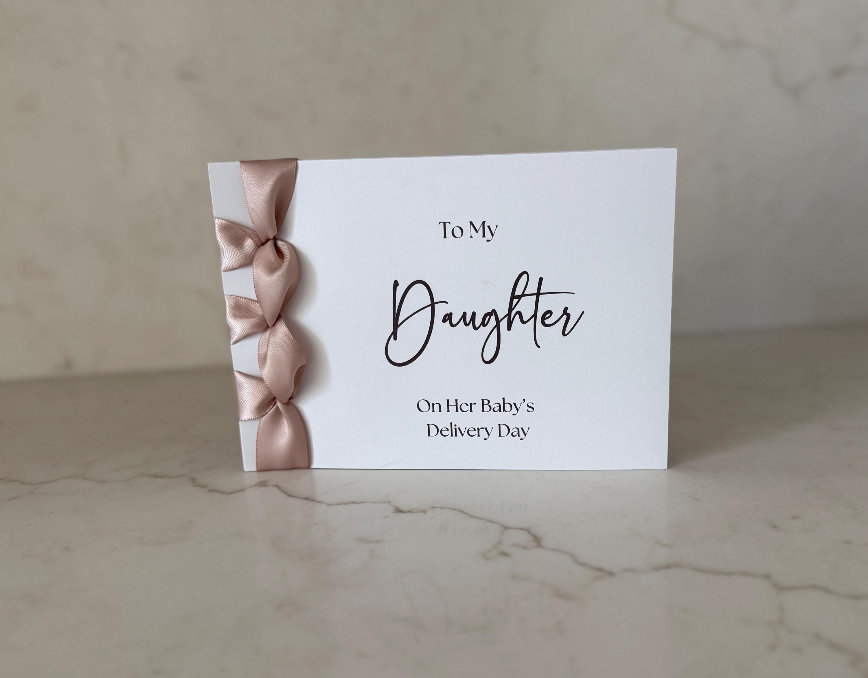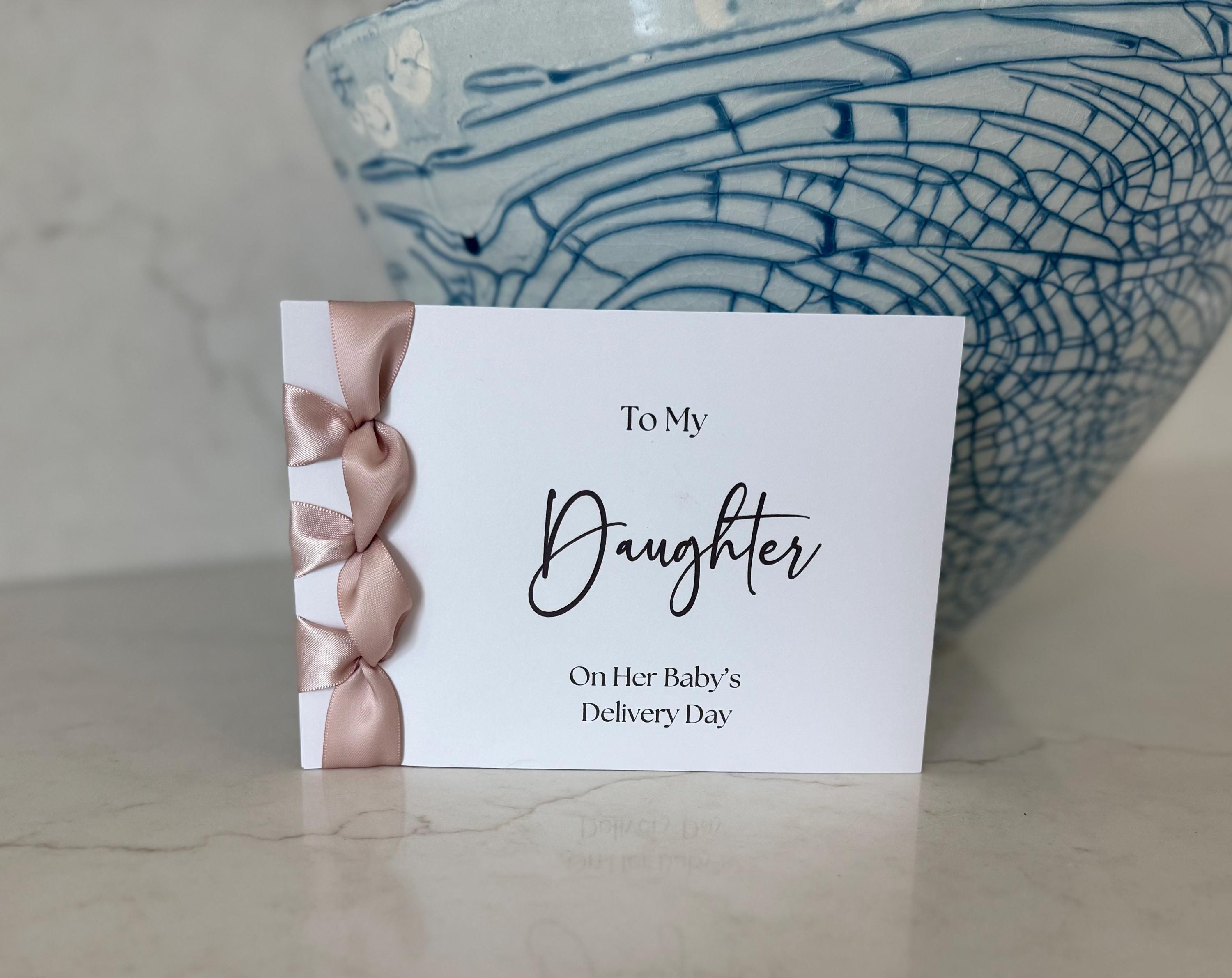 Handmade Congratulations Card - Daughter's New Baby - Satin Ribbon, Delivery Day Card