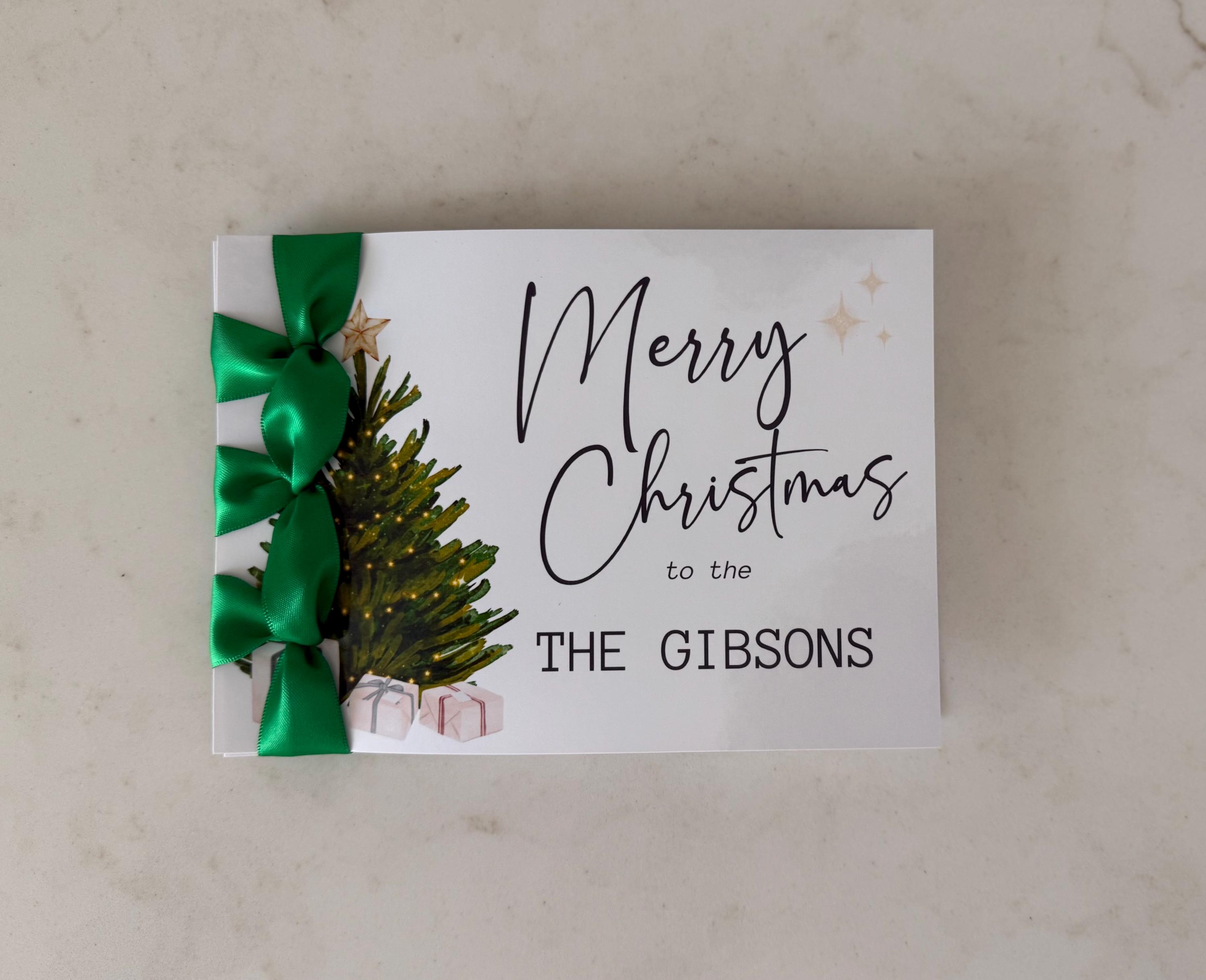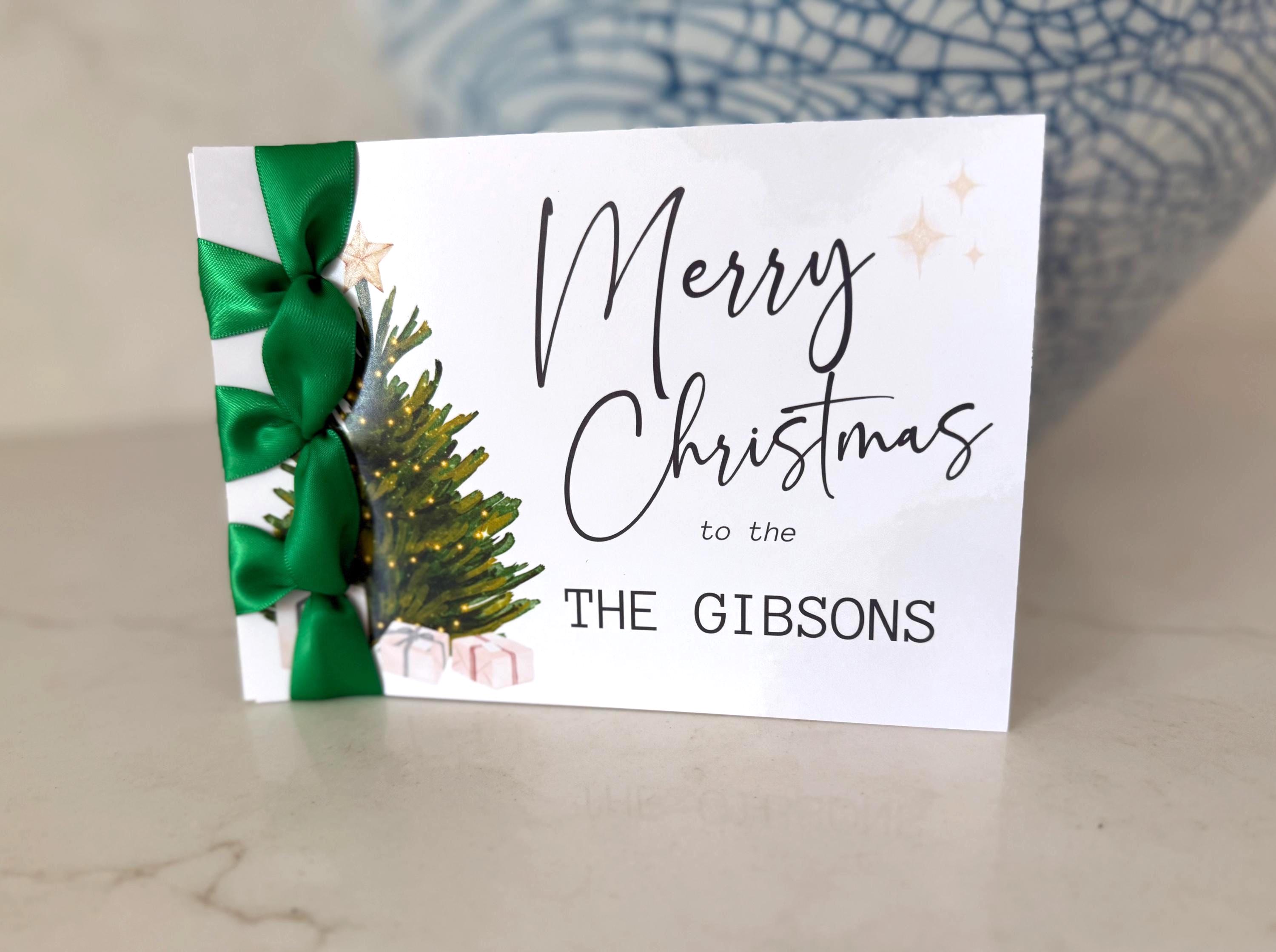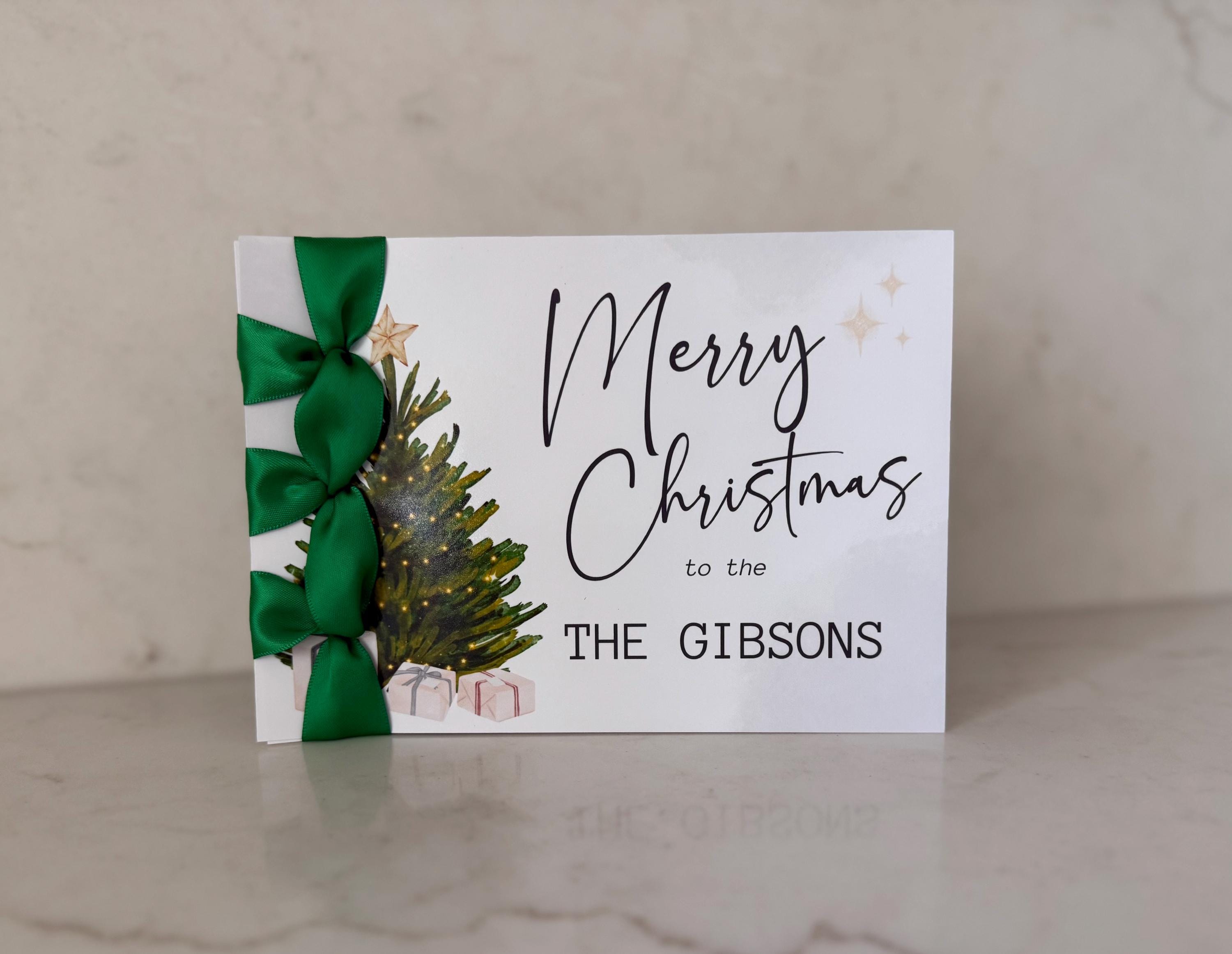 Custom Handmade Christmas Card: Satin Ribbon, Personalized