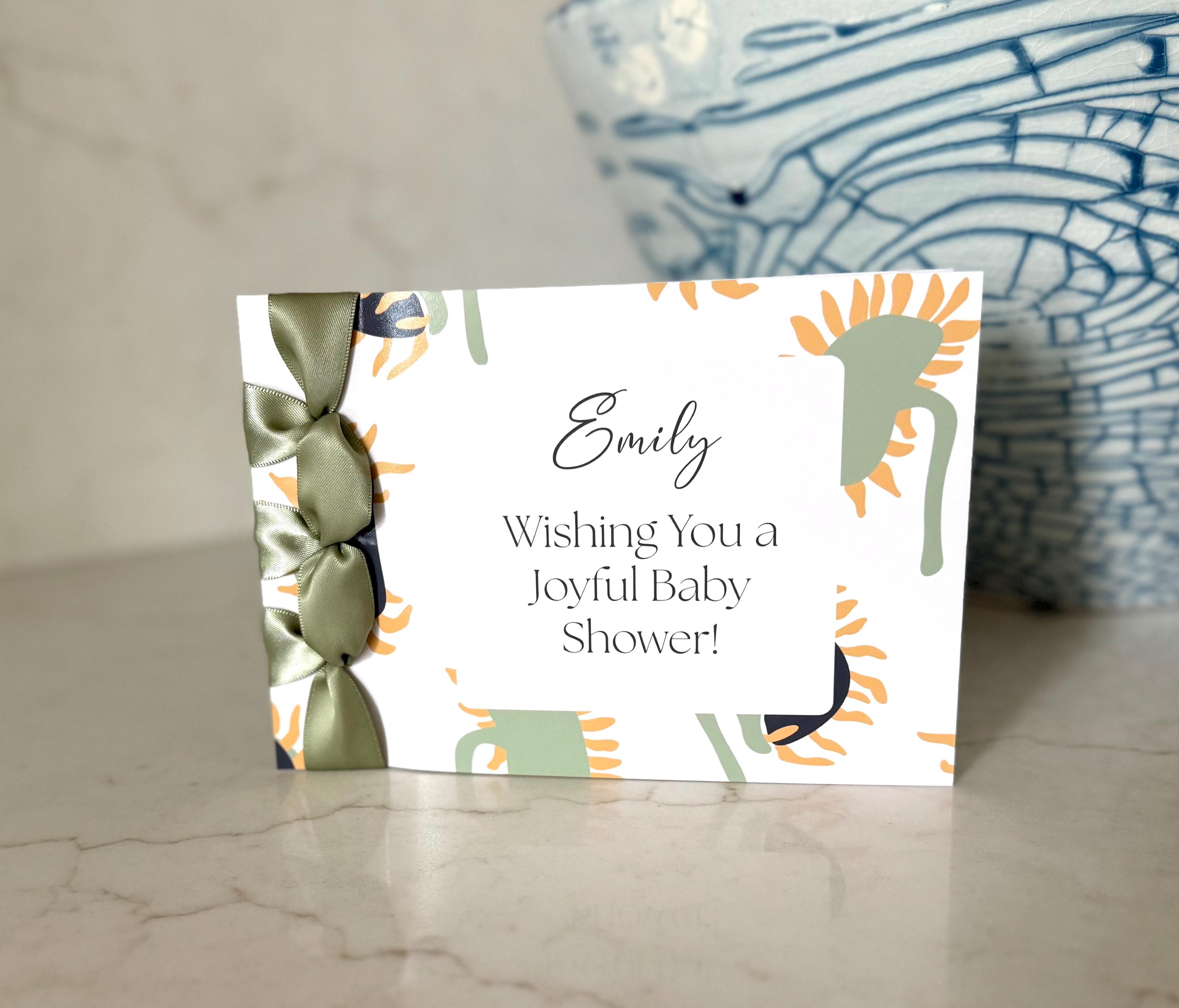 Handmade Congratulations Card: Satin Ribbon, Personalized Baby Shower