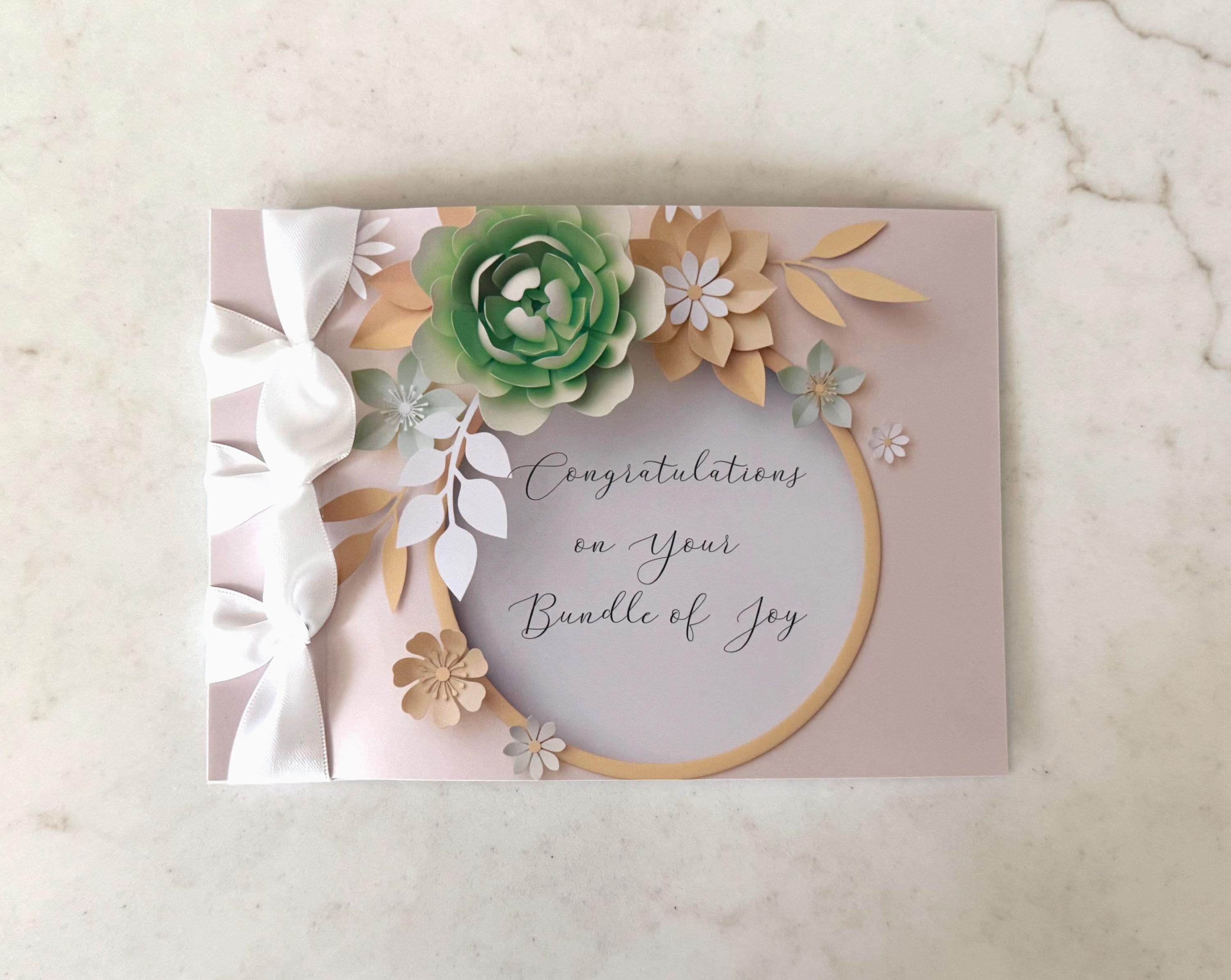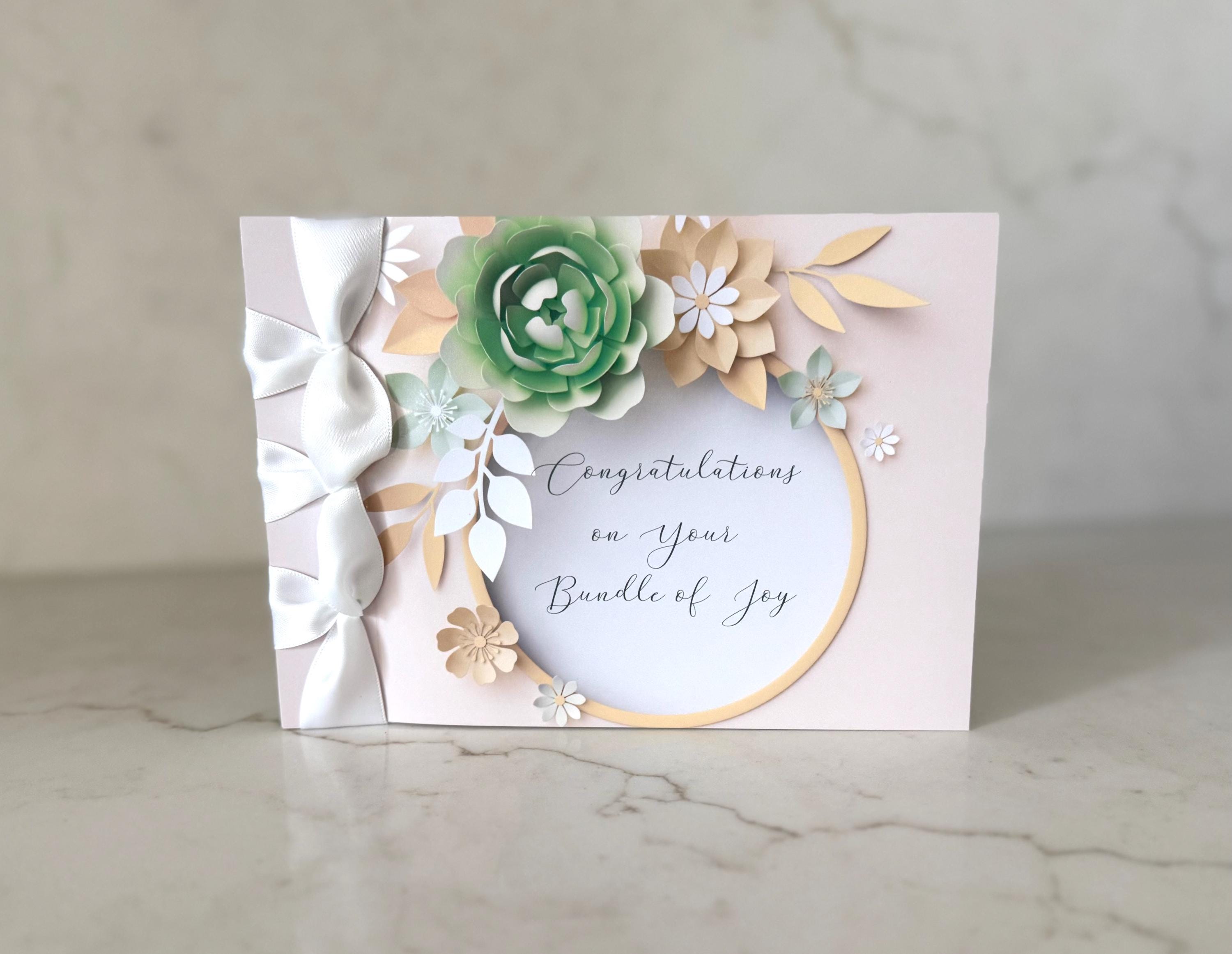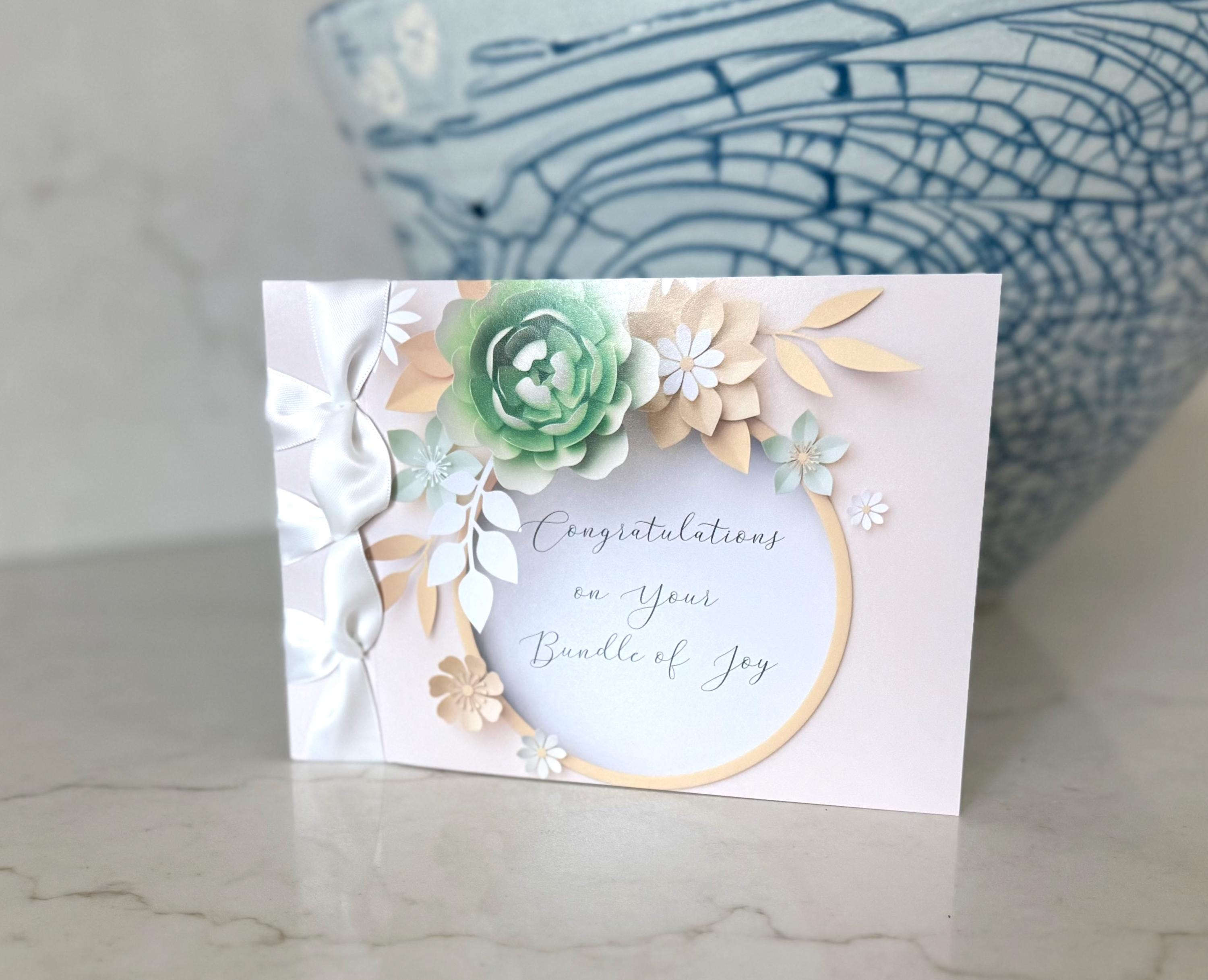 This luxury handmade card transforms a simple congratulations into a thoughtful keepsake — a piece of joy that new parents will cherish.