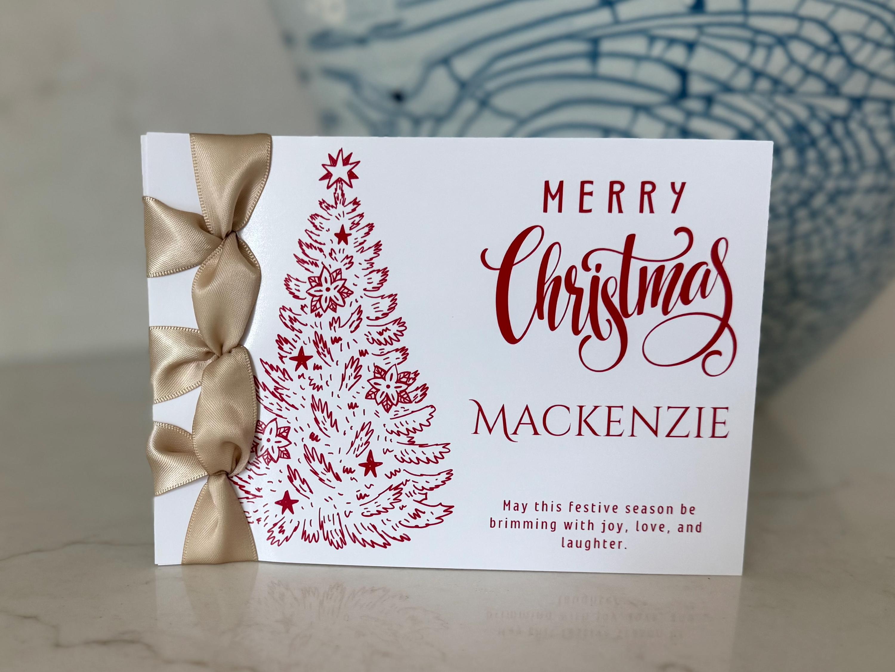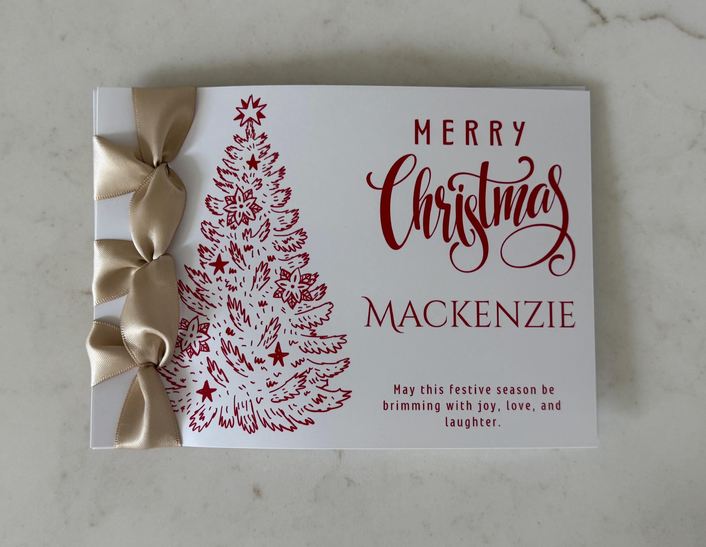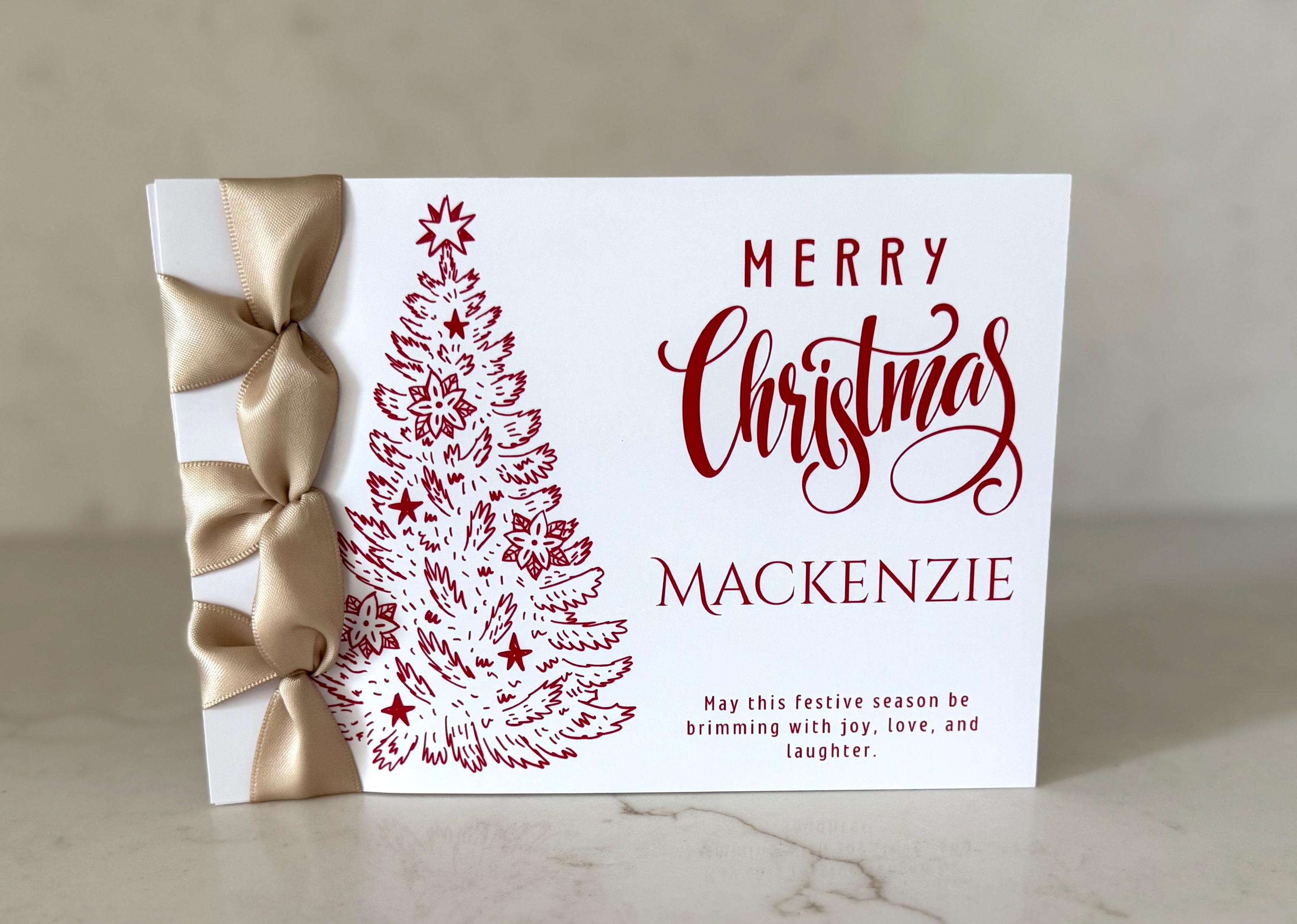 Send joy and elegance this season with this handmade Christmas card, featuring Japanese binding, a satin ribbon accent, and your personalized name — a luxury keepsake for the holidays.