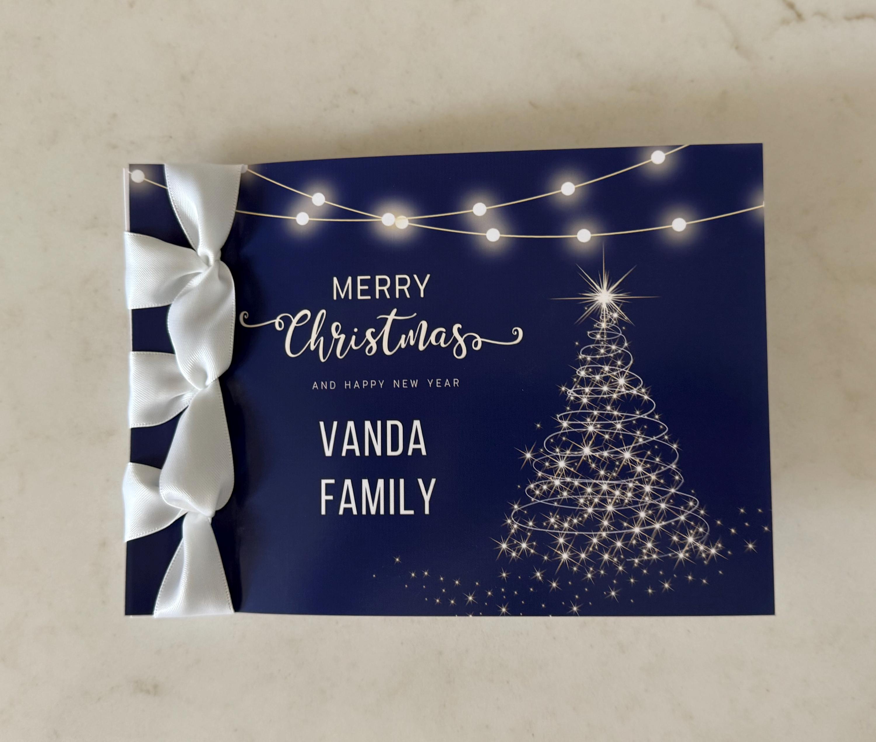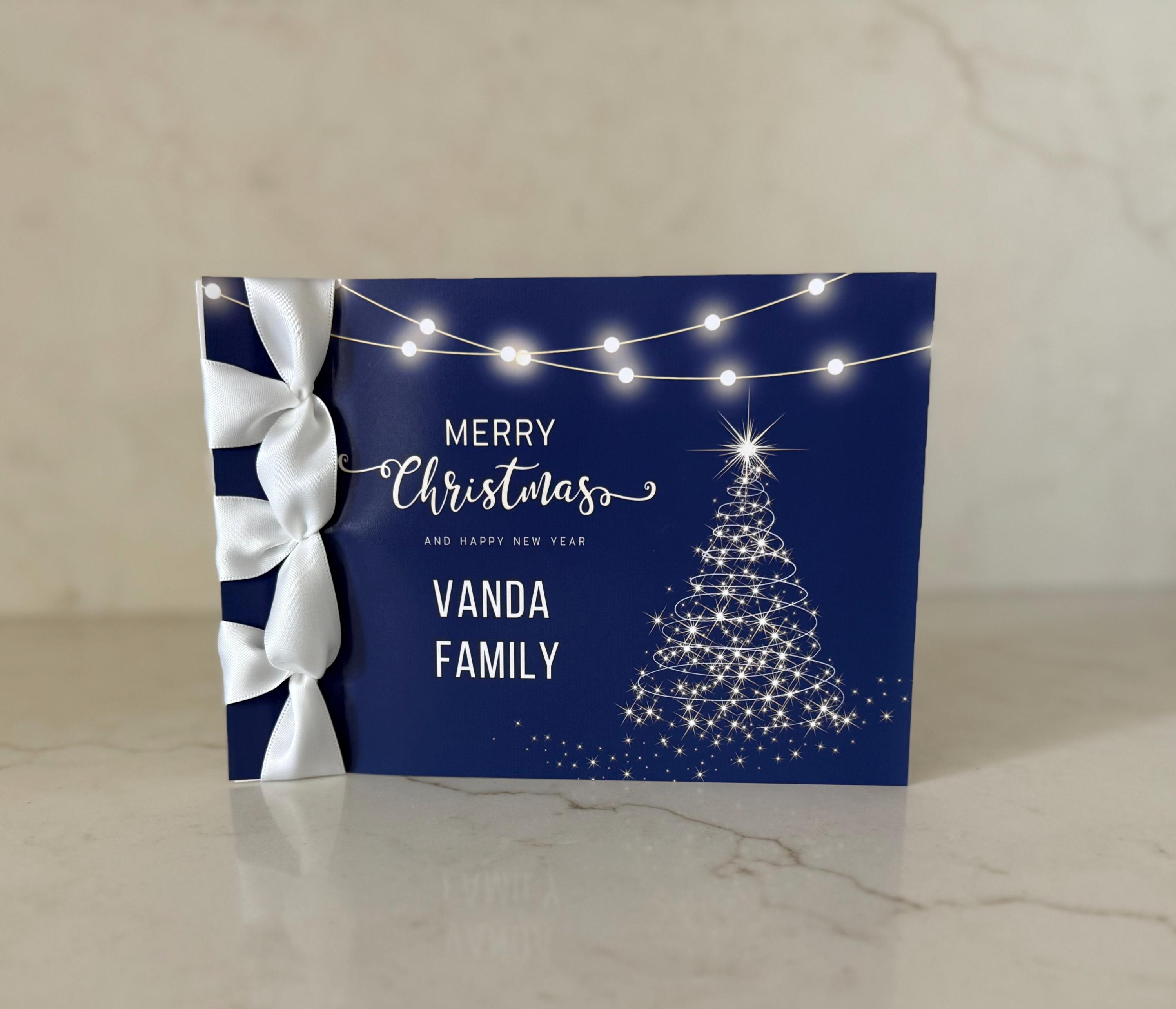 Celebrate the season in style with this handmade luxury Christmas card, featuring elegant Japanese binding and a satin ribbon accent — a festive keepsake that’s both unique and timeless.