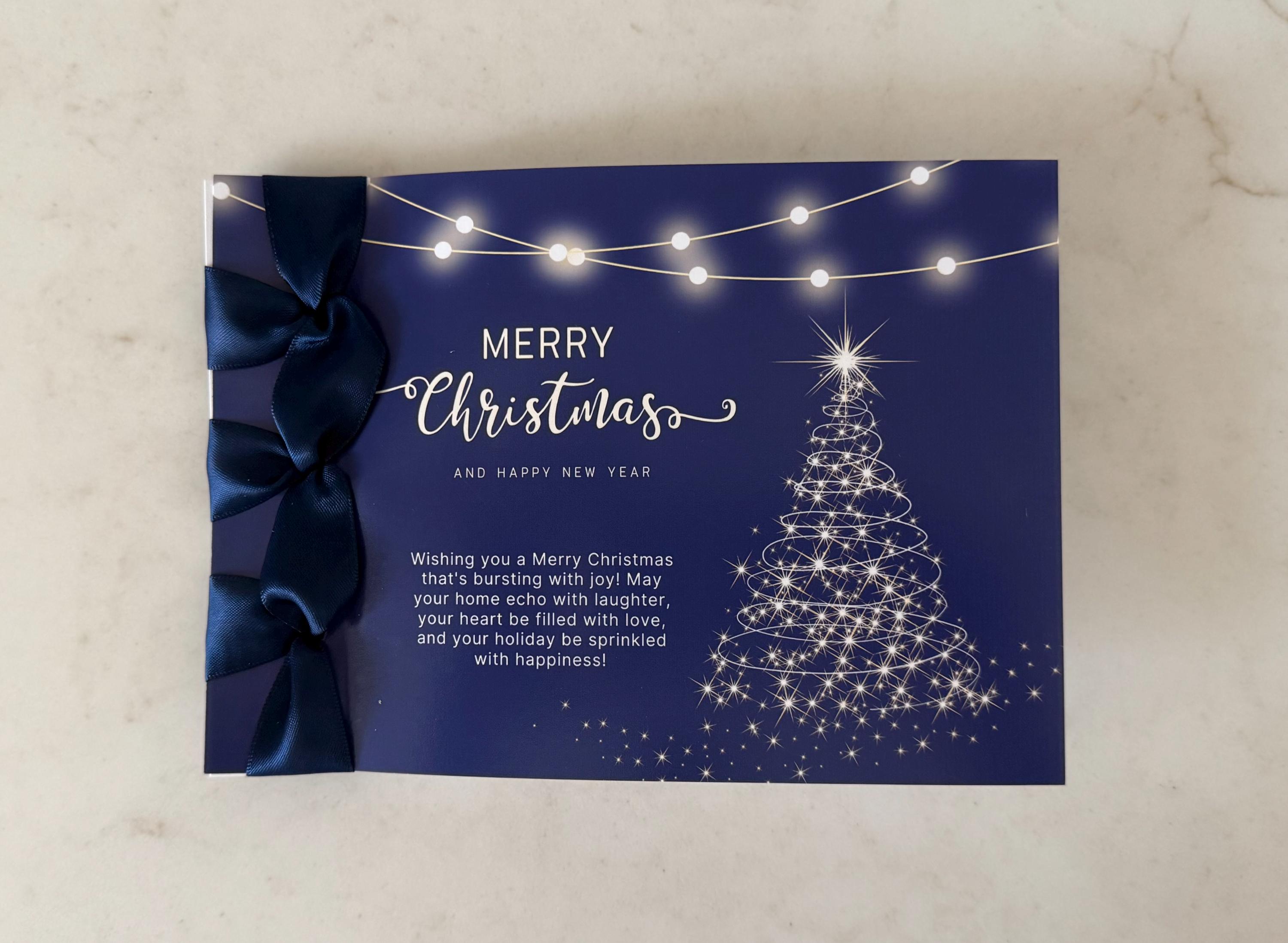 Celebrate the season in style with this handmade luxury Christmas card, featuring elegant Japanese binding and a satin ribbon accent — a festive keepsake that’s both unique and timeless.