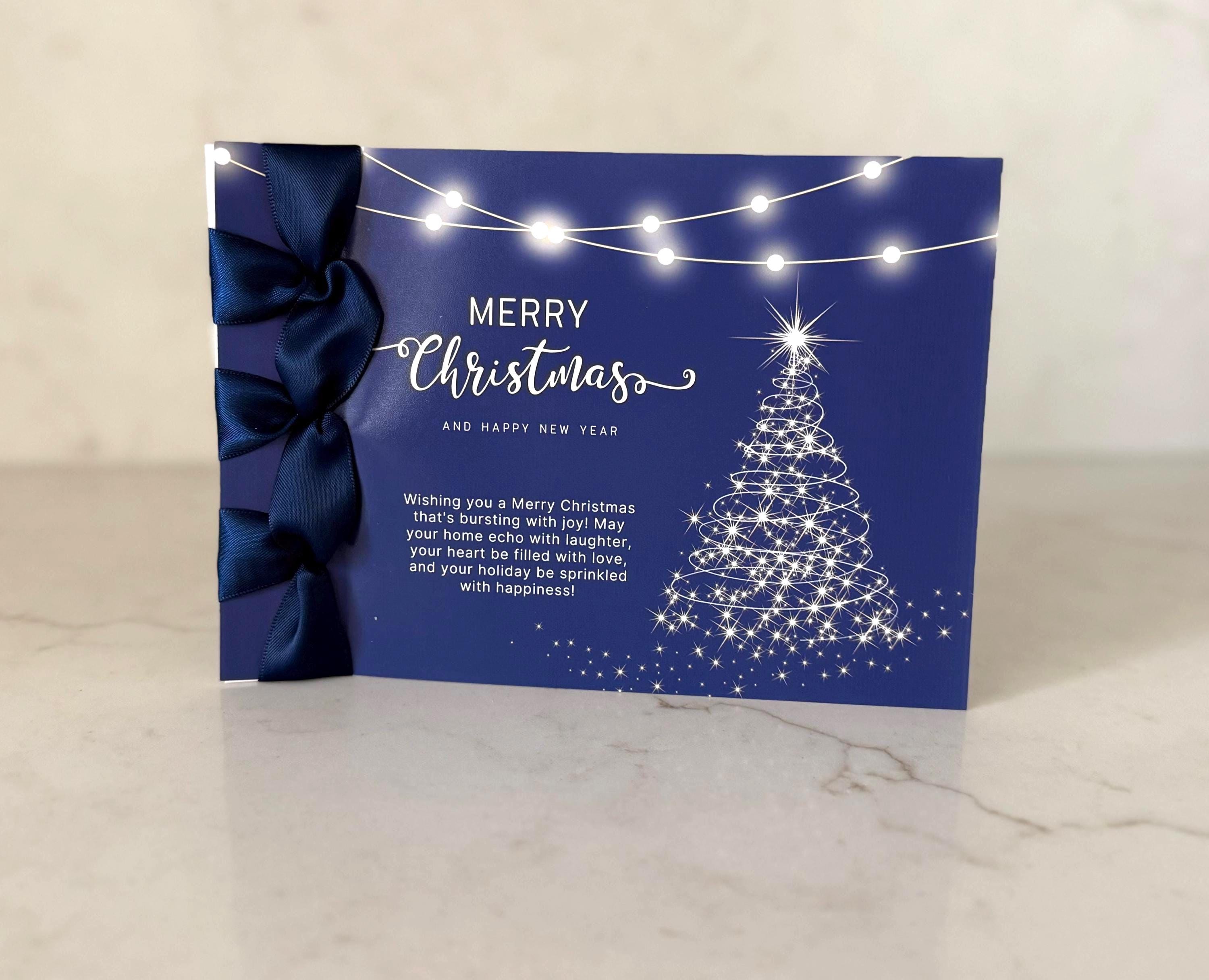 handmade christmas card, personalized christmas card, japanese binding card, satin ribbon card, luxury holiday greeting card, handmade holiday card, elegant christmas card, custom handmade card, christmas stationery gift, festive handmade card, holiday keepsake card, unique christmas card, luxury handmade card, christmas card for family, christmas card for clients