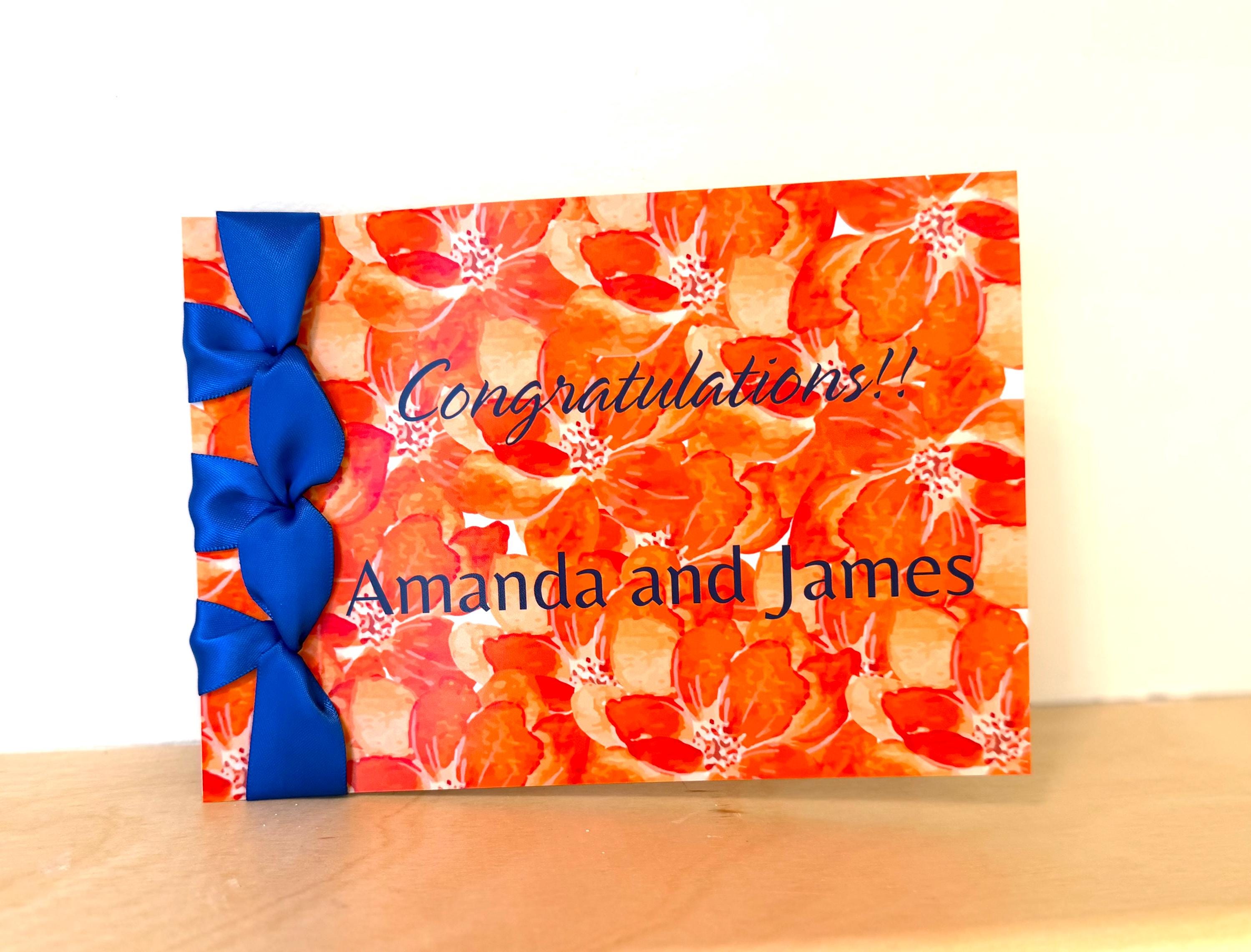 Personalized Wedding Card | Handmade Congratulations, Satin Ribbon