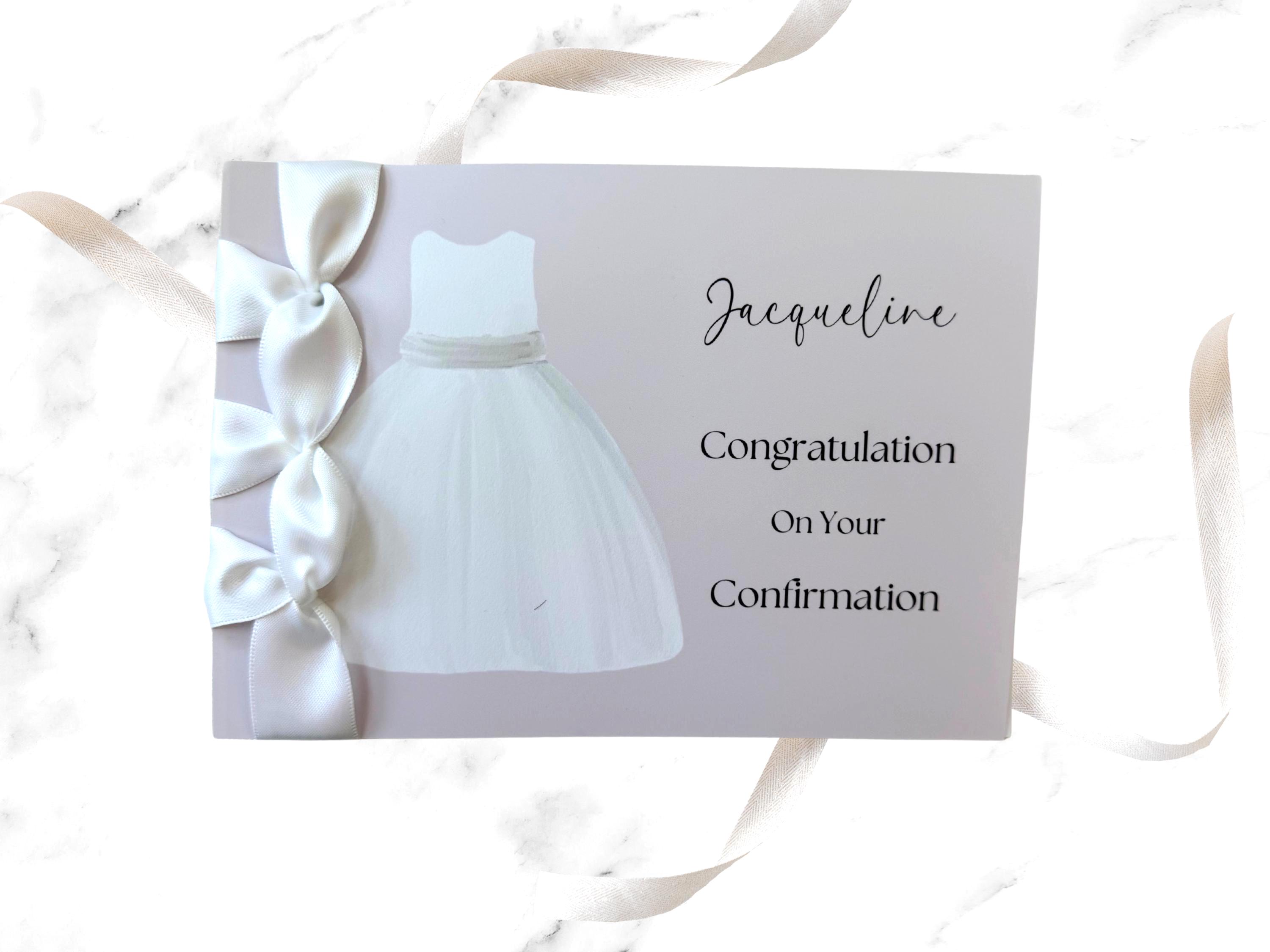 Personalized Confirmation Card for Girl | Handmade Satin Ribbon Religious Card